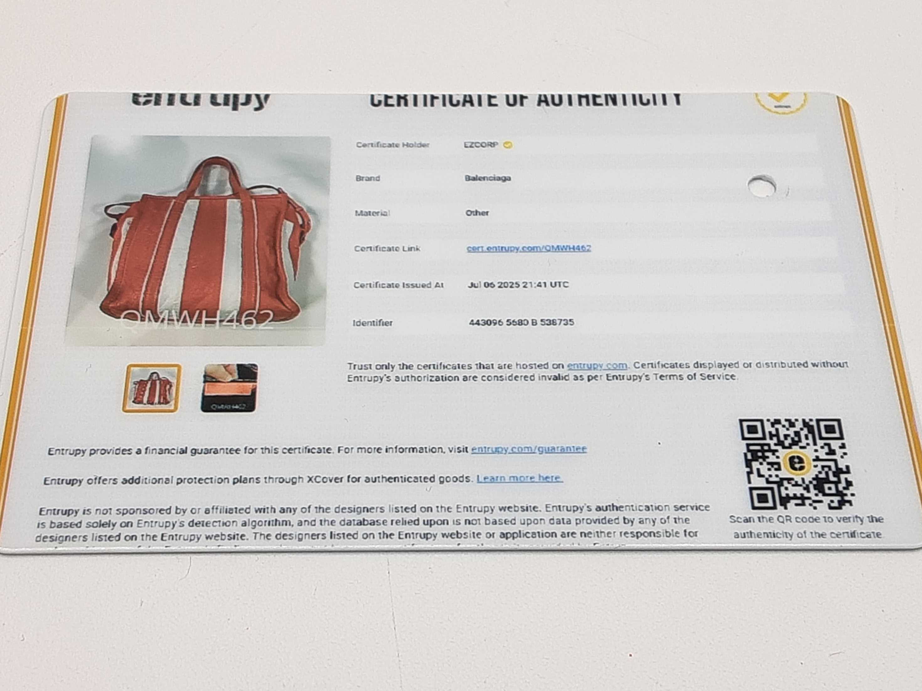 144020033848Balenciaga Bazar 2 Way Pink White Leather Shoulder Tote Bag. Length 11 IN X Height 11 IN X Width 6 IN X Handle Drop 6 IN. Strap Drop 20 IN. Entrupy Certificate #QMWH462. Pre-owned Condition with creases, cracking, wear and discoloration on corners, straps and edges, bag misshapen, and marks on exterior, straps and interior.