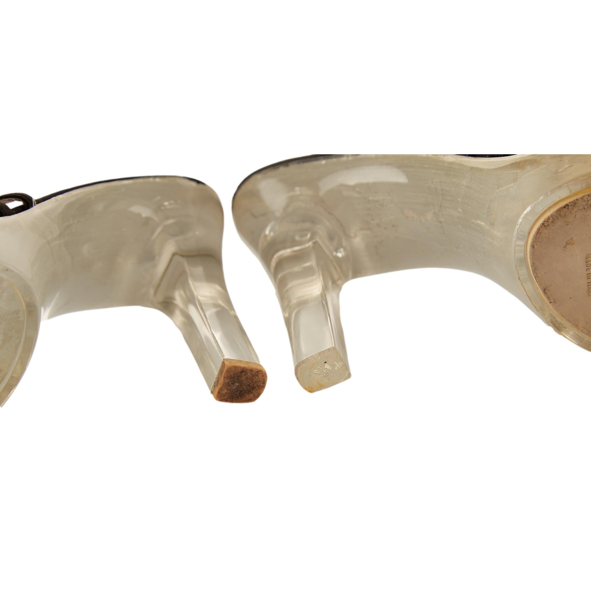 • condition details: marks to surface/missing bottom on left shoe/missing heel cap on right shoe