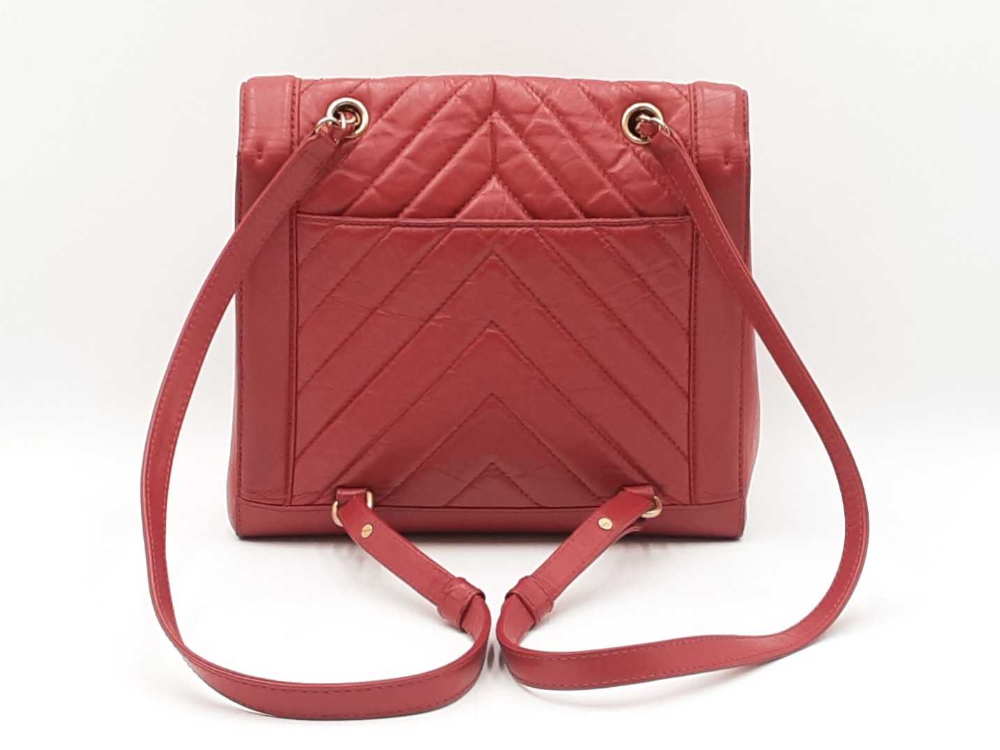 - Chanel Cc Chevron Quilted Red Calfskin Top Handle Satchel Backpack Fw0725lzxzdu