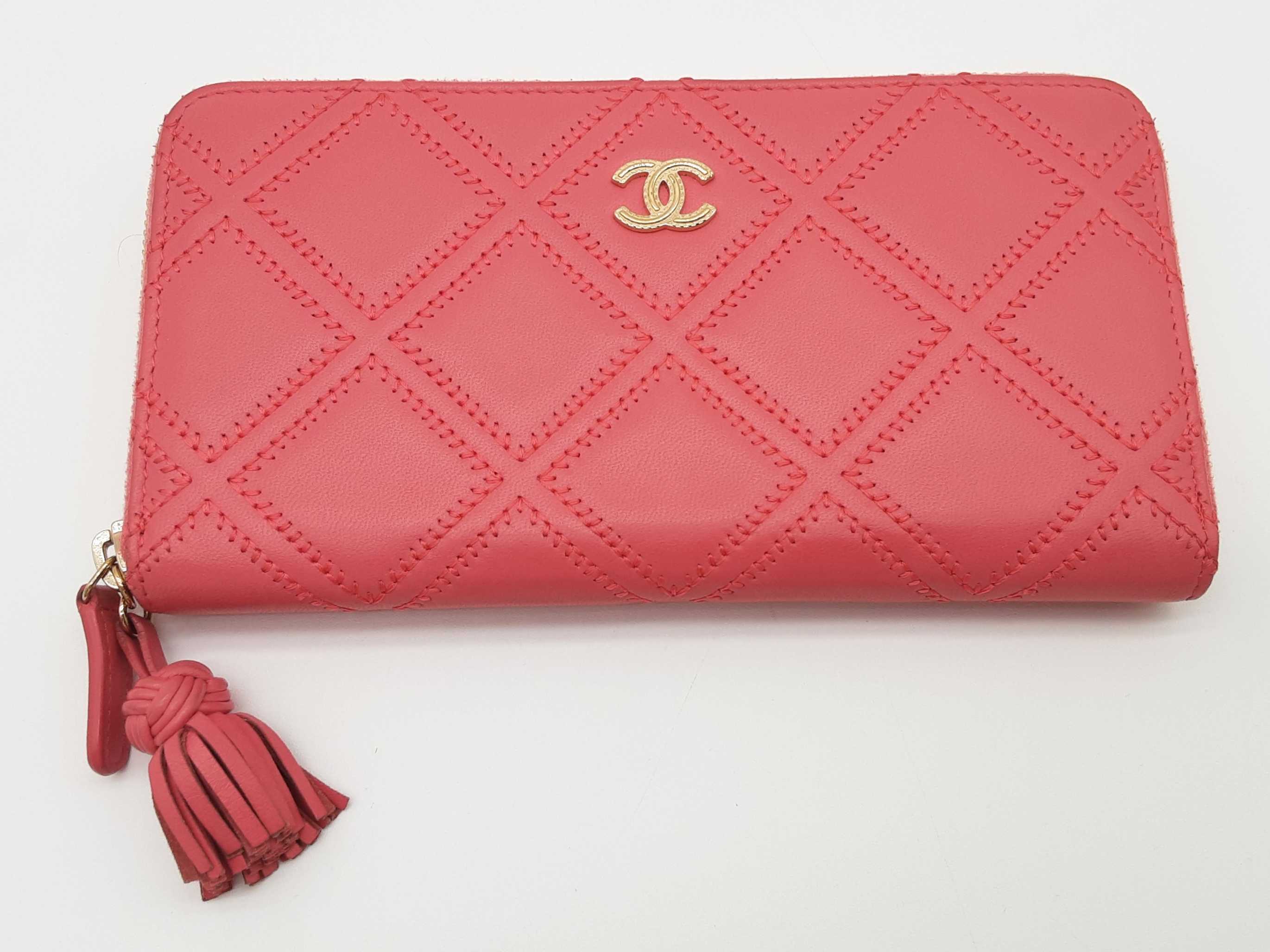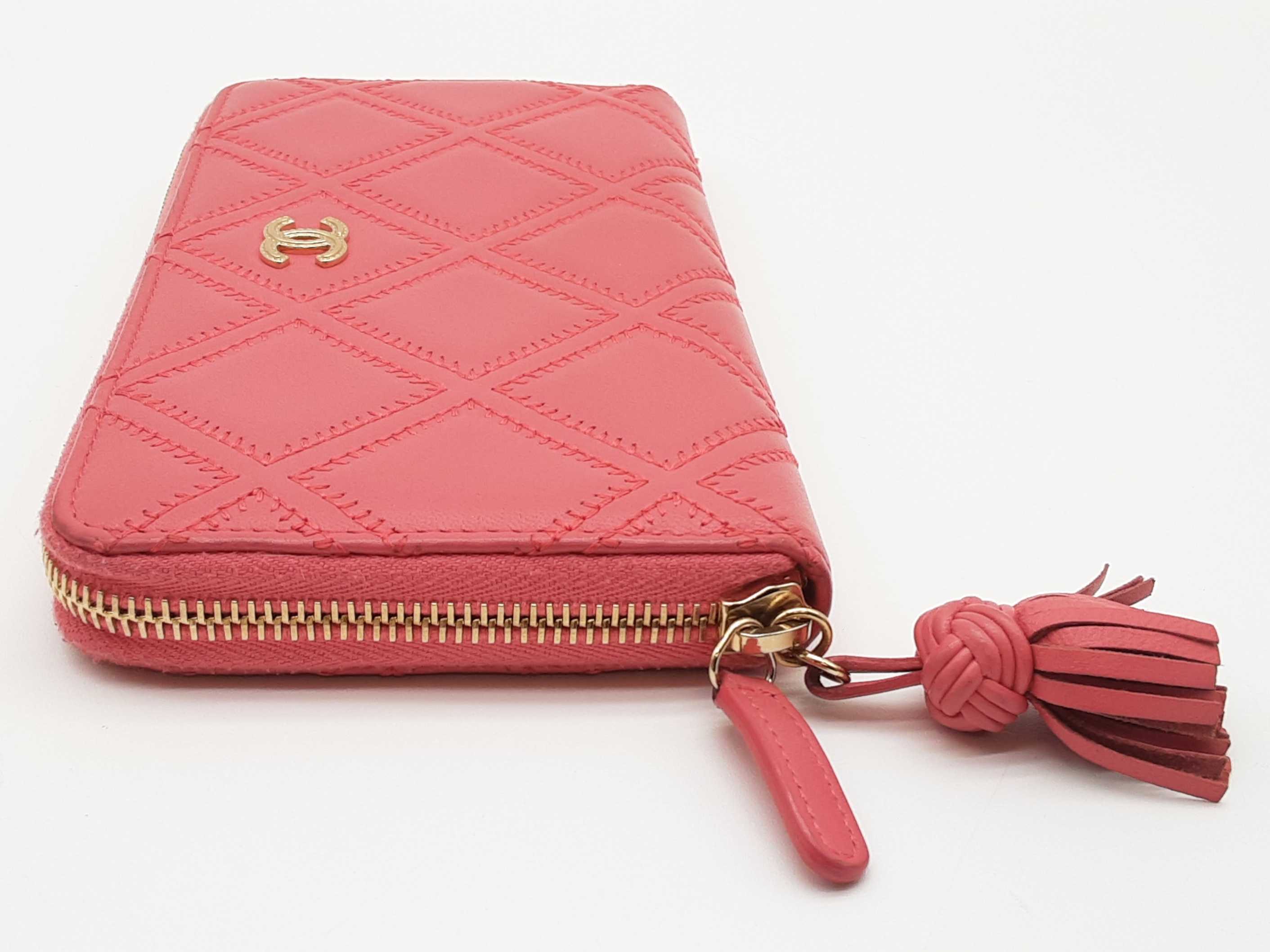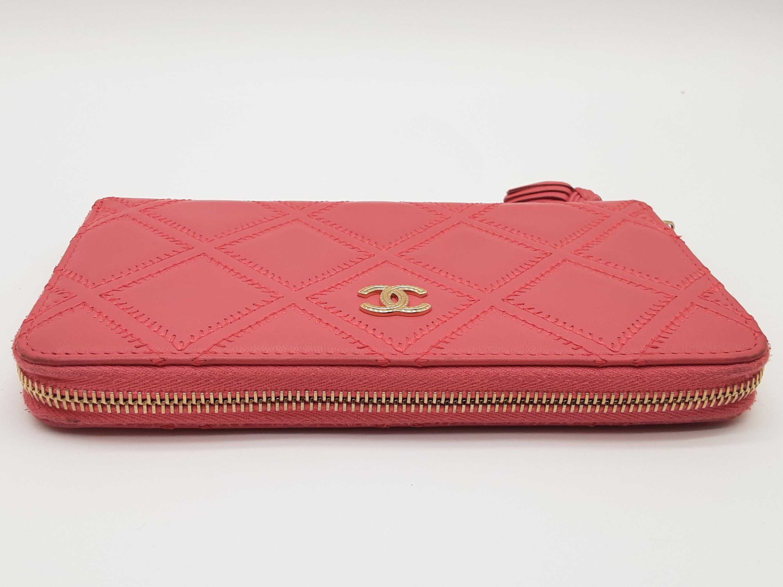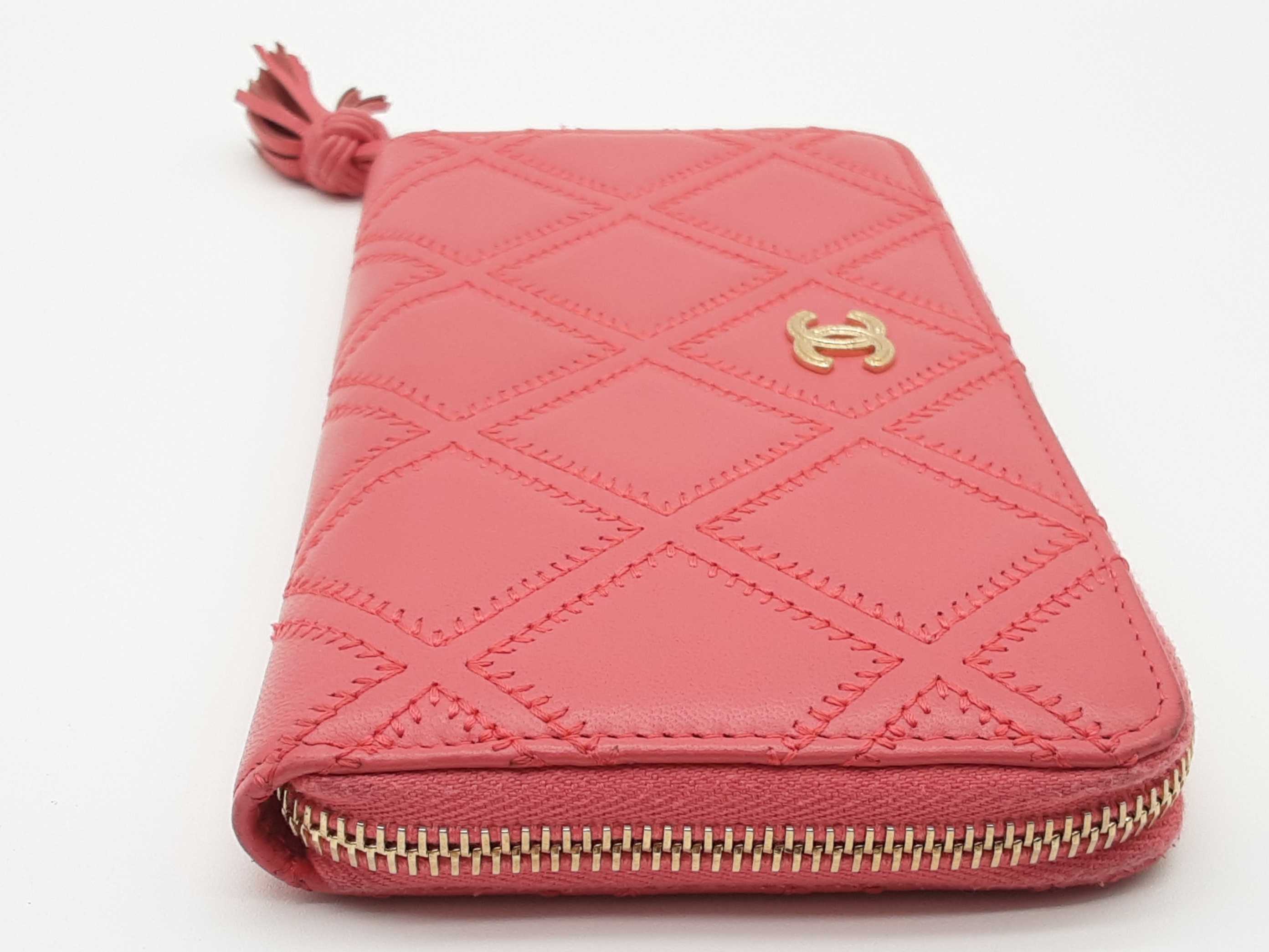 - Chanel Pink Diamond Quilted Leather Zipper Wallet Do0425rxzde