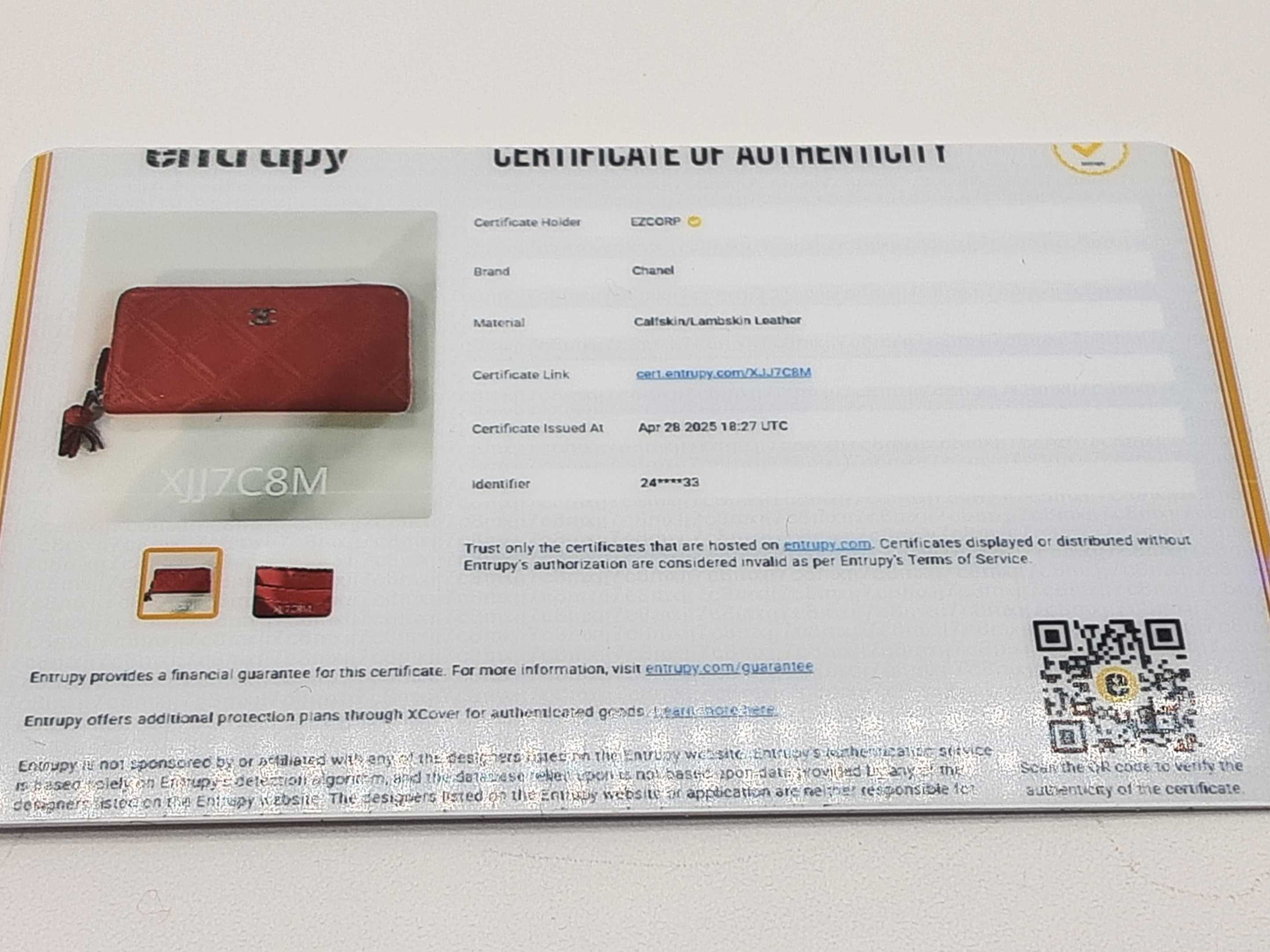 Entrupy Certificate Card, Information Booklets