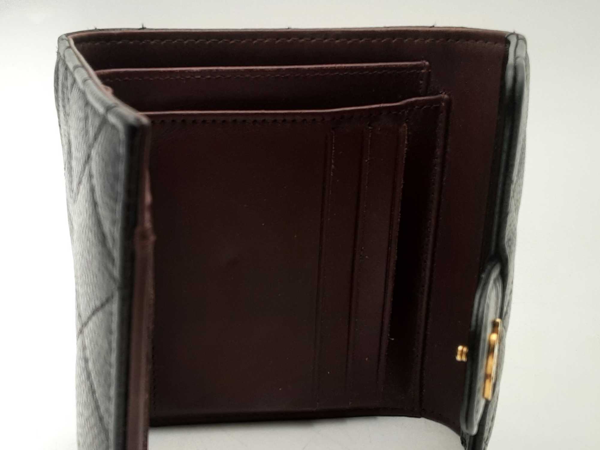 144010047140Chanel Quilted Caviar Compact Flap Wallet. Gold-Tone Hardware. Height 4 IN X Length 4.5 IN. Good Pre-Owned Condition. Heavy scratches and discoloration on hardware. Dust inside. Scratches on interior leather. Wear along the edges.