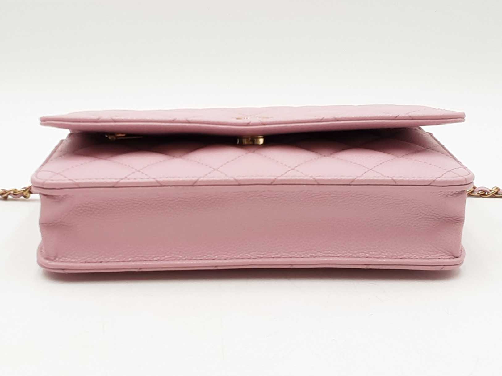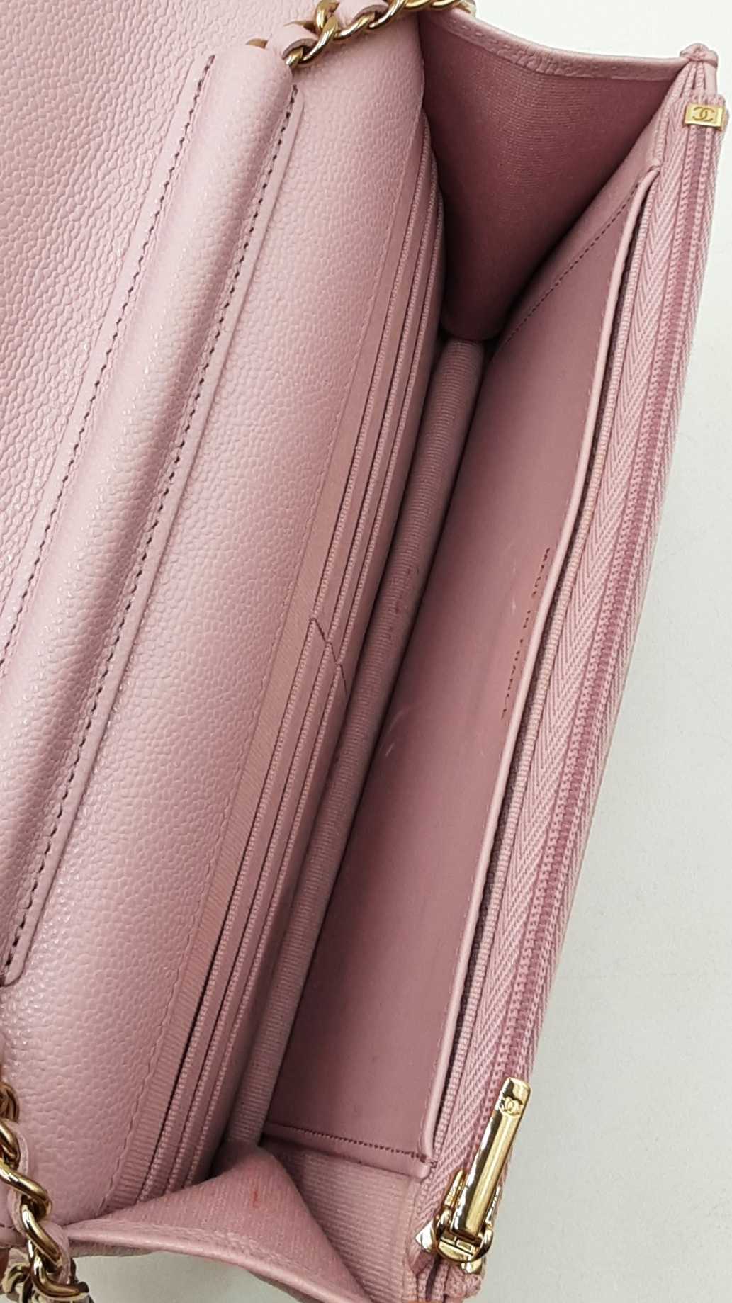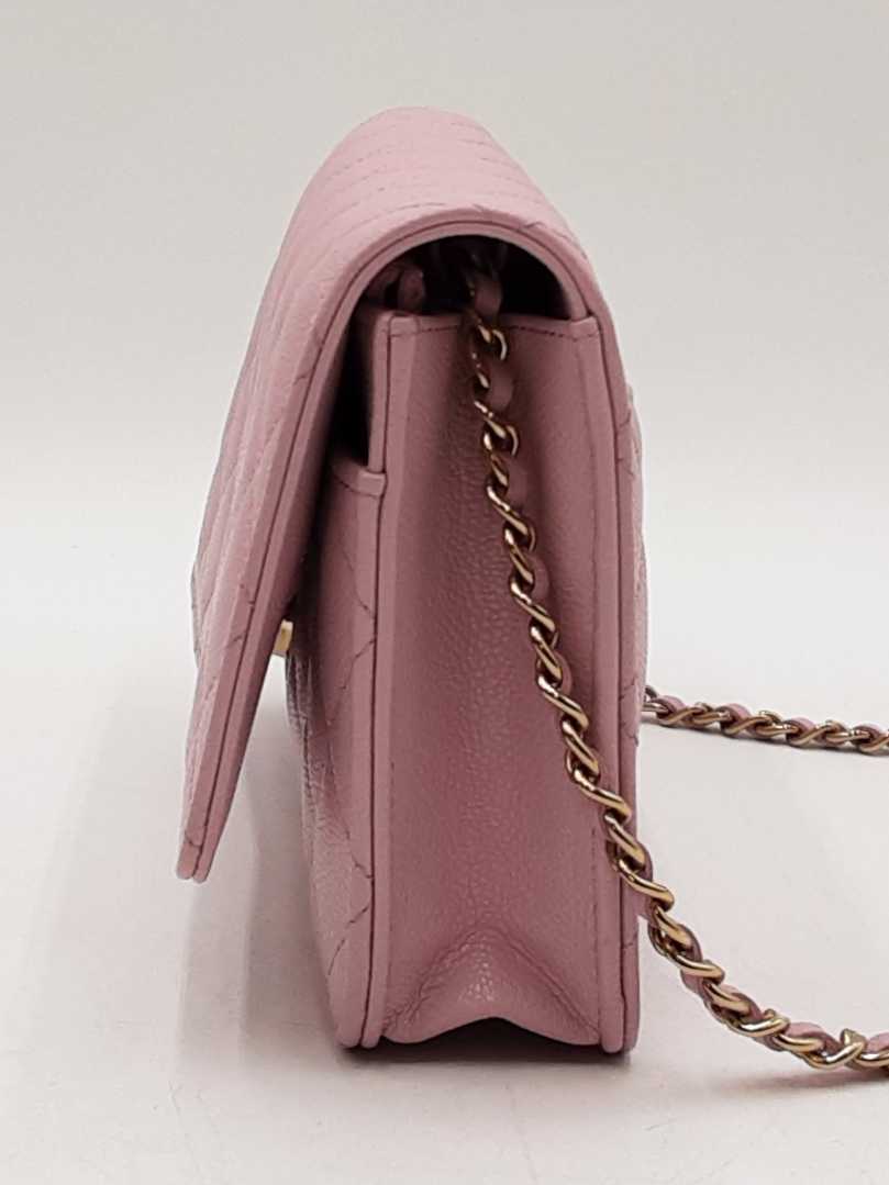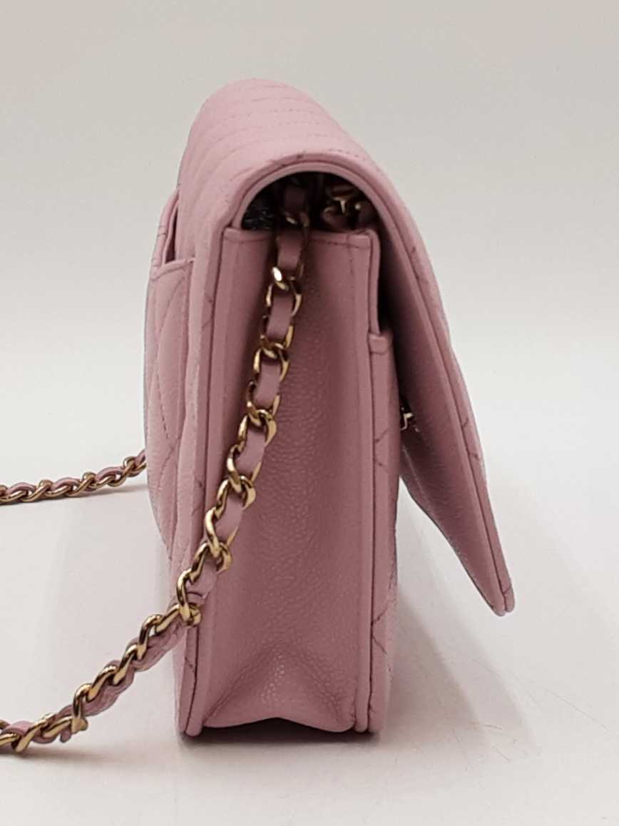 144030026183Chanel Quilted Caviar Wallet On Chain Shoulder Bag. Gold-Tone Hardware. Length 7.5 IN X Height 4.75 IN X Width 1.25 IN X Chain Strap Drop 23 IN, approximately. Great Pre-Owned Condition. Scratches on hardware. Creasing around fold. Discolorations on interior fabric and leather. Entrupy Certificate # GBRCHT3