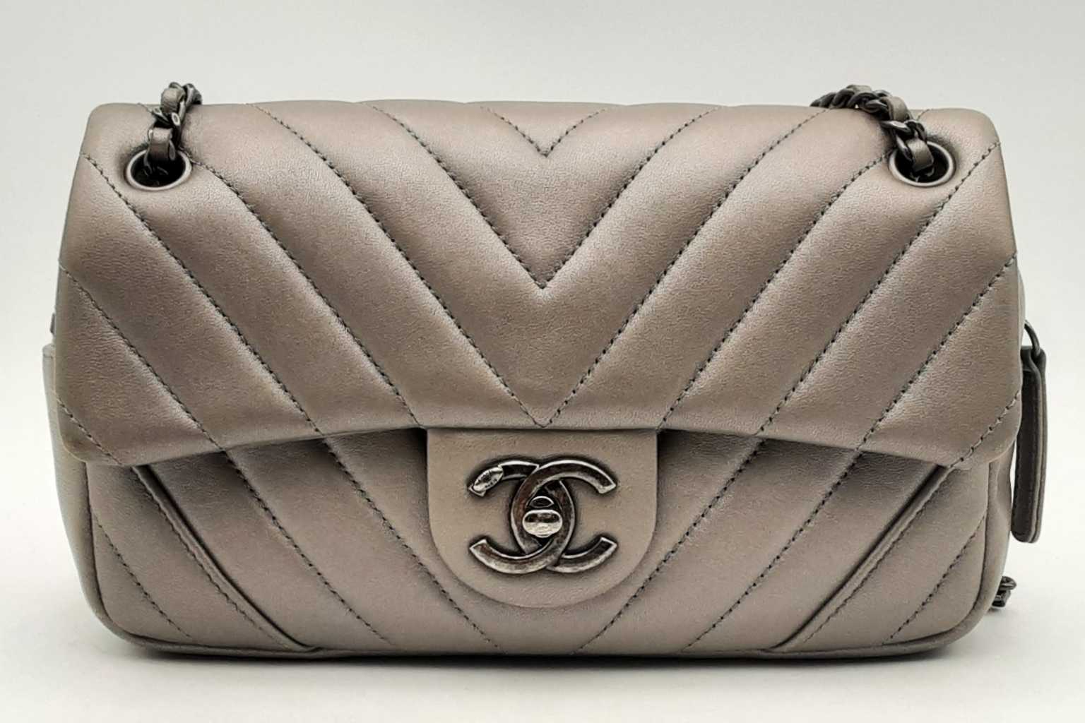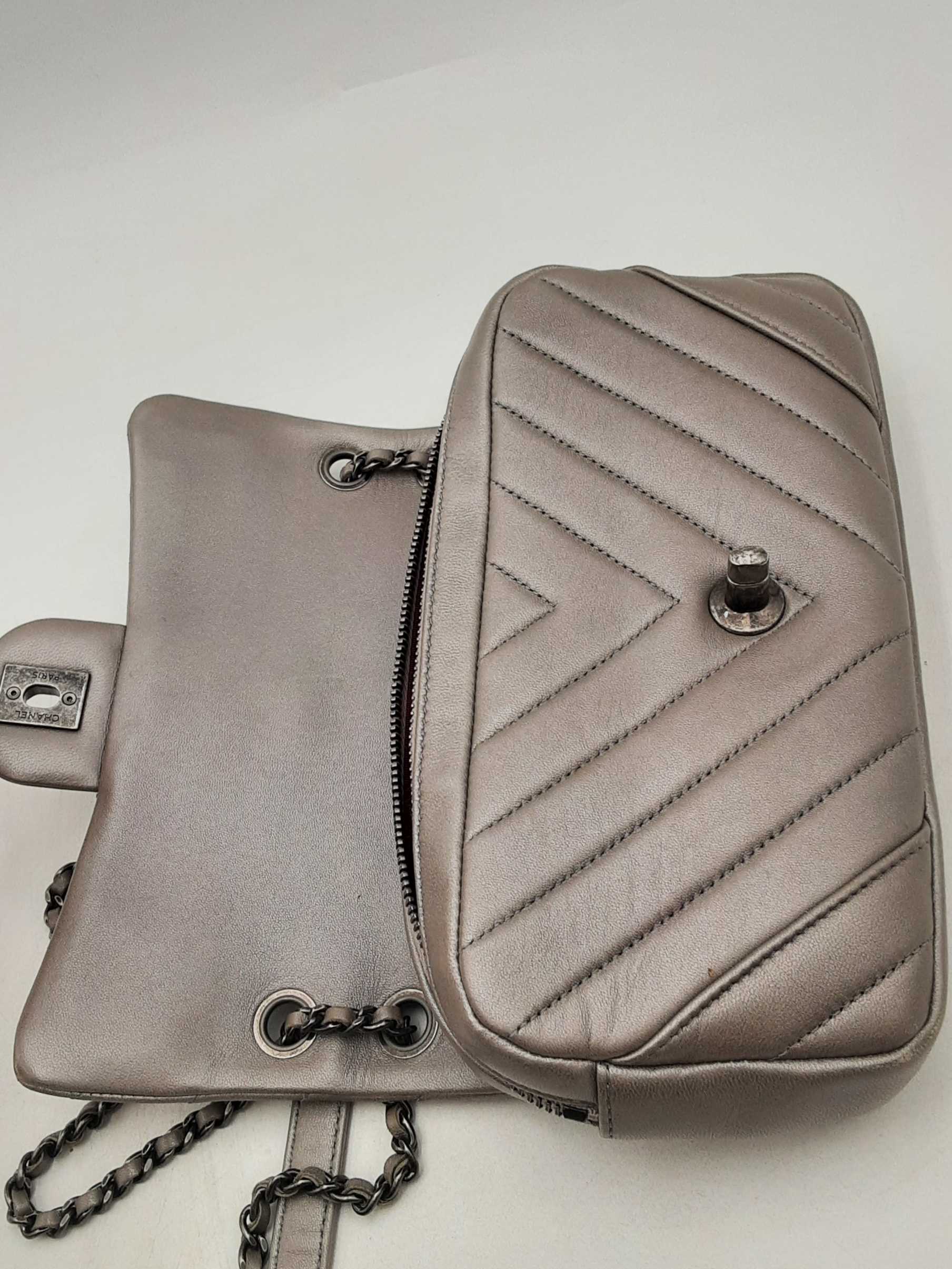 - Chanel Quilted Chevron Gray Leather Rectangular Shoulder Bag Aa0425opxzsa