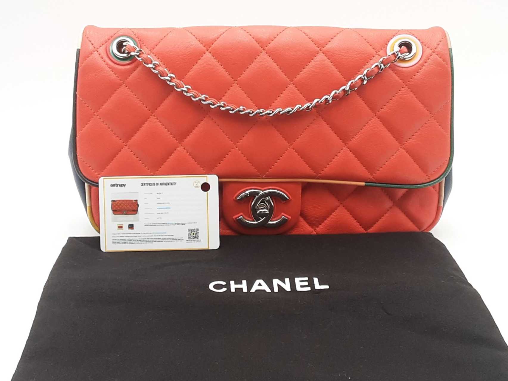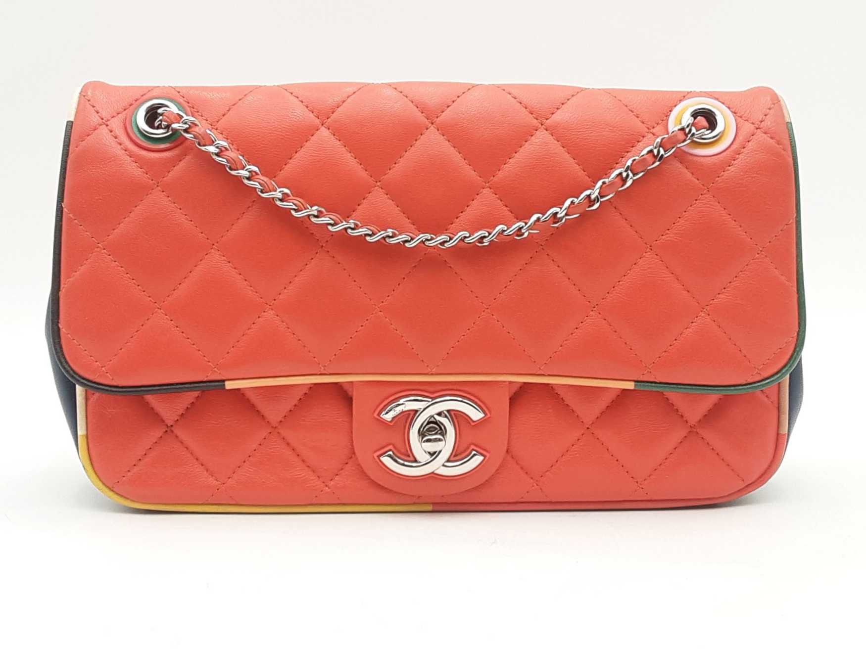 144010056517Chanel Quilted Lambskin Small Paris-Cuba Red Handbag. Silver-Tone Hardware. Approximate measurements Height 6.5 IN X Length 10.5 IN X Width 3 IN Drop 22 IN. Good Pre-Owned Condition. Scratches on the hardware. Corners are dirty. Indent on the inner flap. Entrupy Certificate #HMVK2D8
