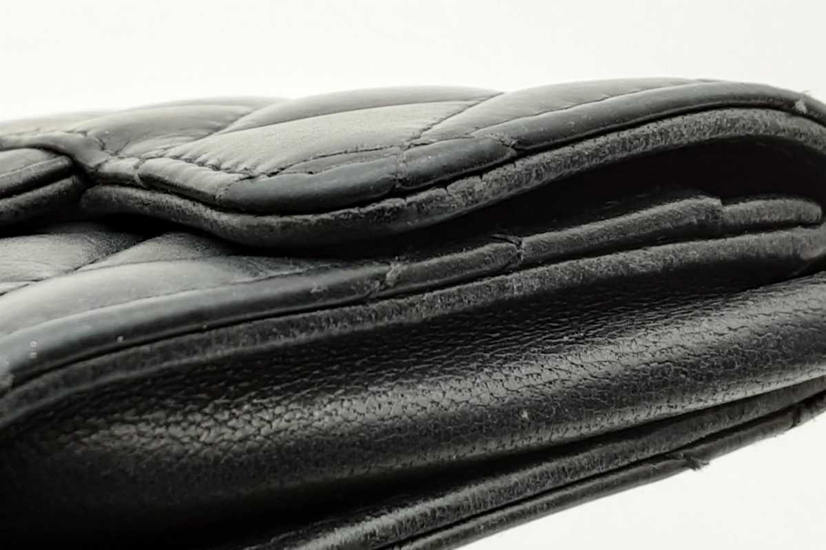 144030016493Chanel Quilted Leather Flap Card Holder Wallet. Gold-Tone Hardware. 4.5 X 3 IN. Good Pre-Owned Condition. Heavy and deep scratches with discoloration on hardware as shown in photos. Significant creasing on the exterior. Scratches and sparkly and pink stains on the exterior. White marks and the insidenleather of the flap is significantly worn. Dust and debris inside. Wear all along the exterior edges. Entrupy Certificate #Y2BHQ7H