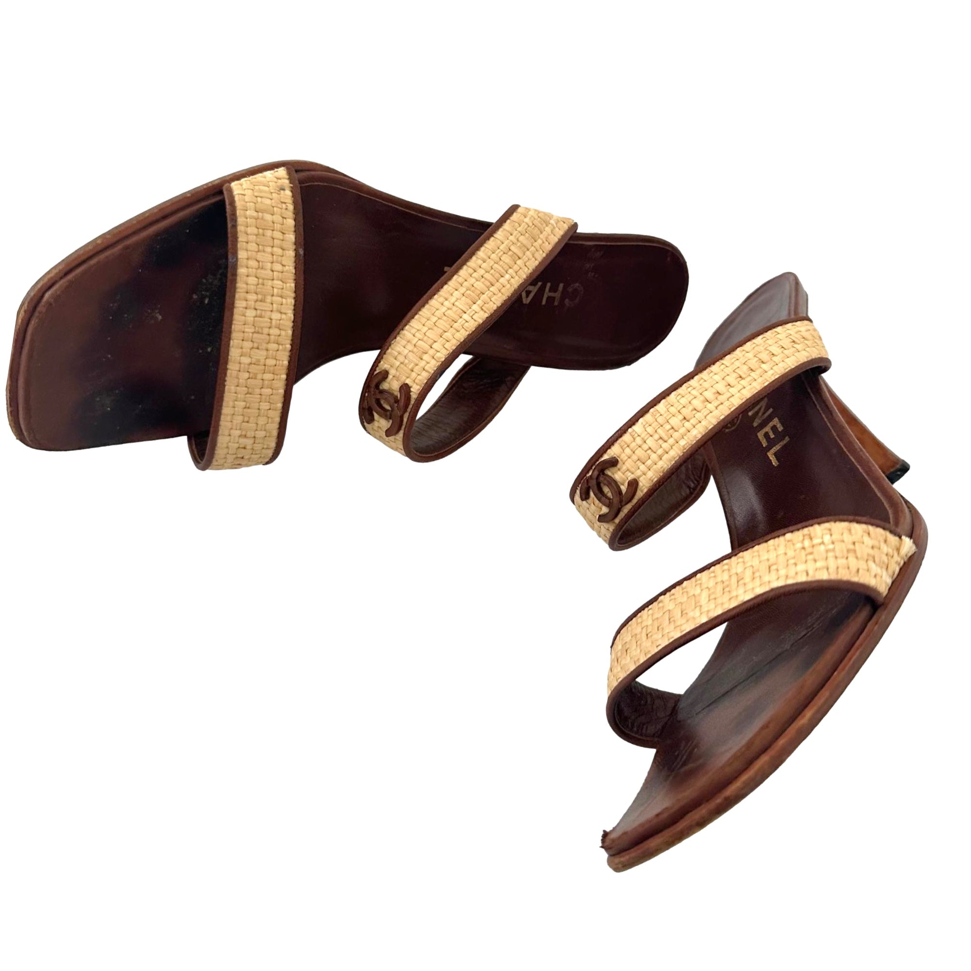 Chanel Rattan Summer Logo Heels