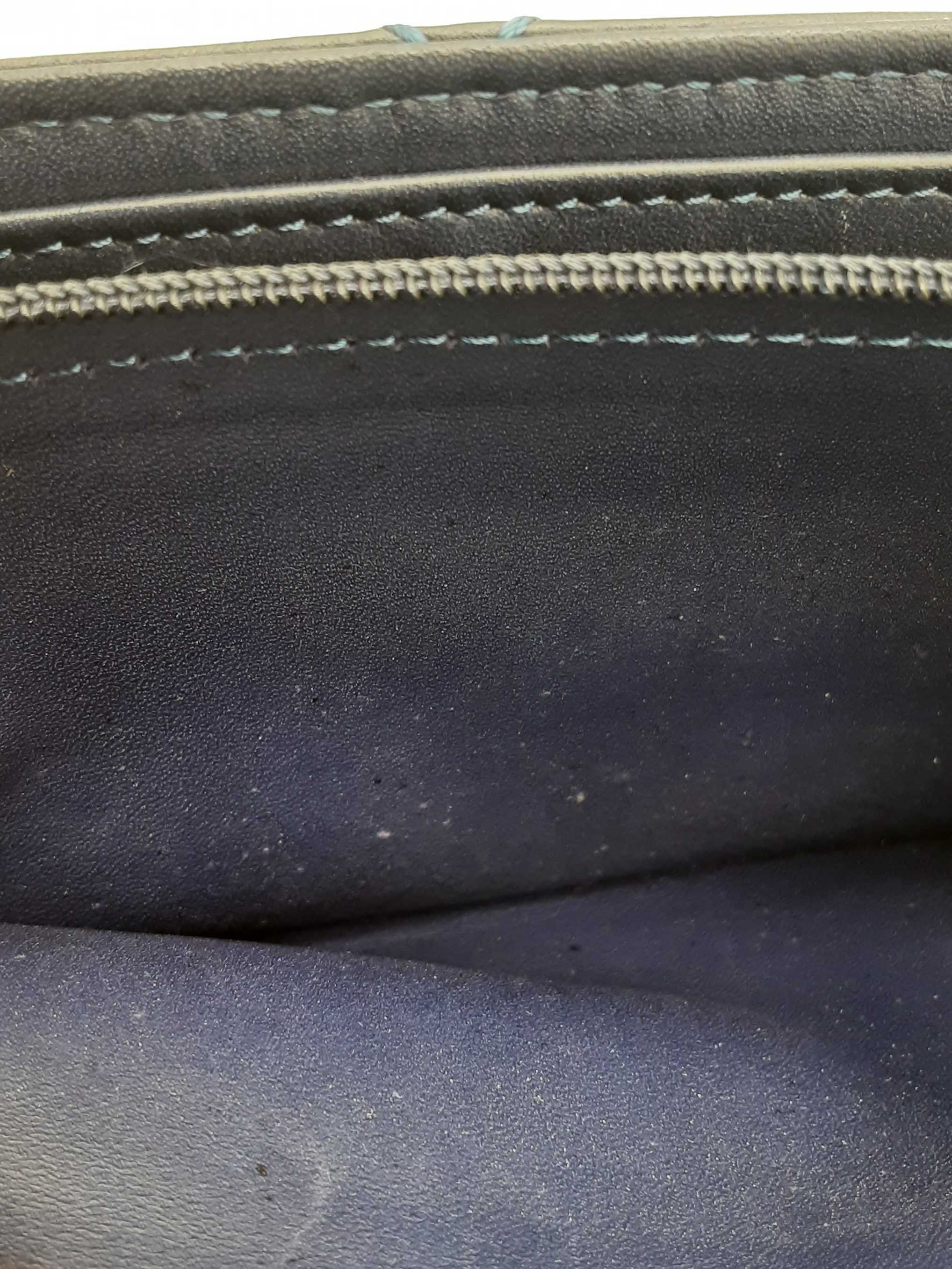144010055529Chanel Wild Stitch Blue Leather WalletApproximate dimensions Height 4.25 IN X Length 7.5 IN X Width 1.5 IN Great Pre-Owned Condition. Wear on bottom near edges. Residue/dirt on Chanel emblem on outside. Chanel logo on inside is fading. Some scratches and imperfections on leather on outside. Small strings sticking out on outside. Dust/Debris on inside of wallet with divots in the leather of the inside if the zippered pocket. Entrupy Cerificate #9GC6JJY