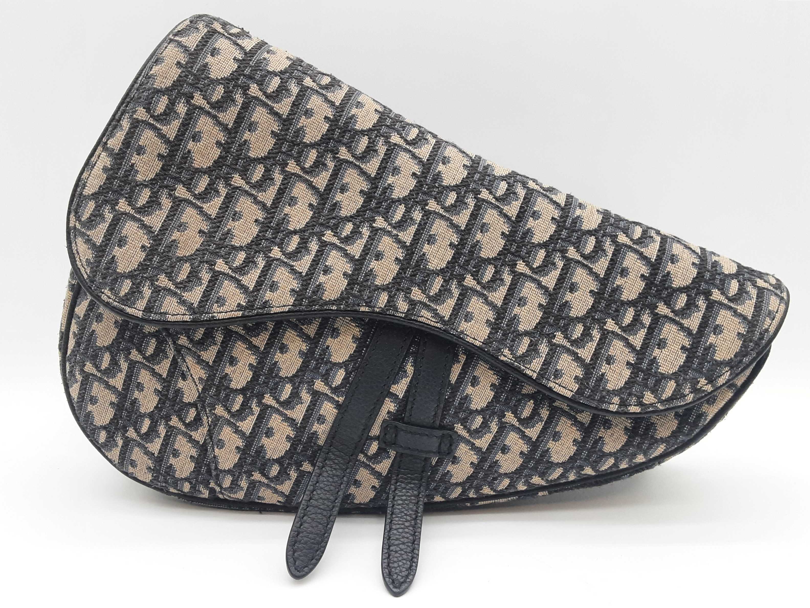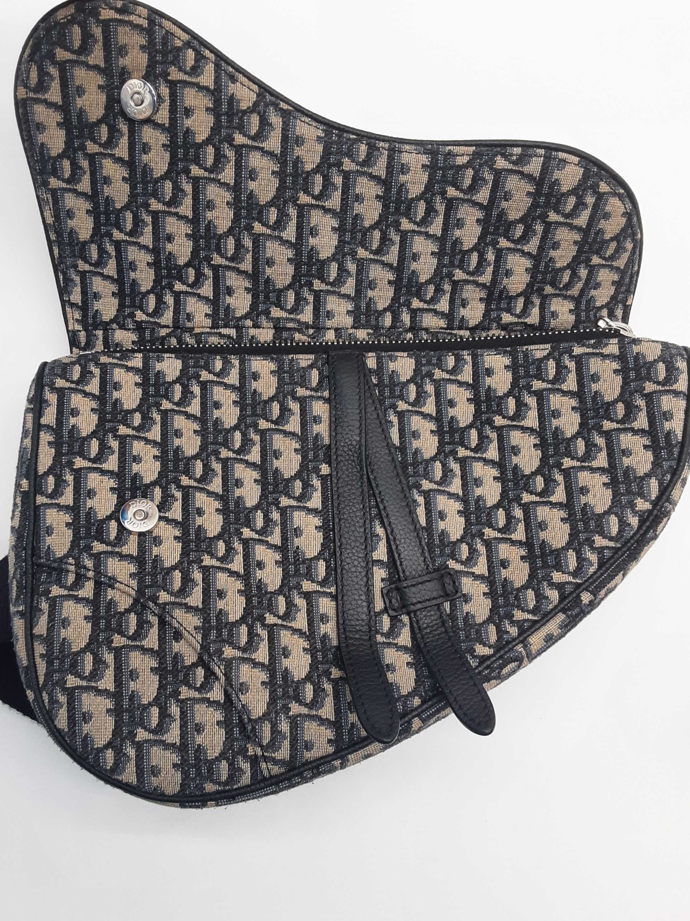 - Christian Dior Saddle Tan Navy Oblique Logo Canvas Crossbody Bag Do0425loxzde