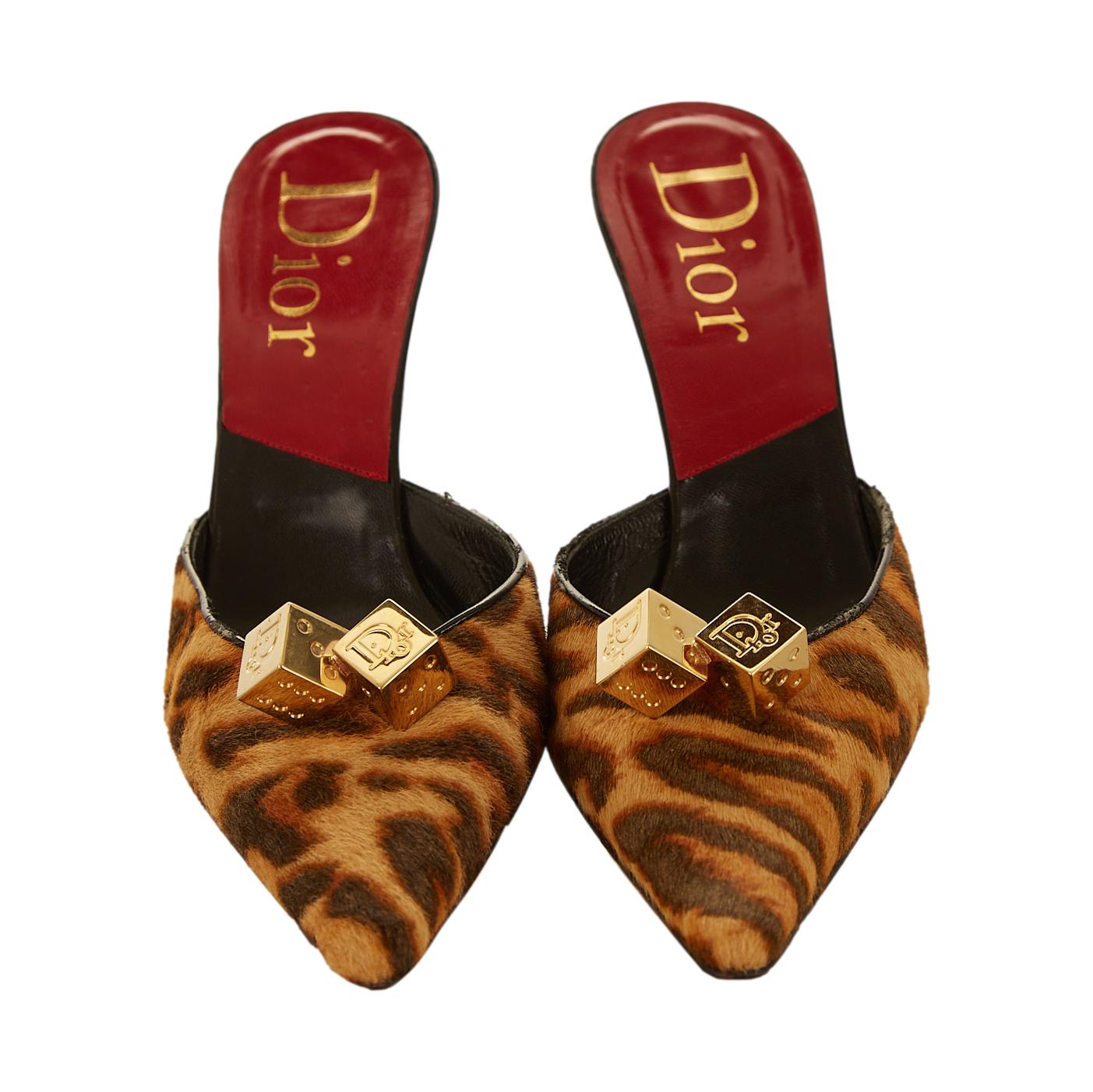 - Dior Cheetah Print Logo Dice Heels