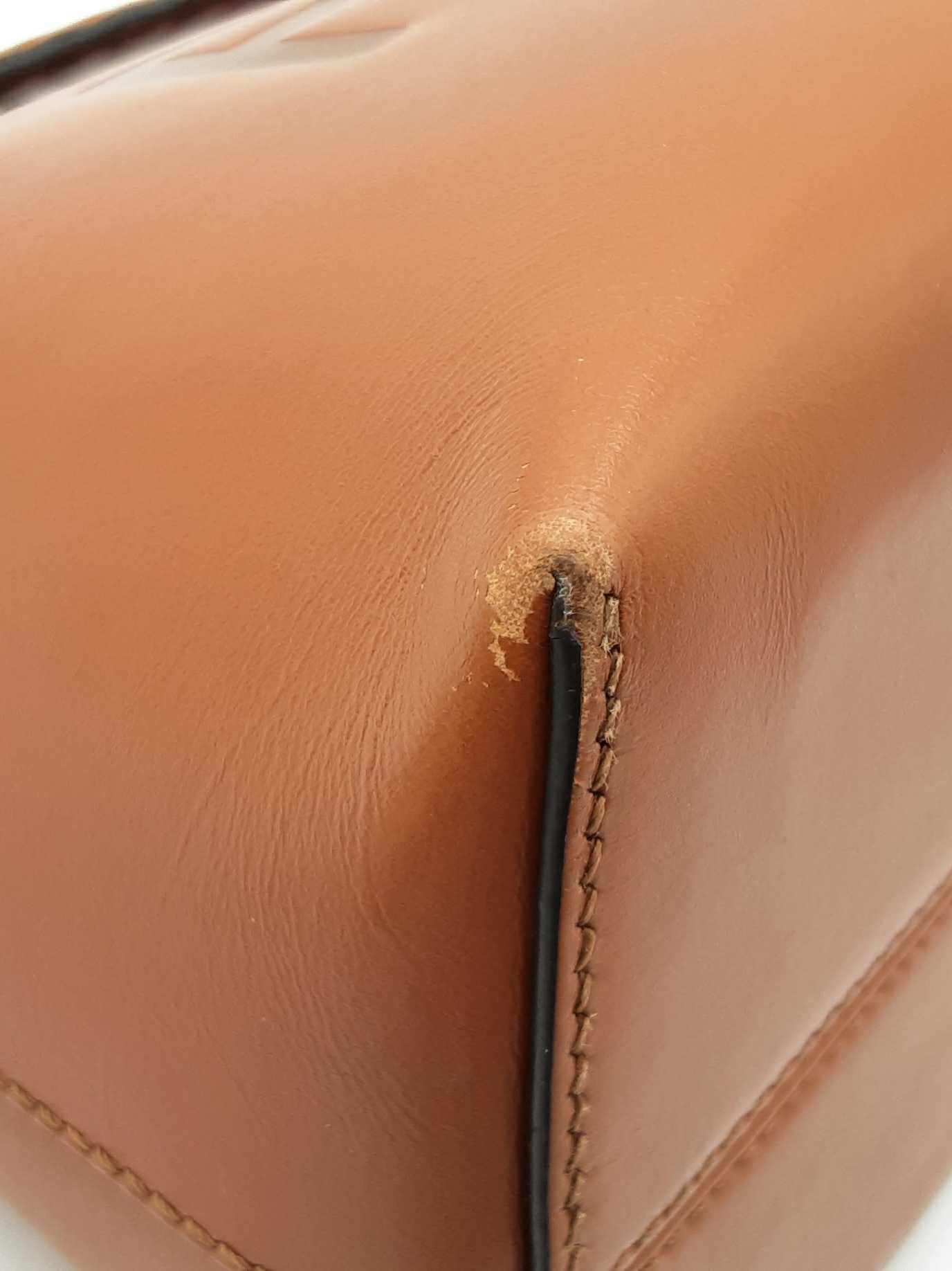 144030020038Fendi Logo By The Way Two Way Leather Shoulder Bag. Style # 0400017765100. Silver-Tone Hardware. Length 11 IN X Height 8 IN X Width 5 IN X Handle Drop 1 IN X Adjustable Strap Drop 12 - 16 IN. Good Pre-Owned Condition. Scratches on hardware. Heavy wear on all bottom corners. Areas of fading, scuffs, creasing, and discolorations throughout exterior leather, including strap. Worn edge finish along top rim of bag and on handles and shoulder strap. Discolorations throughout interior fabric. Entrupy X9B7HWR