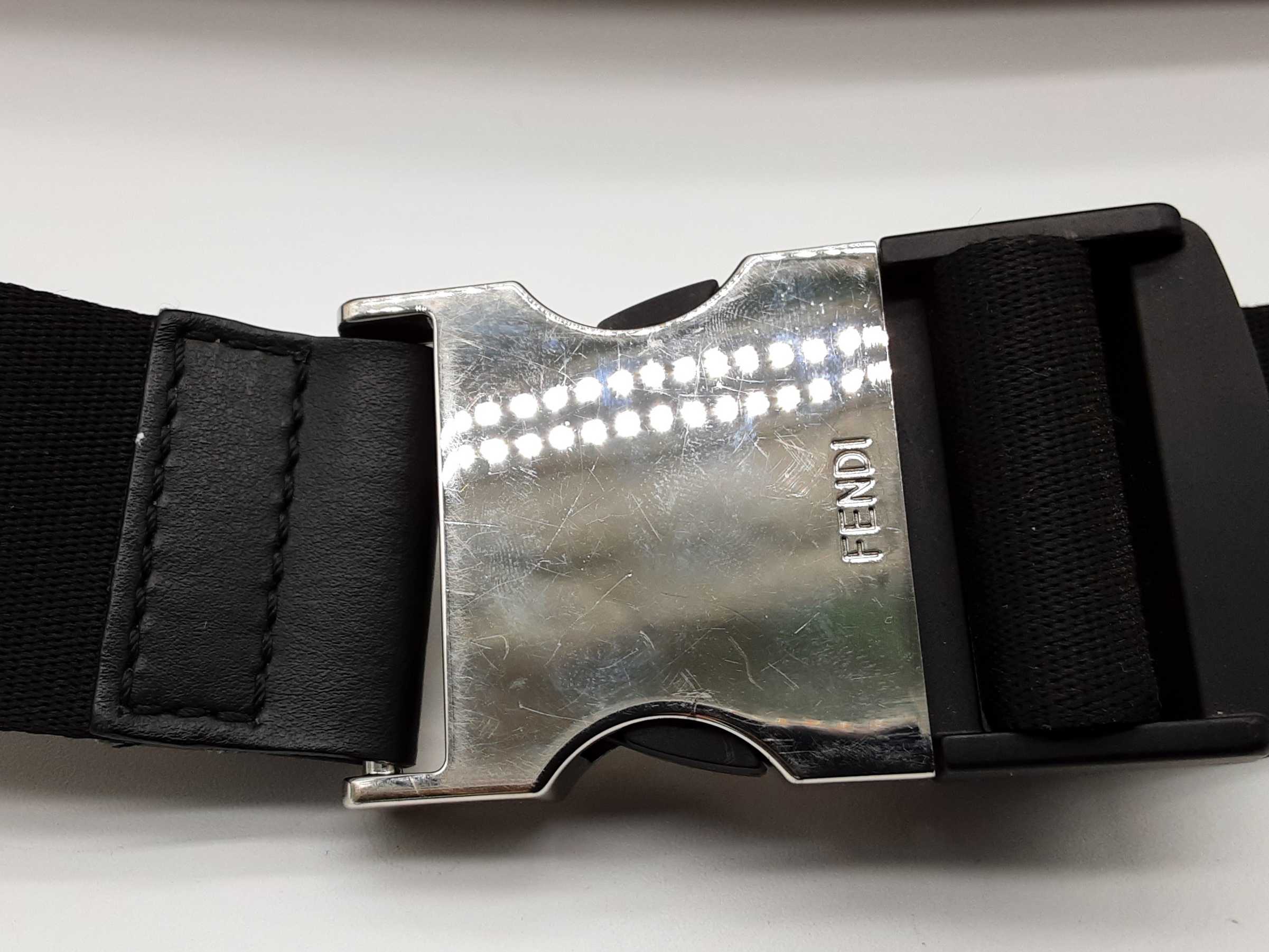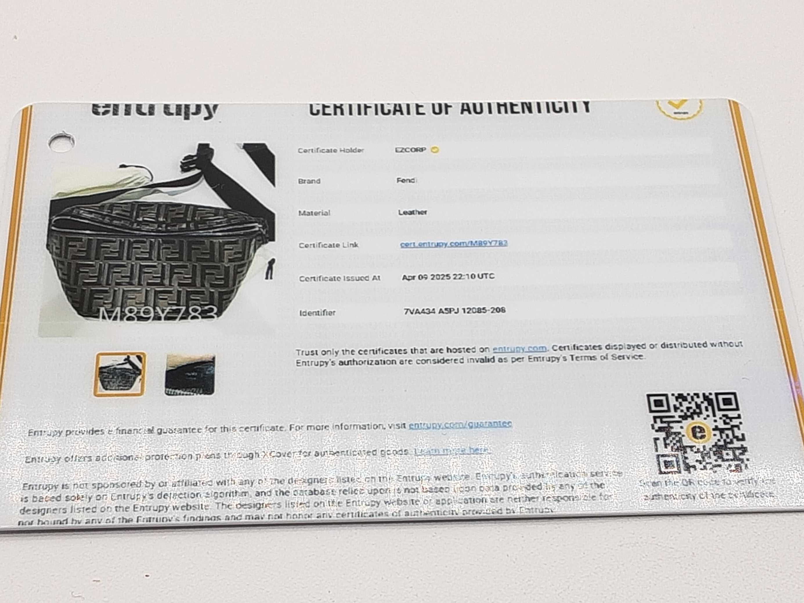 144020031862Fendi Vitello Zucca FF Maya Brown Embossed Leather Belt Bag. Length 12 IN X Height 7 IN X Width 3 IN X Belt with Bag Length 31 to 53 IN. Entrupy Certificate #M89Y783. Good Pre-owned Condition with scratches on metal hardware, bag misshapen on top, marks on back exterior, scratches and wear on exterior, wear interior leather logo, creases, and marks on strap, interior, and in interior pocket.