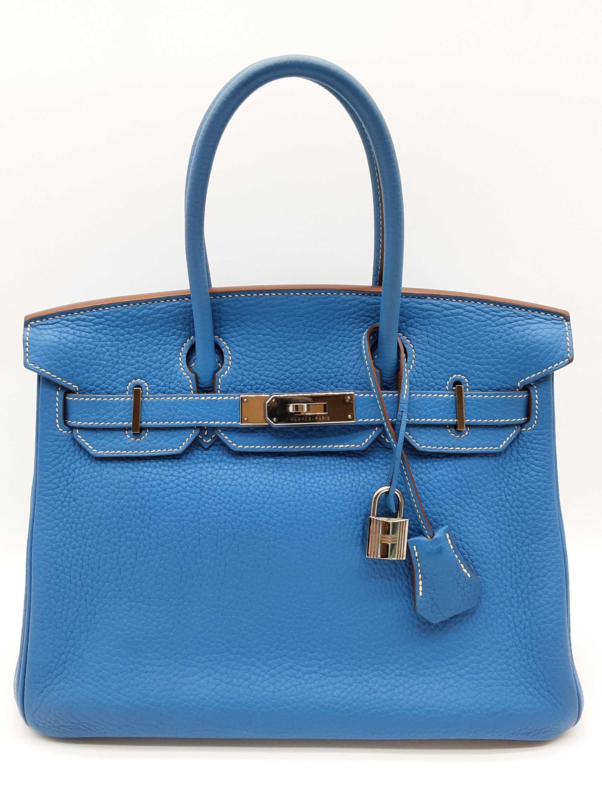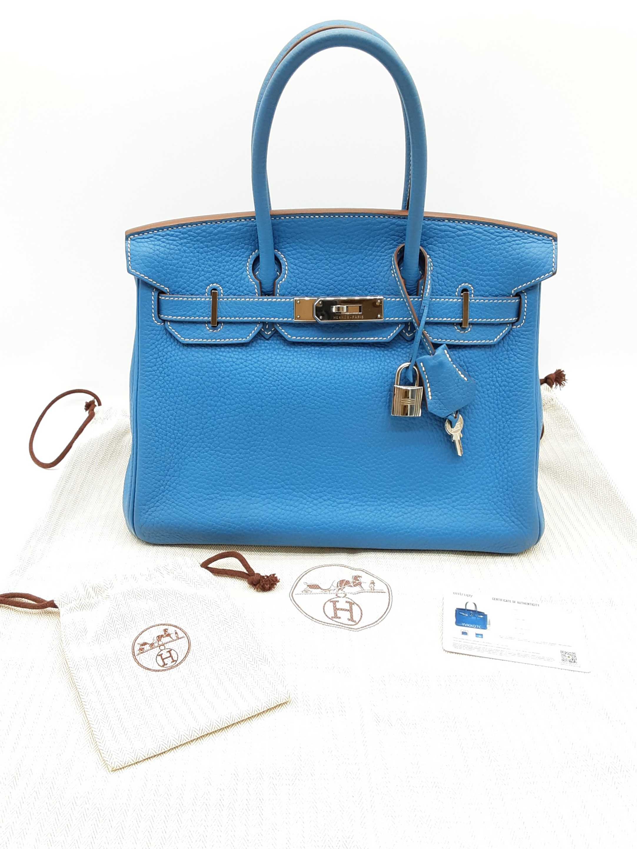 - Hermes Birkin 30 Mykonos Blue Clemence Palladium Handbag Do0325llszxde