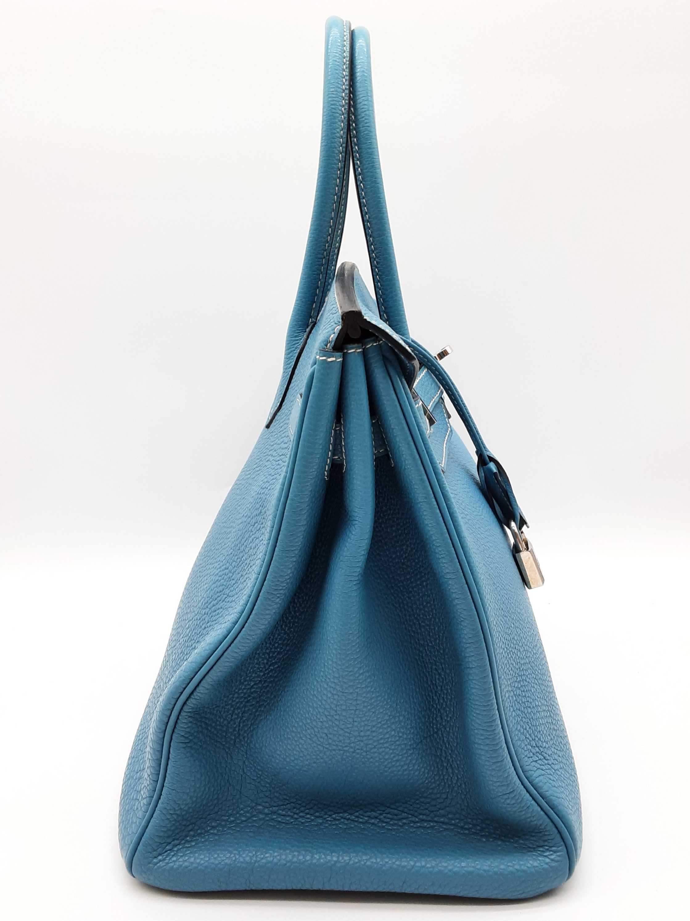 - Hermes Birkin 35 Bleu Jean Blue Clemence Palladium Hardware Handbag Do0925erxzde