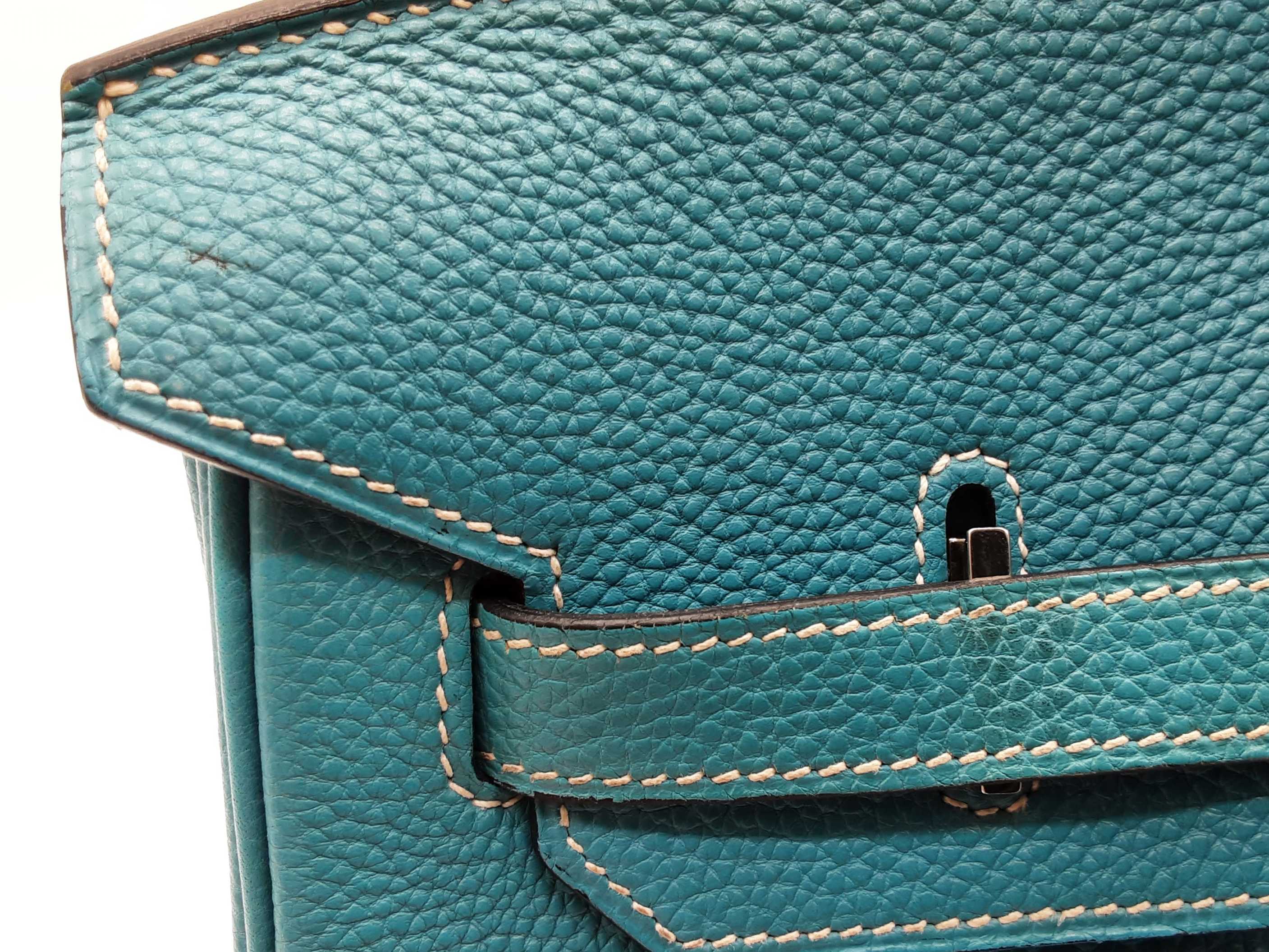 144020039211Hermes Birkin 35CM Bleu Jean Blue Clemence Palladium Hardware Handbag. Length 14 IN X Height 9 IN X Width 7.5 IN X Drop 4.5 IN. Date Code Square J (2006). Entrupy Certificate #C3DJH6H. Pre-Owned - Good Condition with creases, flap curved, scratches on metal hardware, stains and wear in pockets, discoloration and wear on corners, wear on edges, marks on front and on straps, and marks, discoloration and indentations on interior.