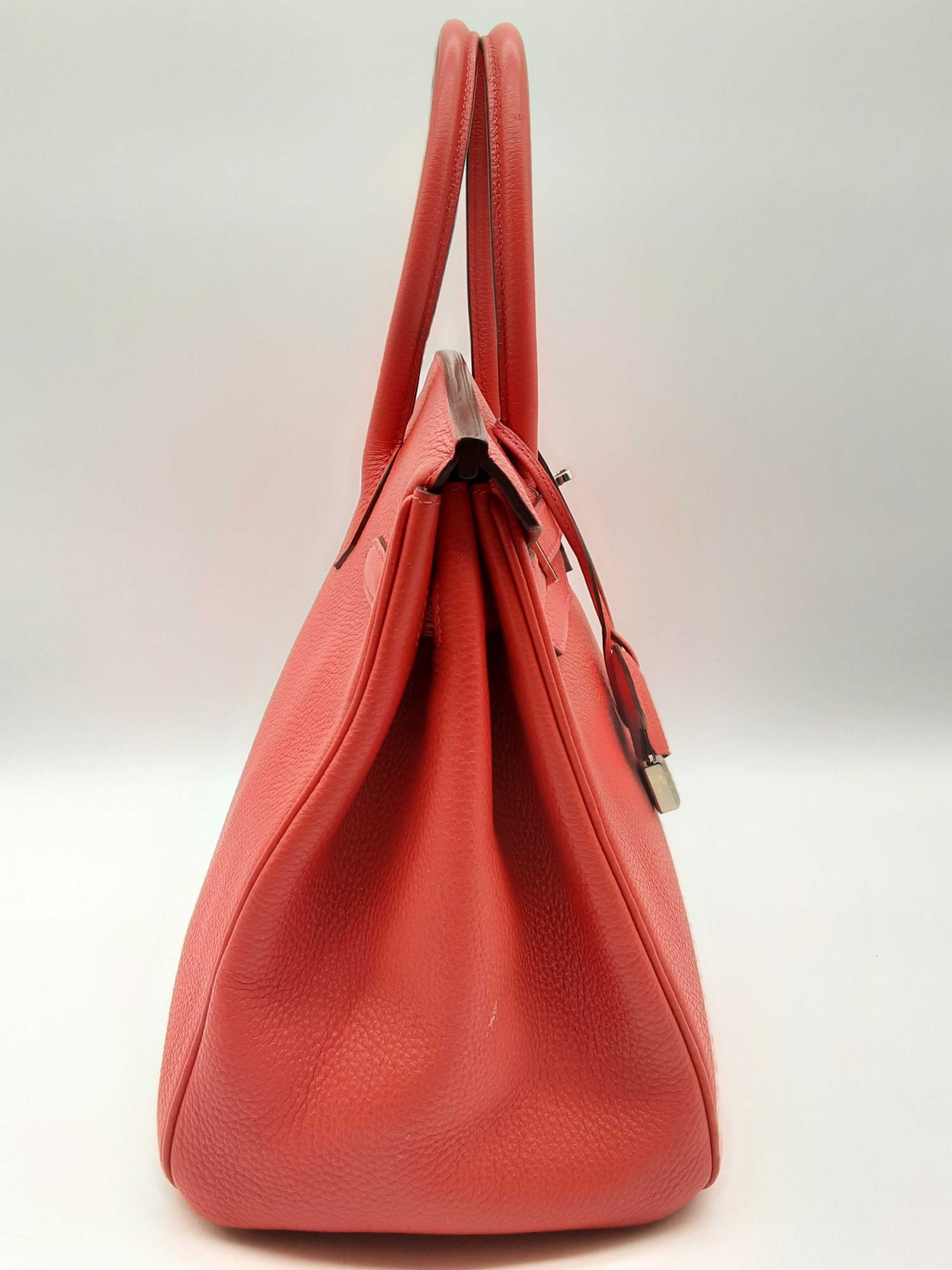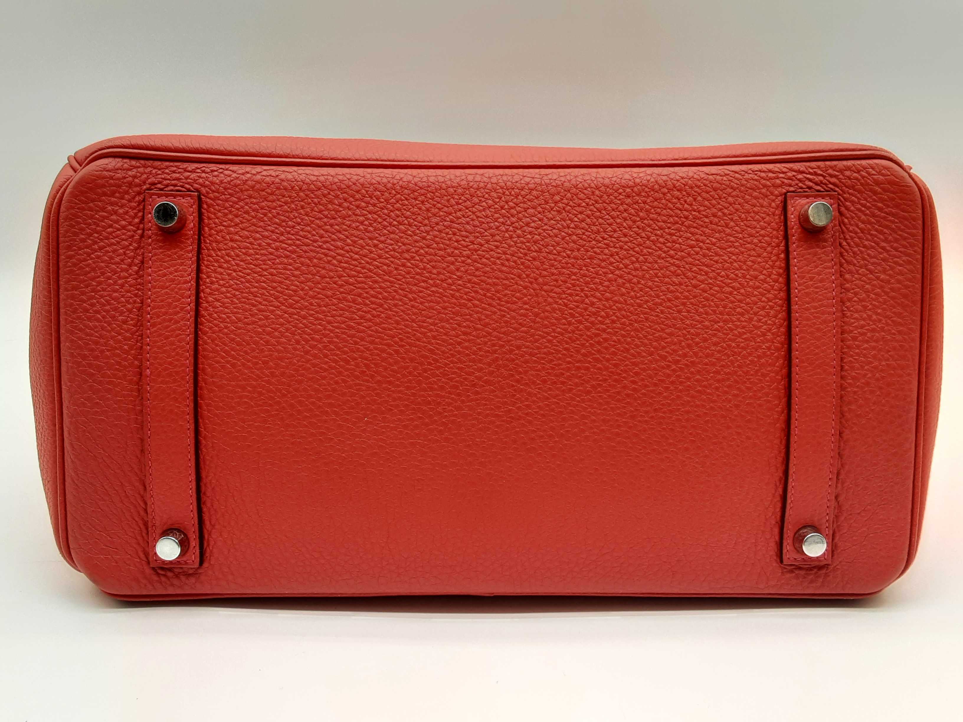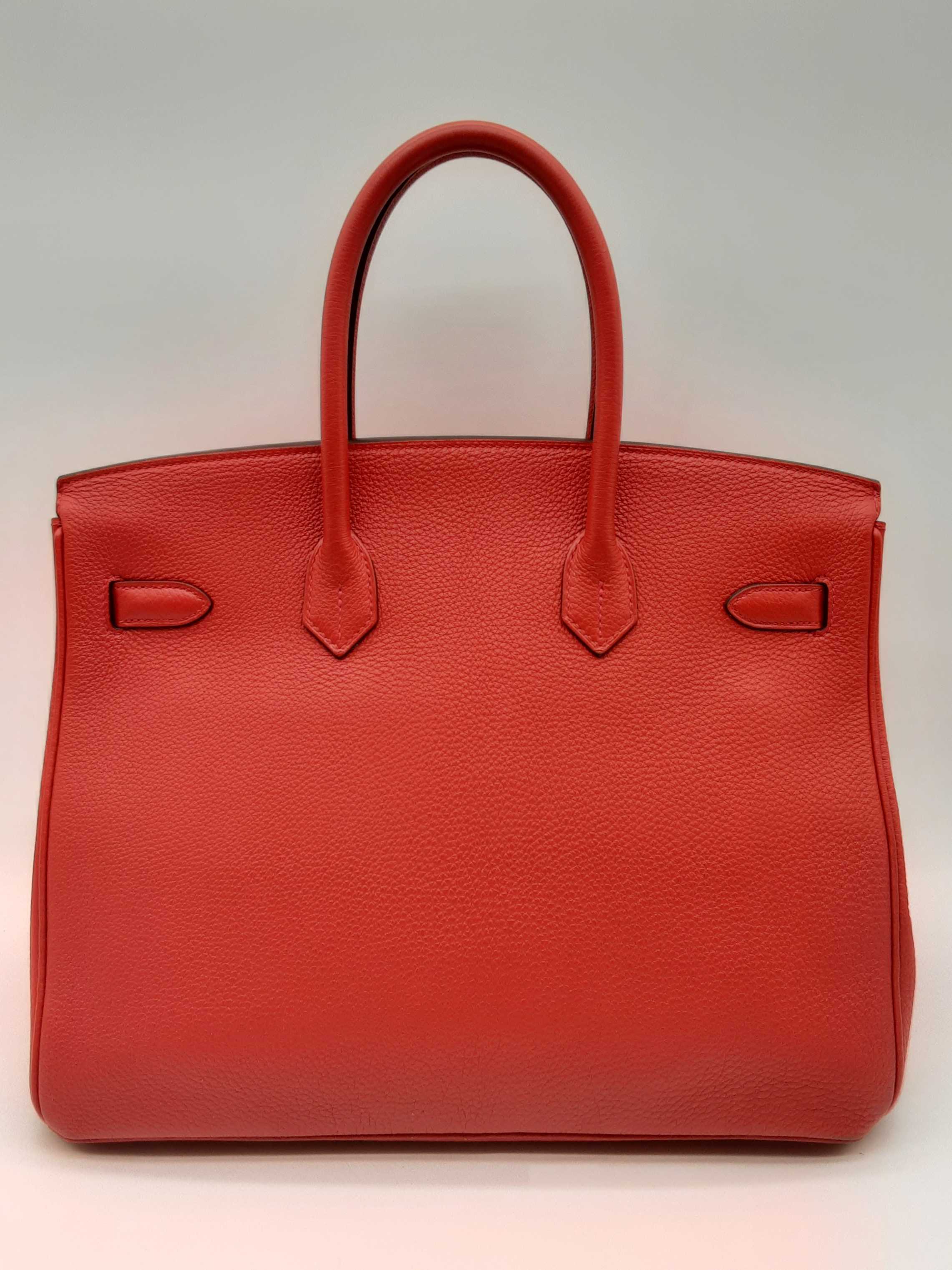 - Hermes Birkin 35 Geranium Red Clemence Palladium Handbag Do0724sxzxmia