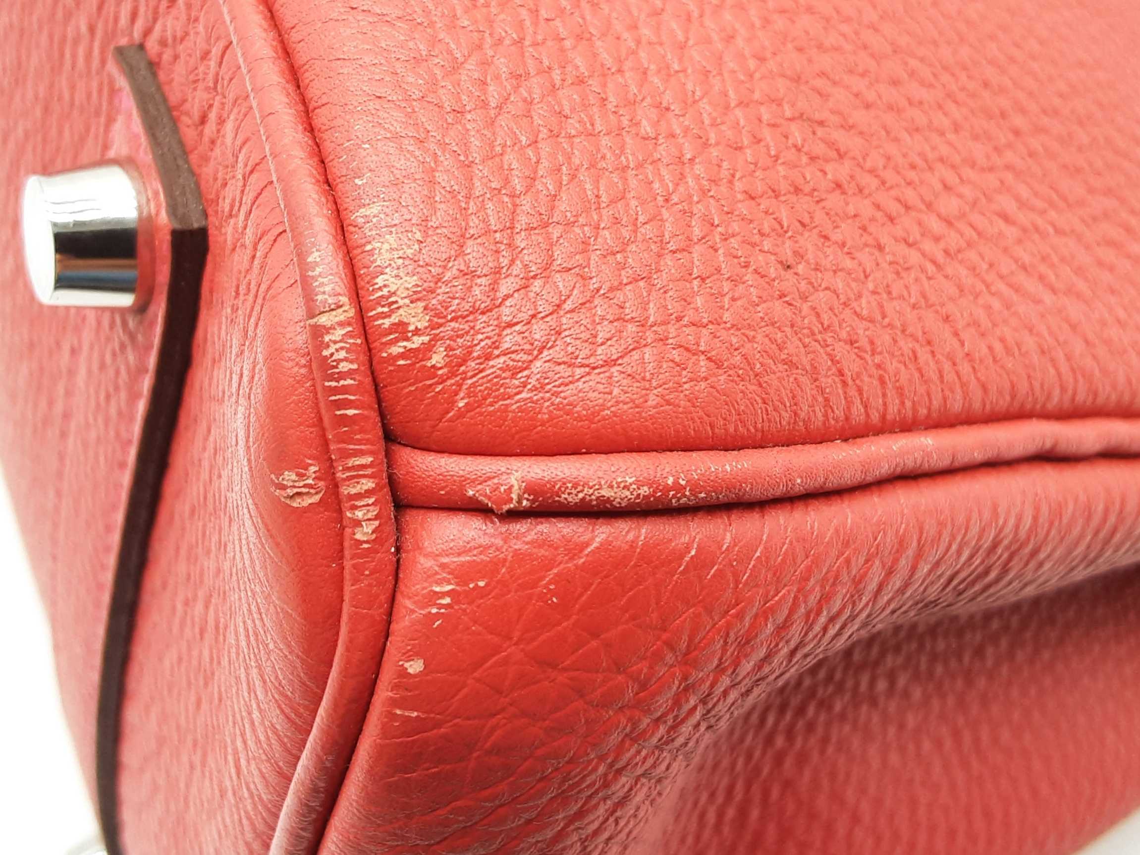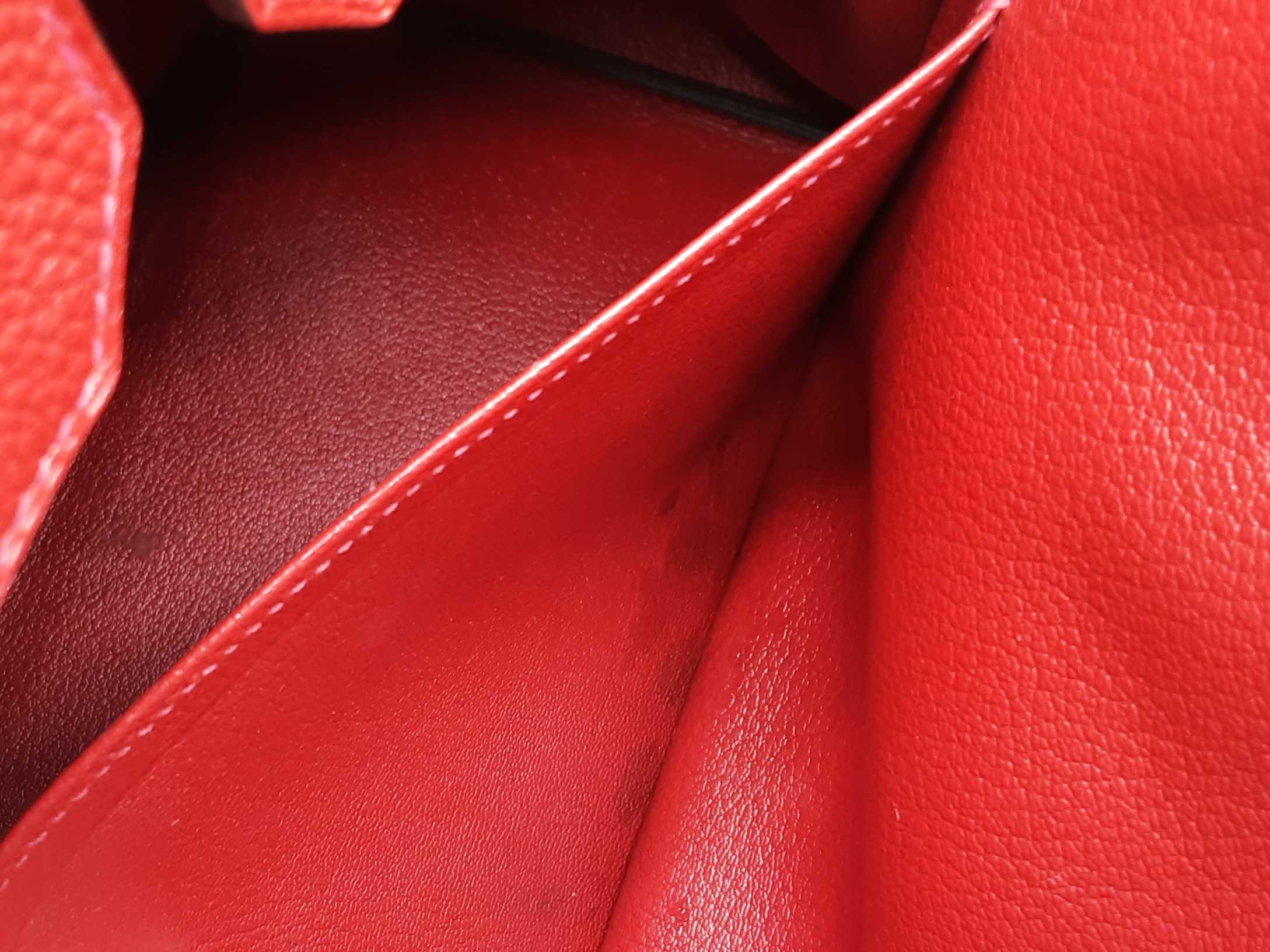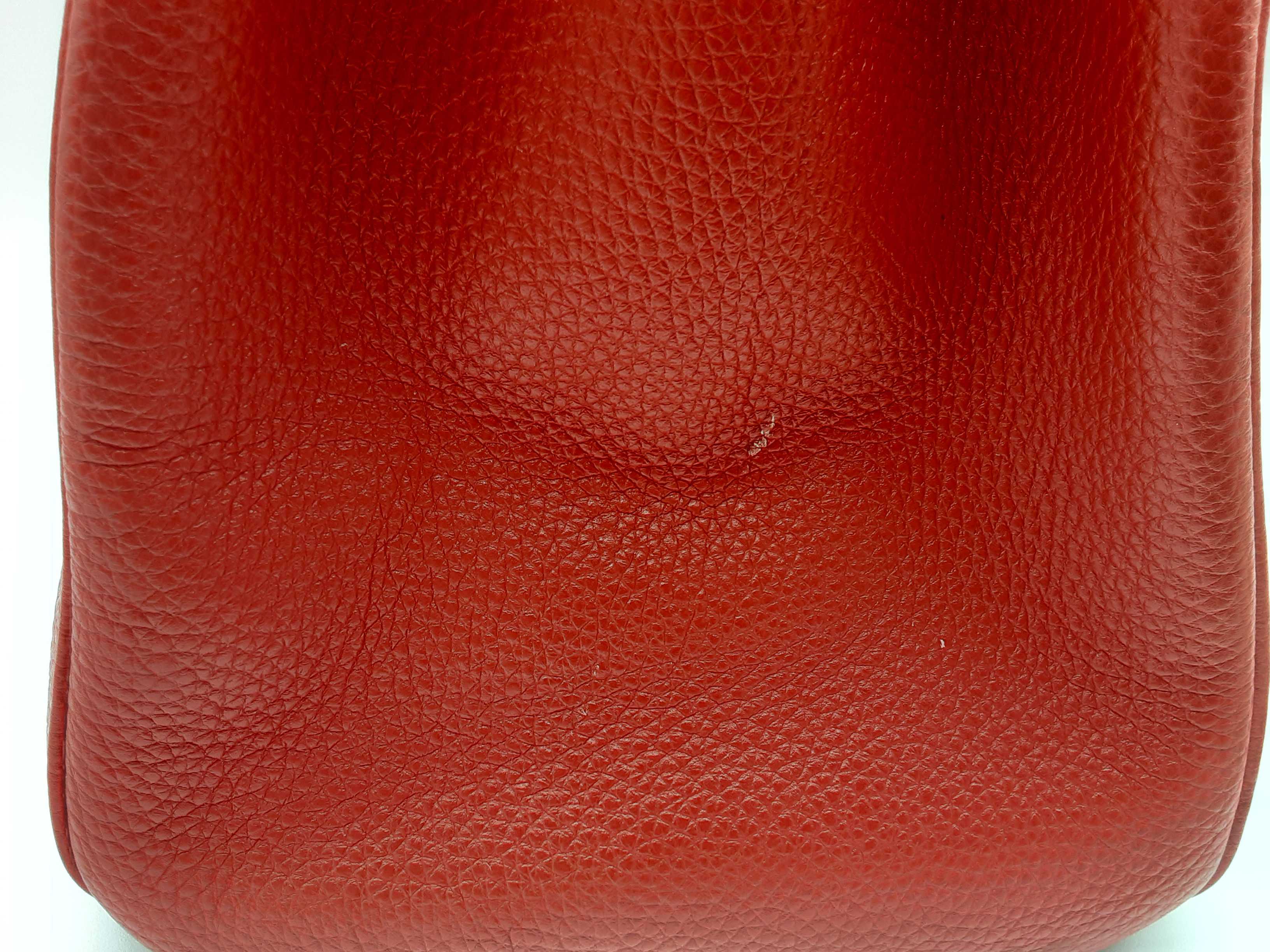 144020018888Hermes Birkin 35CM Geranium Red Clemence Palladium Hardware Handbag. Length 14 IN X Height 10 IN X Width 7.5 IN X Drop 4.5 IN. Date Code Square P (2012). Entrupy Certificate #YDJXR2B. Good Pre-owned Condition with scratches on metal hardware, creases, flap curved, wear and discoloration on handles, corners and edges, marks on exterior, and scratches, marks and stains on interior and inside interior pockets.
