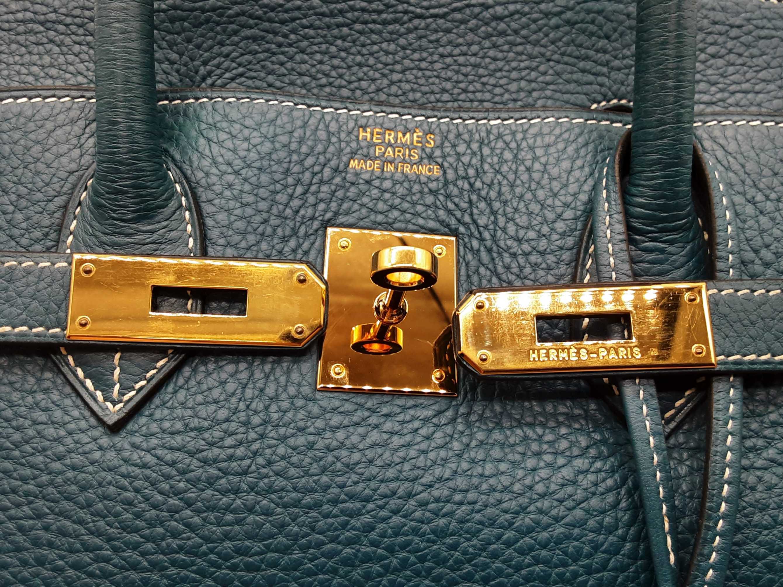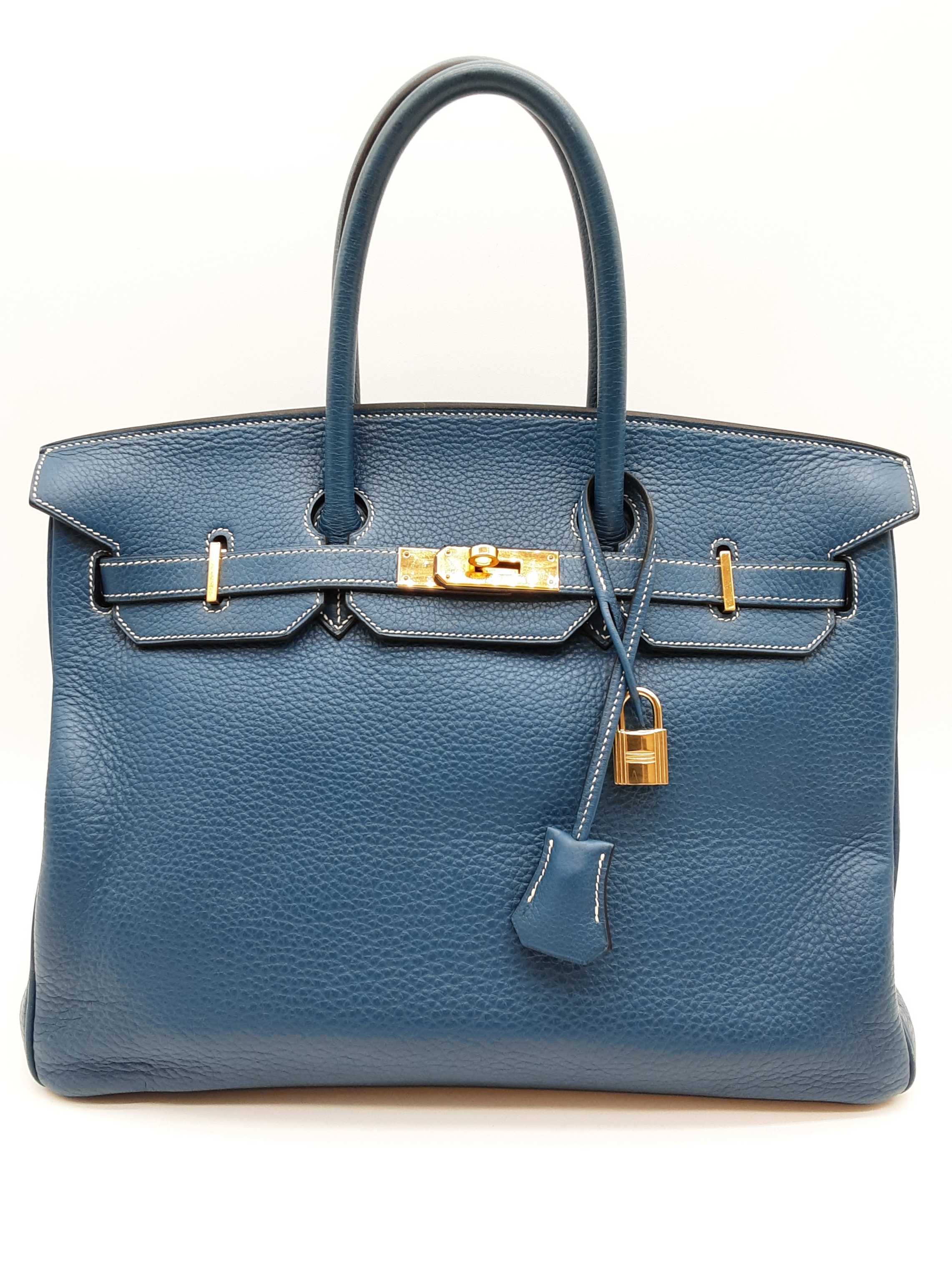 - Hermes Birkin 35 Thalassa Blue Clemence Gold Hardware Handbag Do0825sxzxde