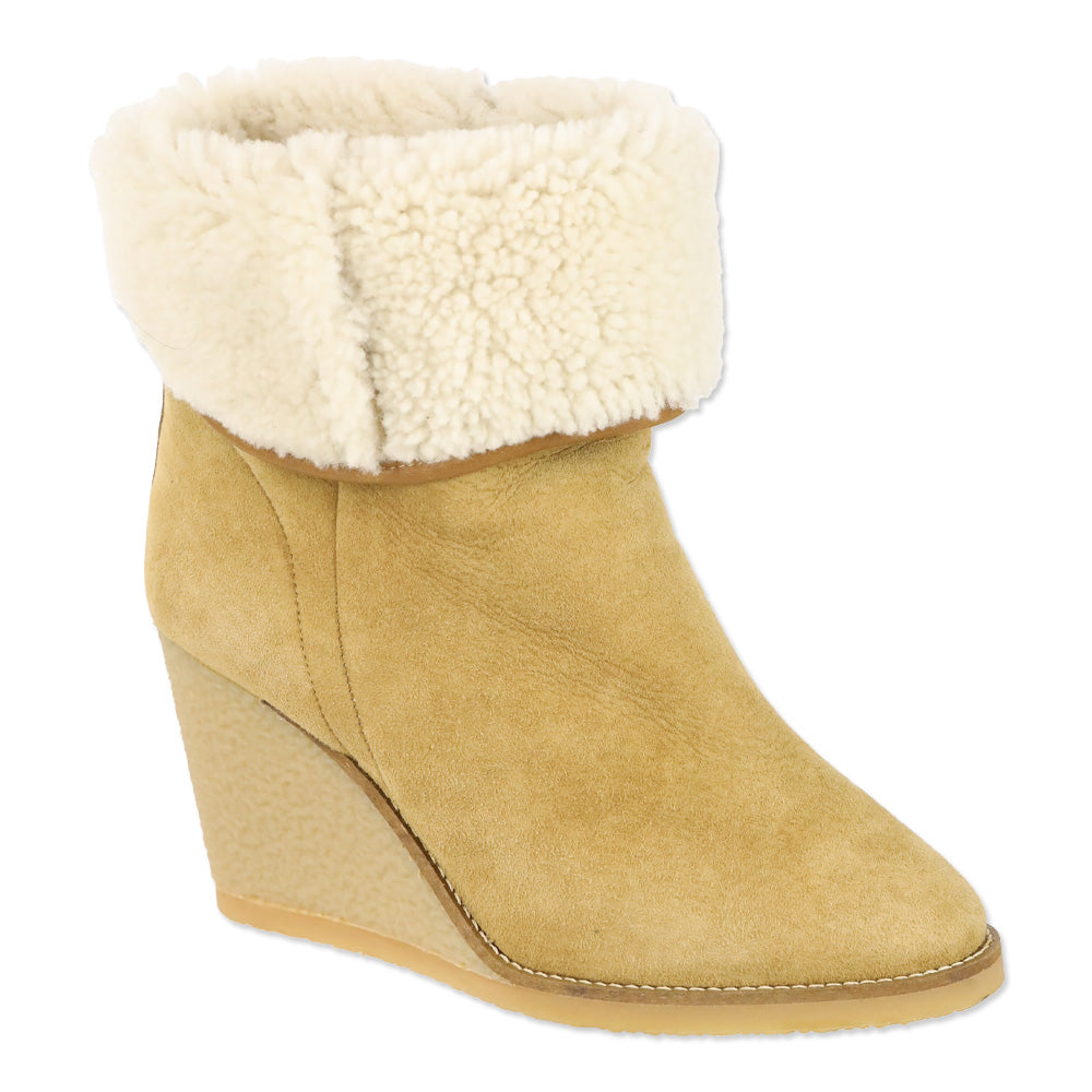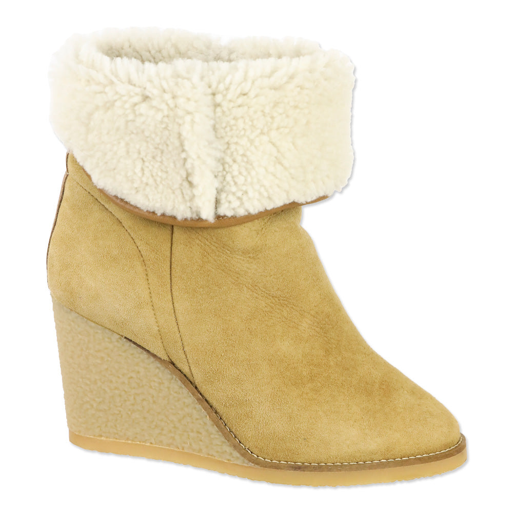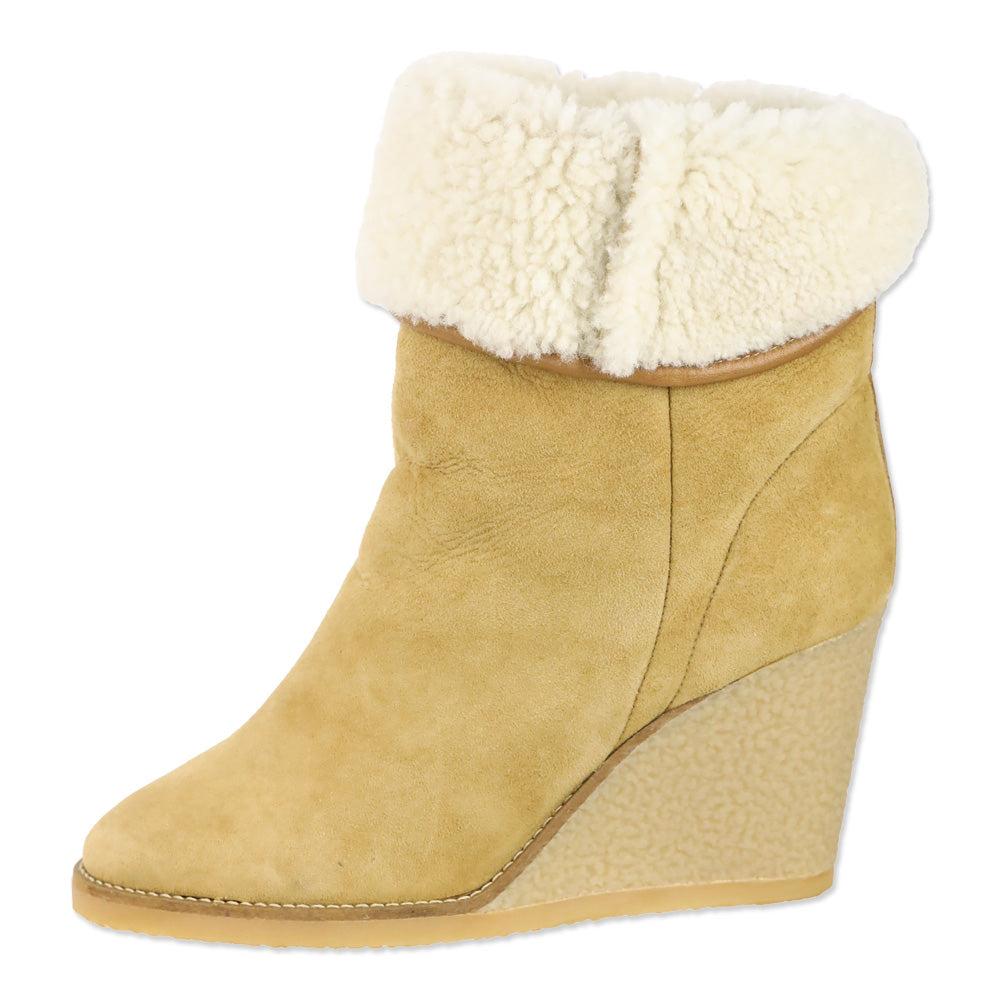 - Isabel Marant Beige Suede Shearling Wedge Totam Booties