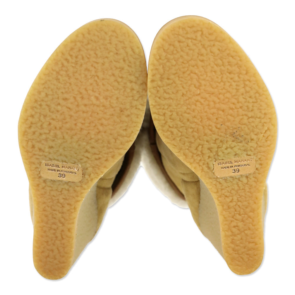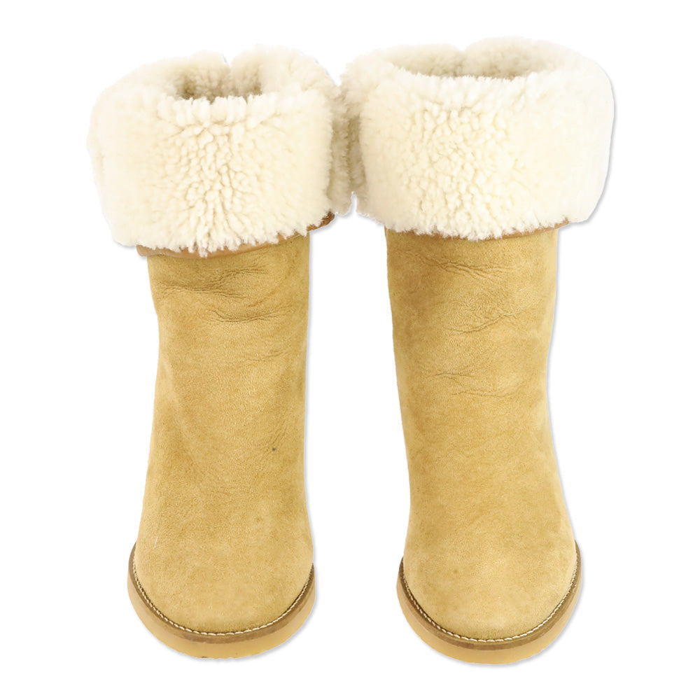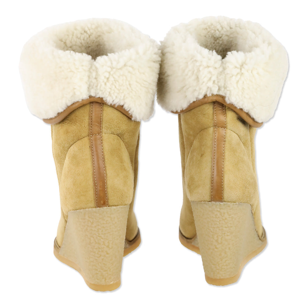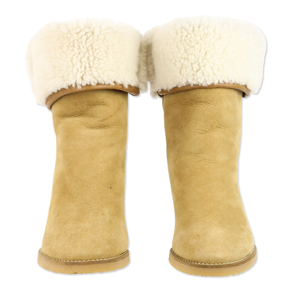 - Isabel Marant Beige Suede Shearling Wedge Totam Booties