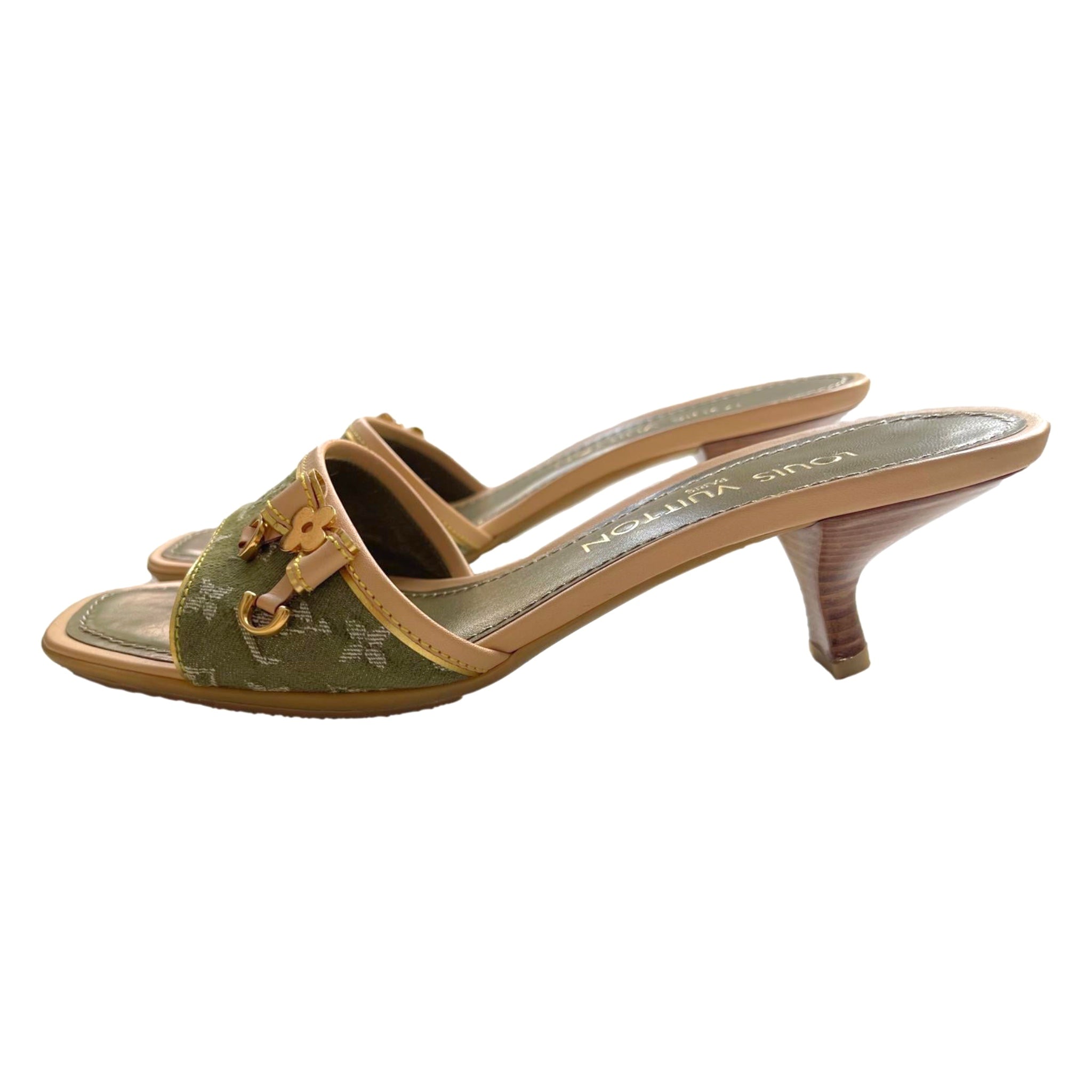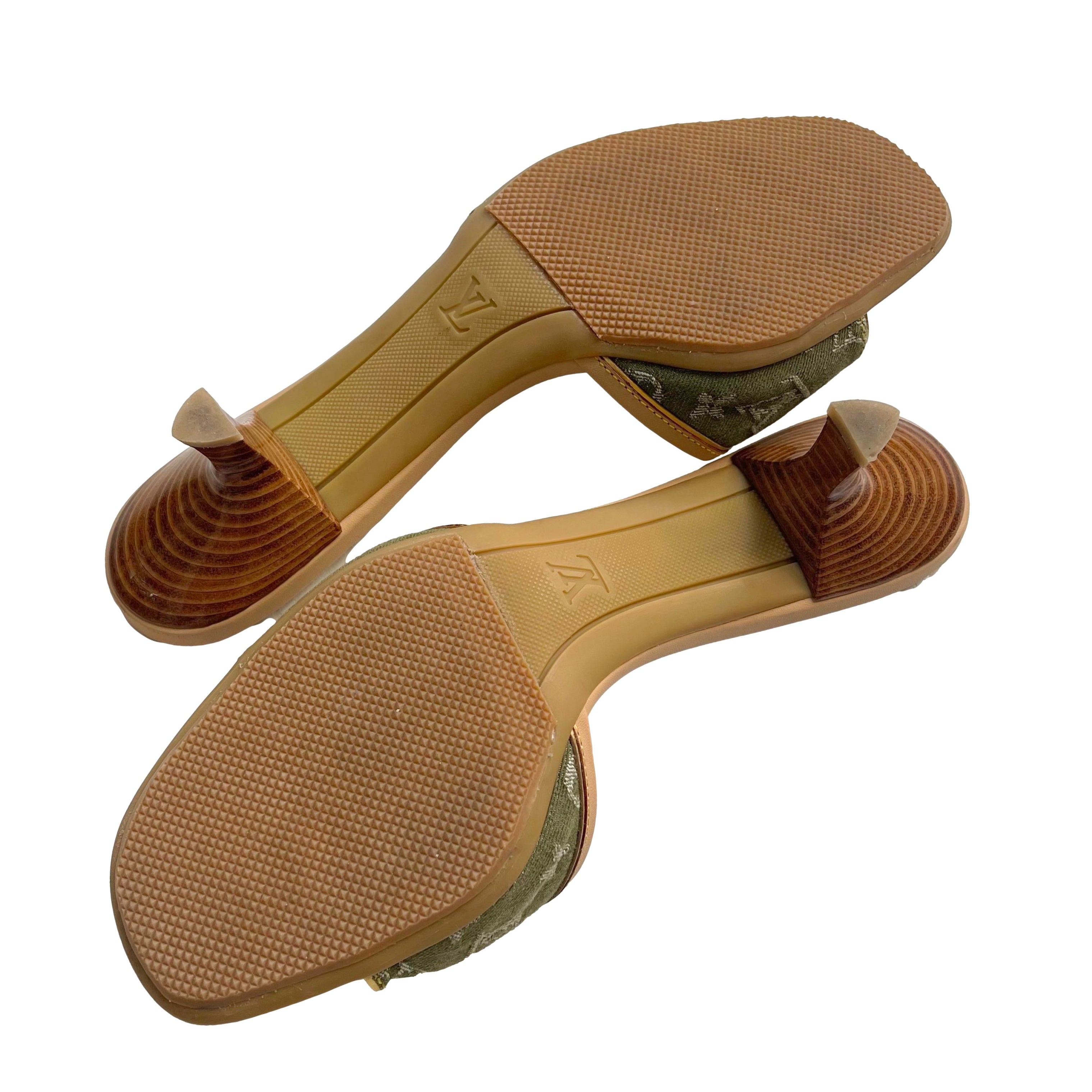 Louis Vuitton Green Denim Kitten Heels
