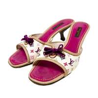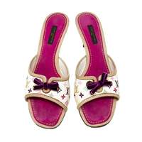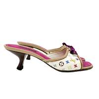 Louis Vuitton White Multicolor Logo Kitten Heels