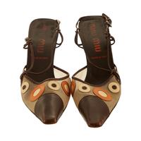 Miu Miu Brown Polkadot Mesh Slingback Heels