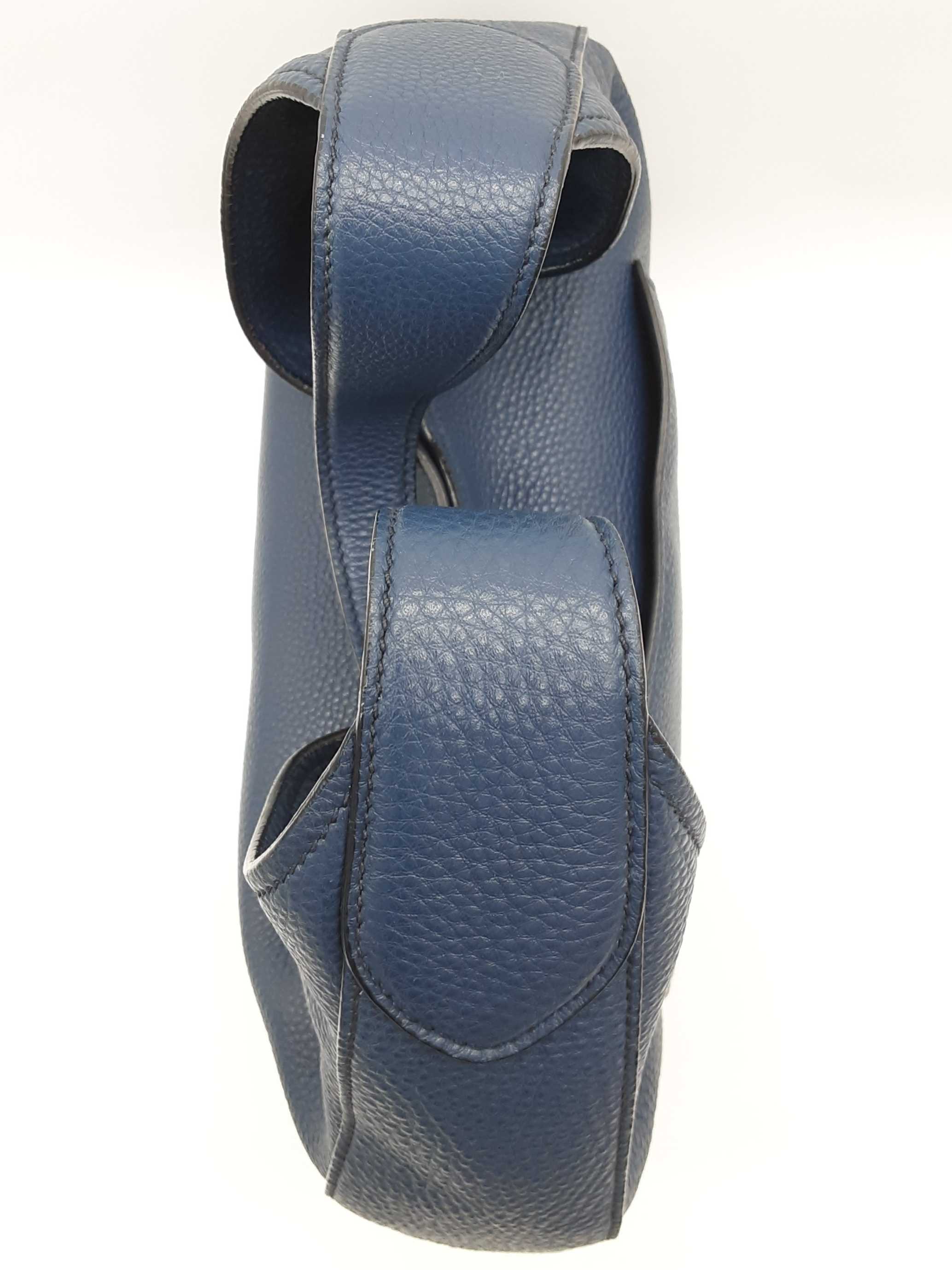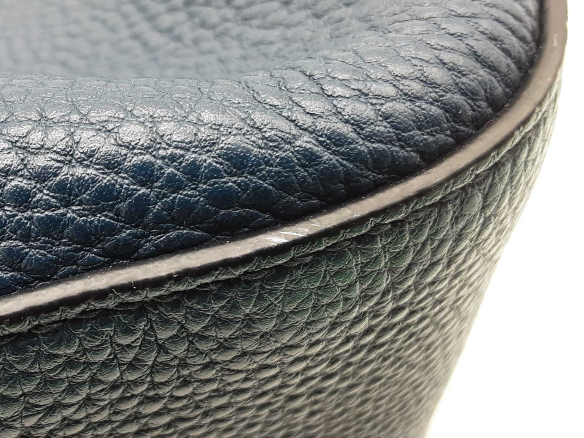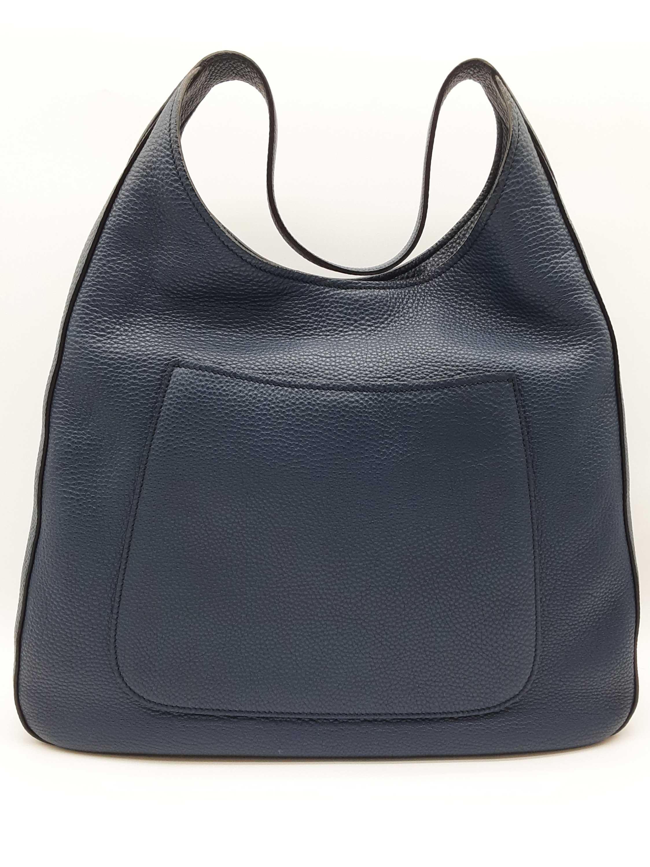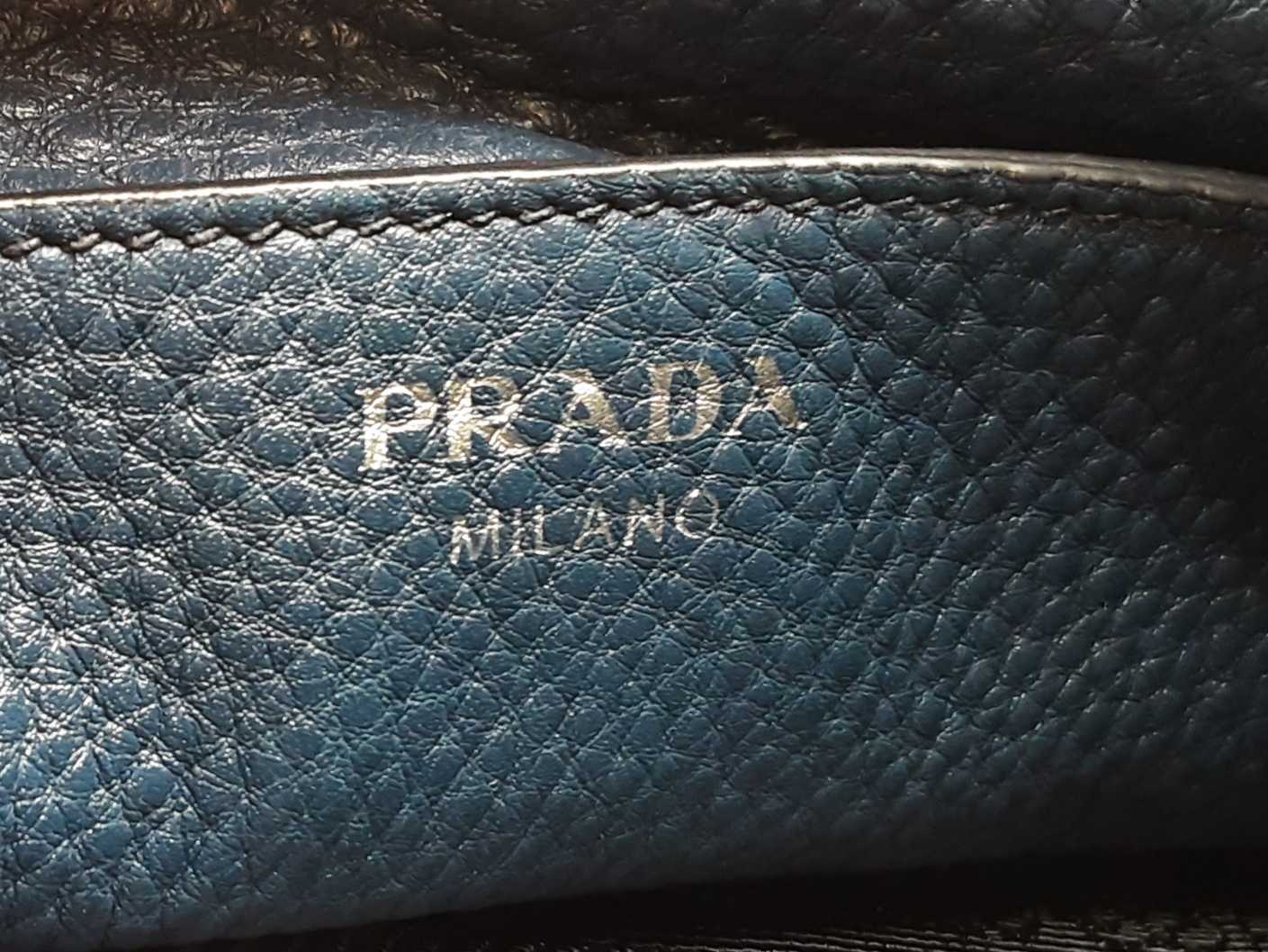 144020028971Prada Navy Blue Pebbled Leather Hobo Tote Bag. Length 15.5 IN X Height 12 IN X Width 3.5 IN X Drop 11 IN. Style #1BC009. Entrupy Certificate #9BWMCGX. Pre-owned - Good Condition with creases, cracking on edges, and marks on corners.