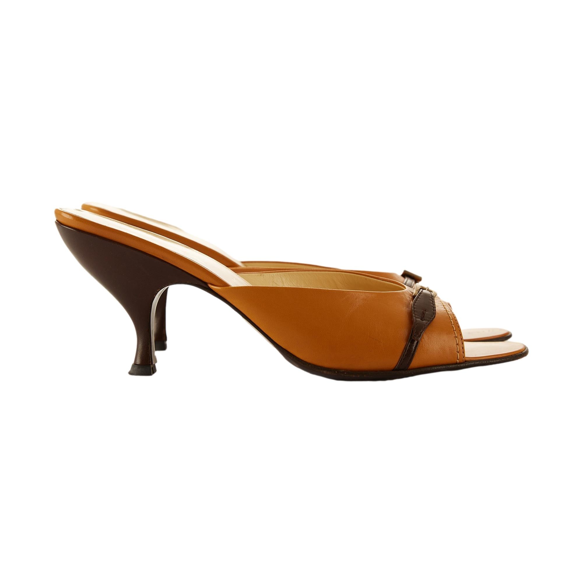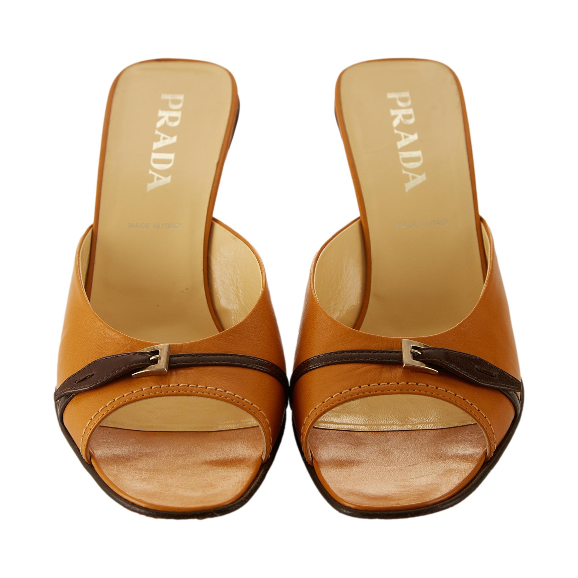 - Prada Brown Leather Buckle Heels