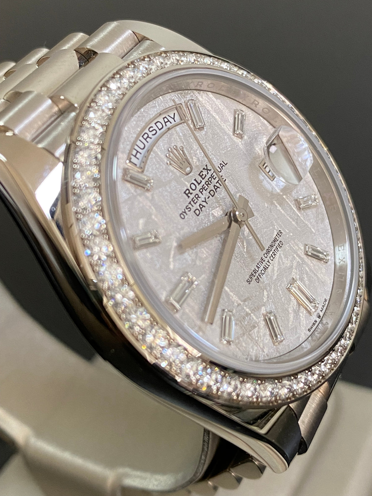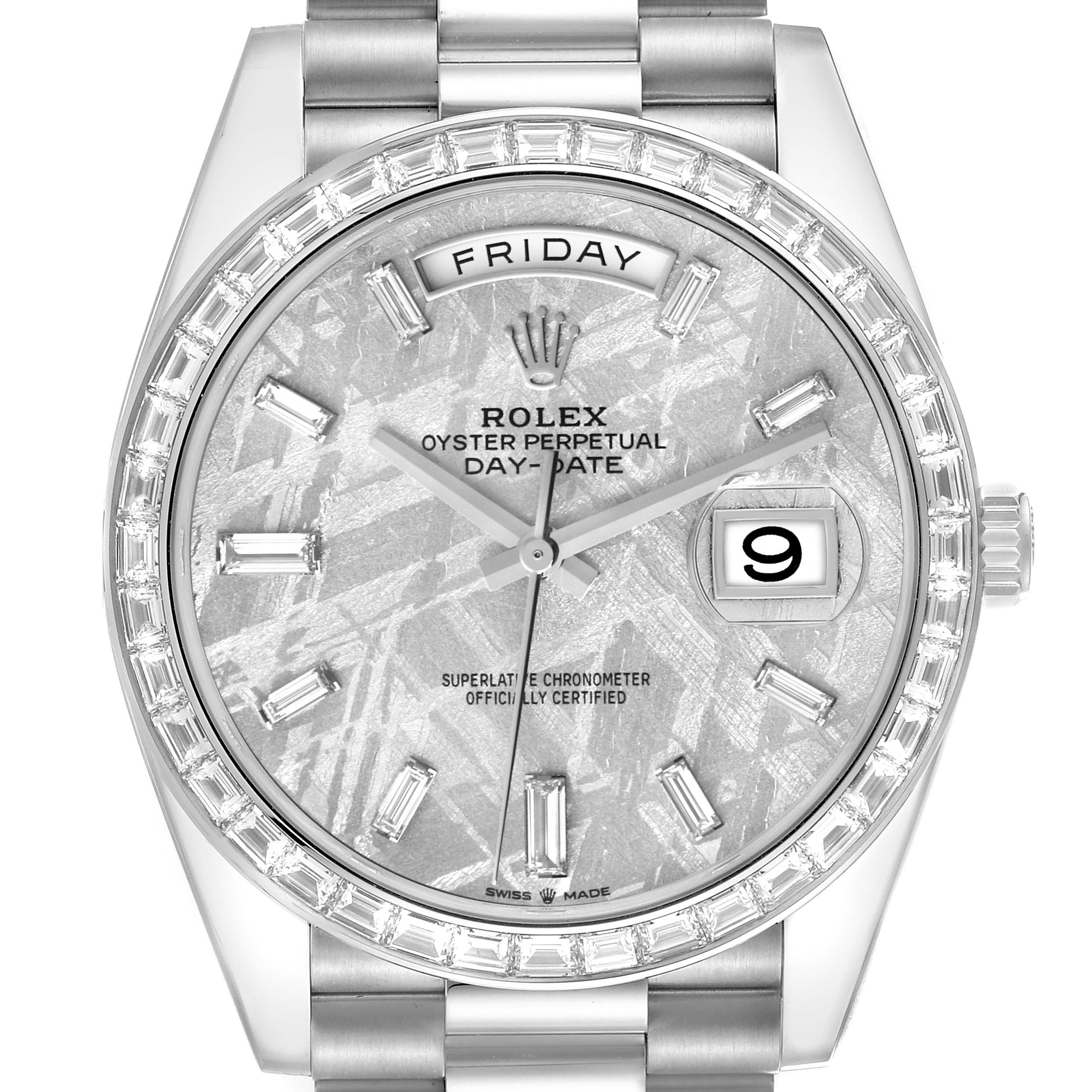 - Rolex Day-Date 40 Platinum Meteorite Diamond Dial Diamond Bezel Men's Watch M228396TBR-0027
