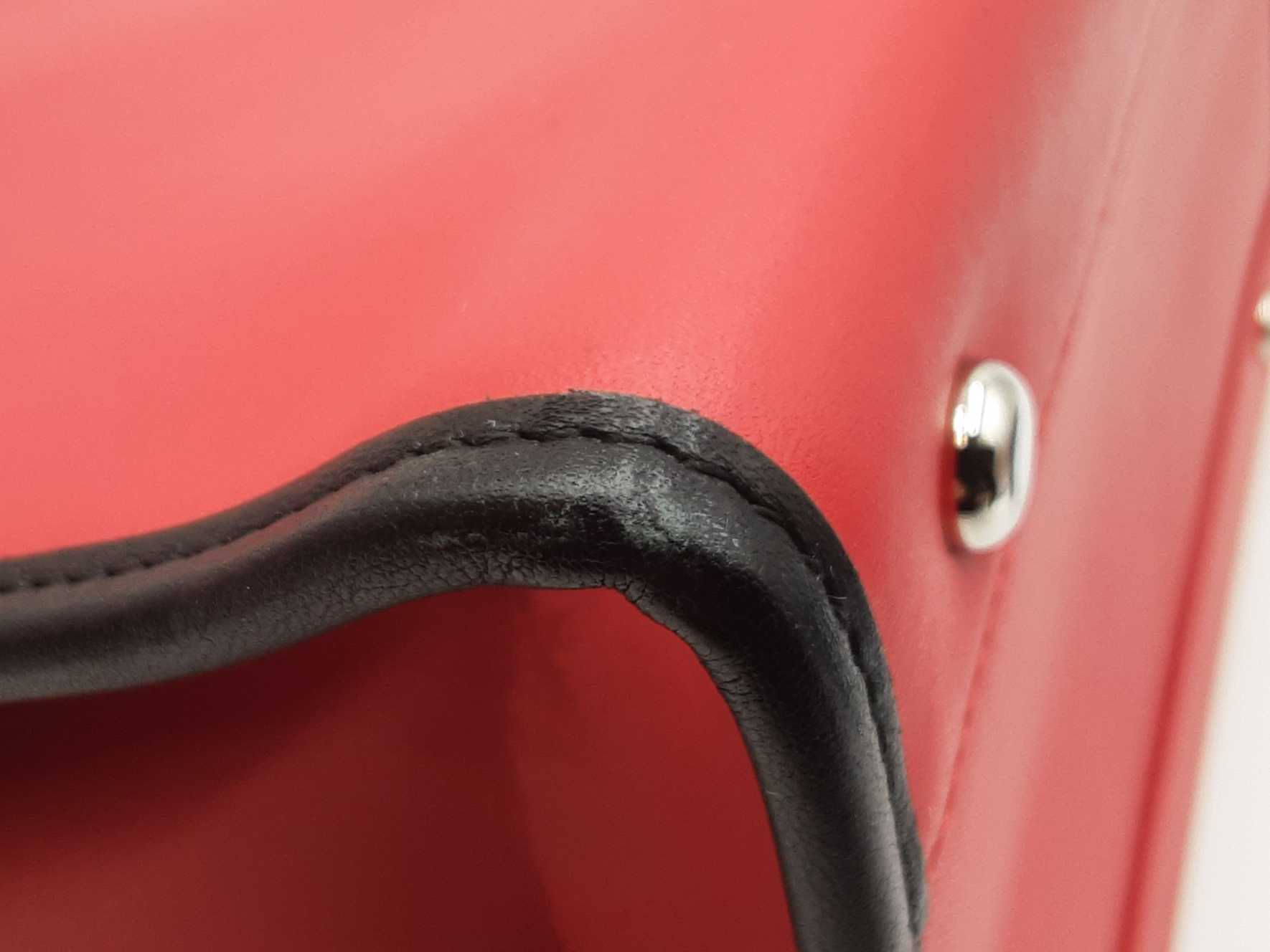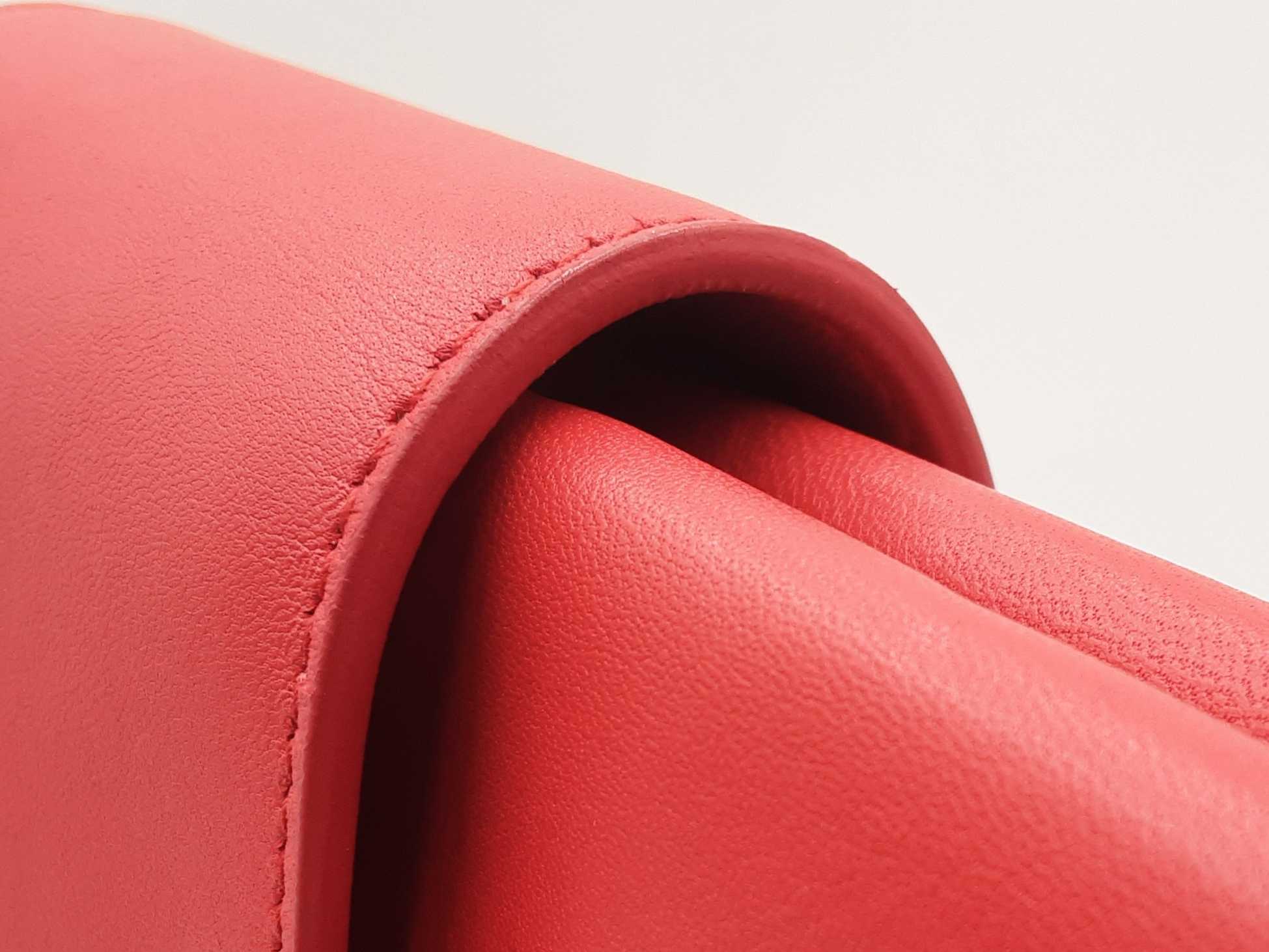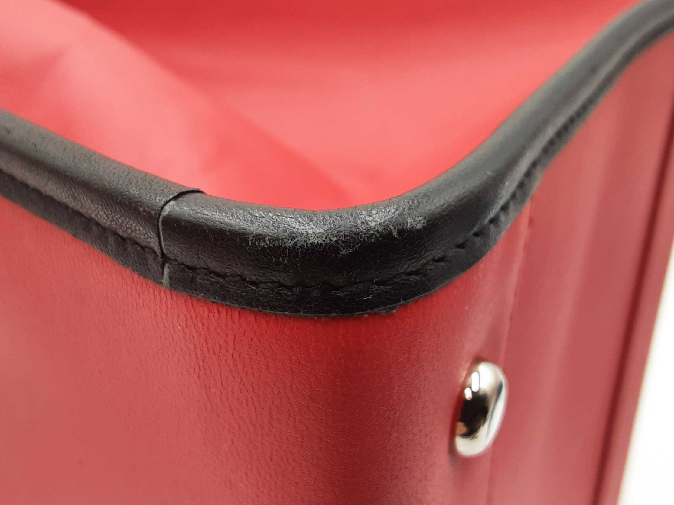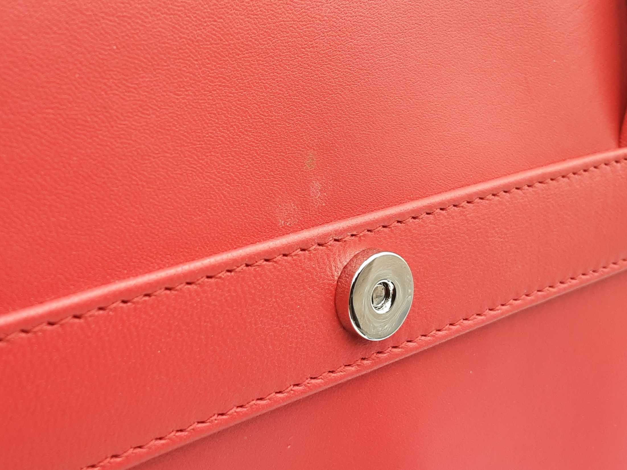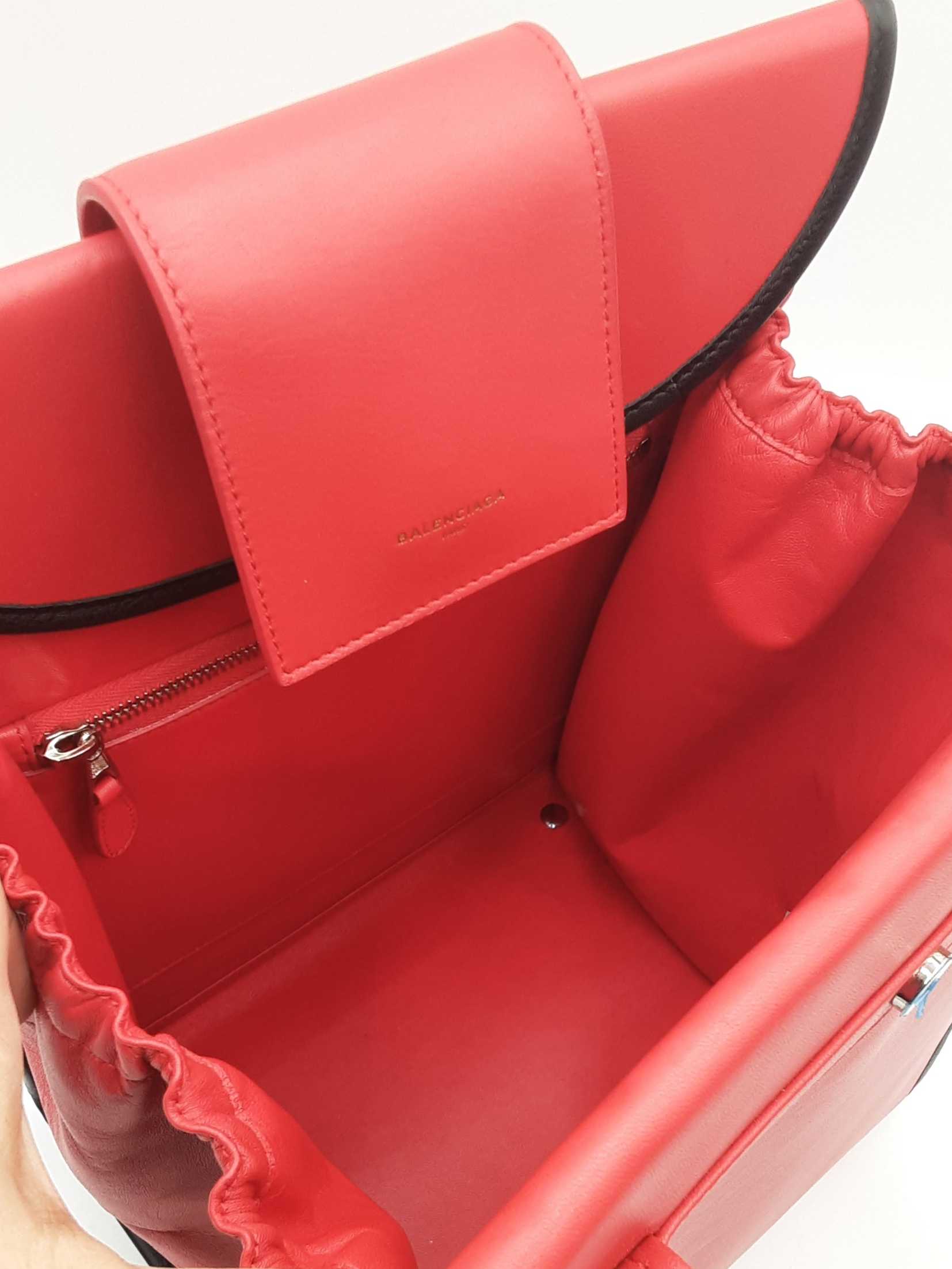 144030018757Balenciaga Agneau Classique Brillante Tote In Rouge Tango Leather. Height 14 X Length 14 X Base Width 7.5 X Strap Drop 10.5 inches, approximately. Great Pre-Owned Condition. Scratches on all bottom feet. Wear on all bottom corners. Creasing, scuffs, and small discolorations throughout leather. Entrupy Certificate # RJG67DQ