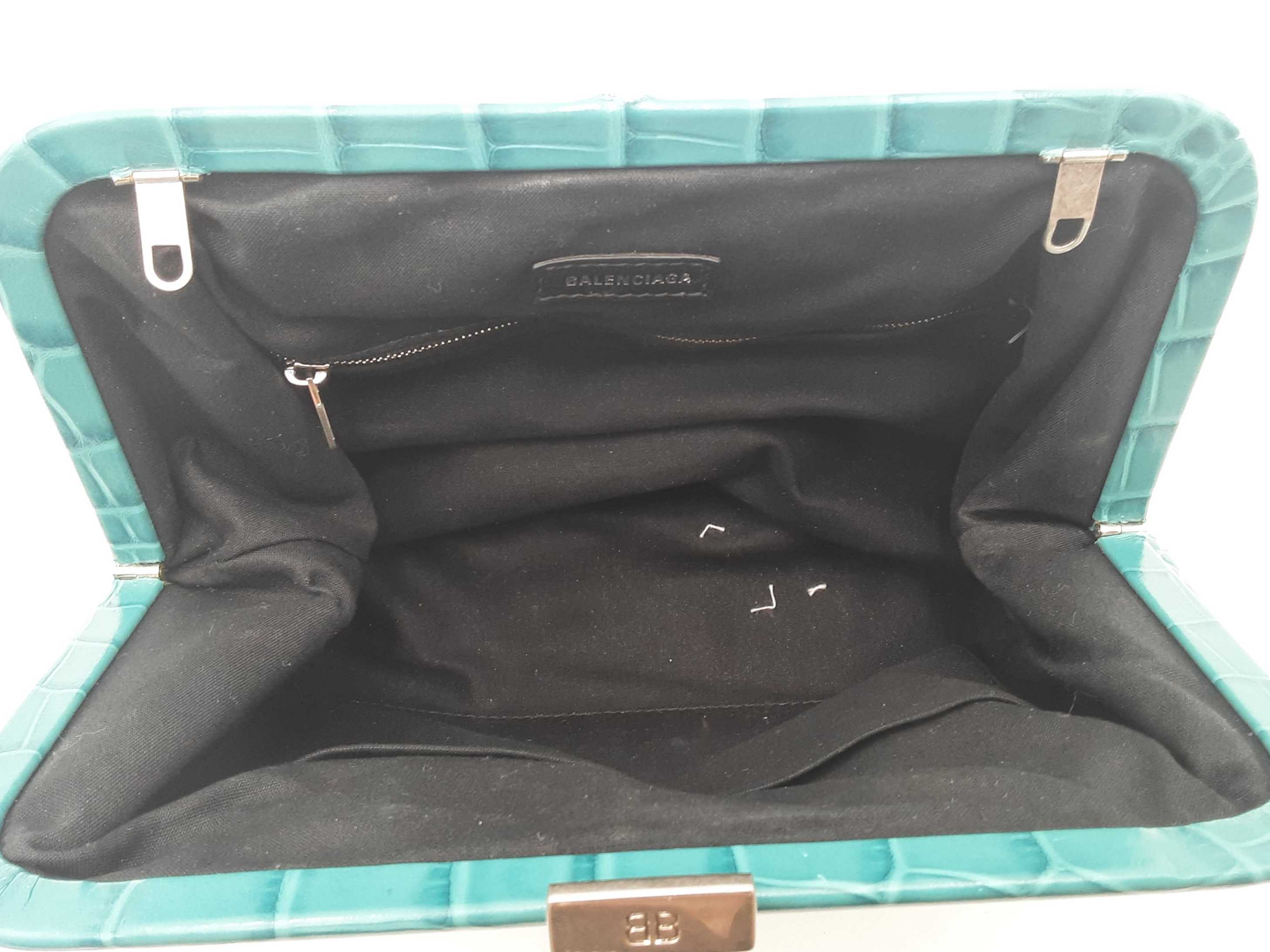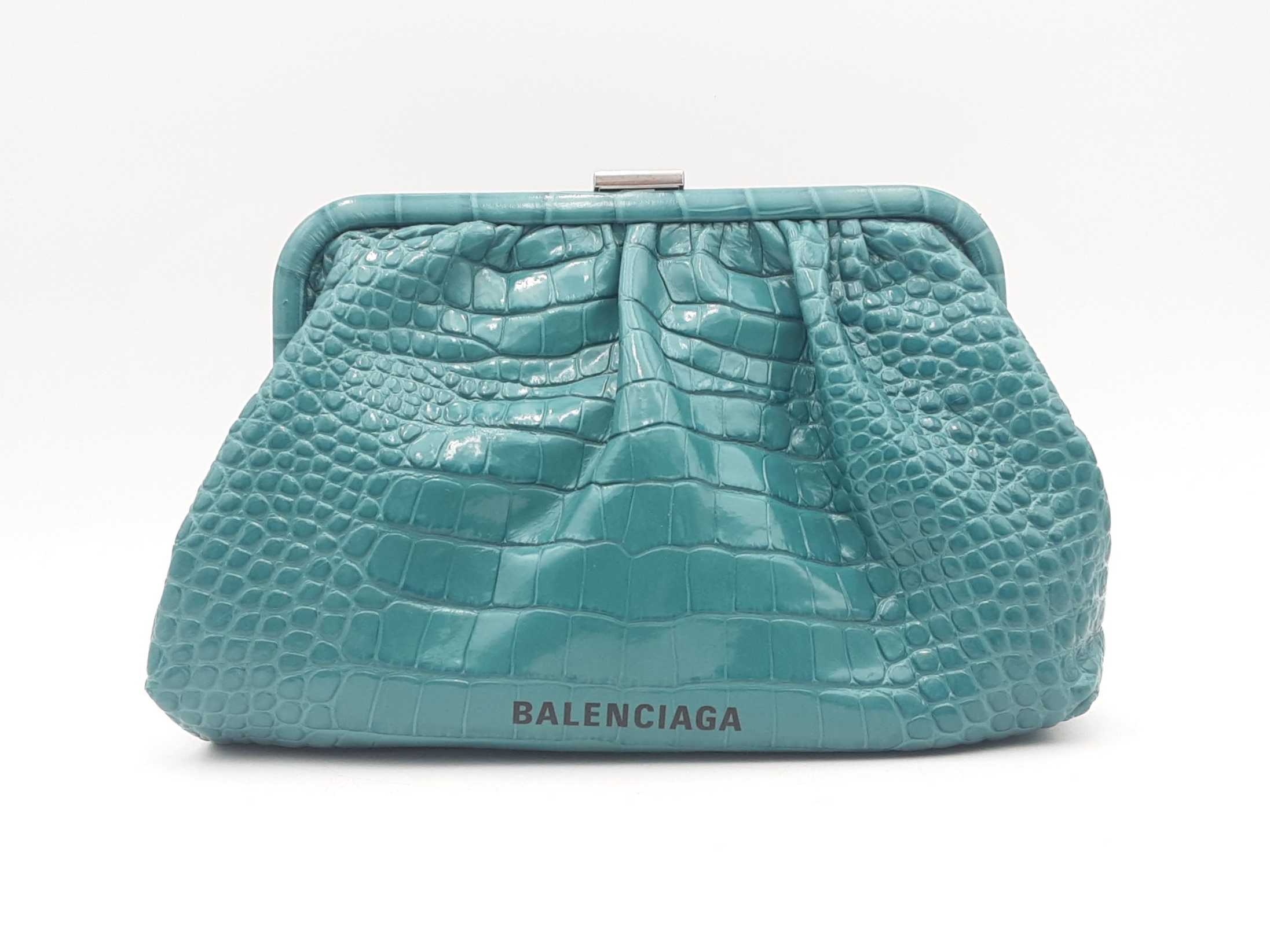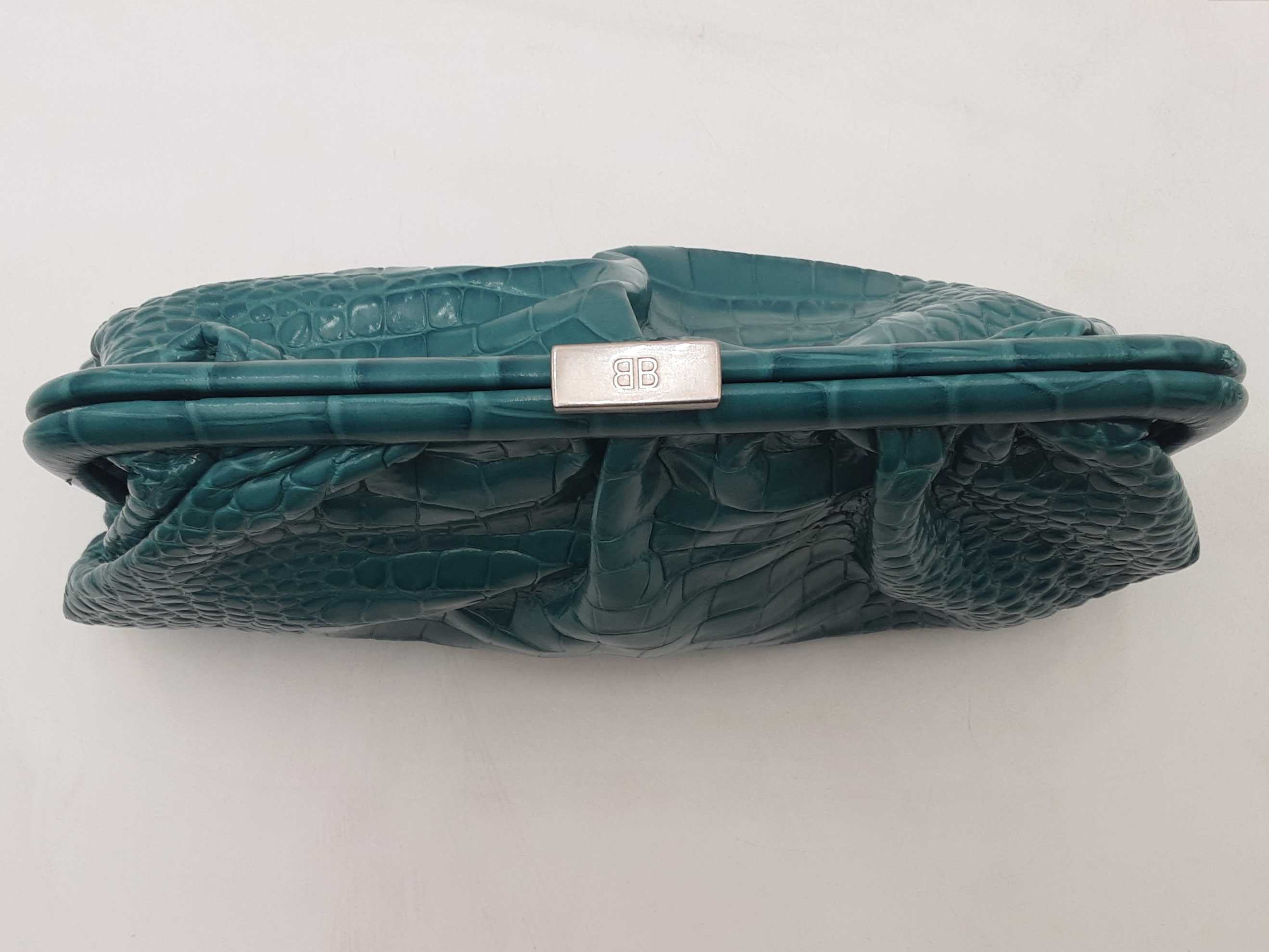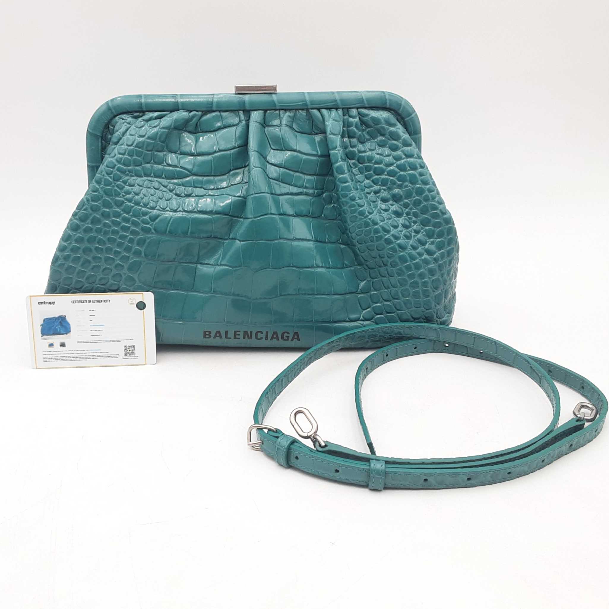 144010059671Balenciaga Cloud Clutch Croc Print Leather Crossbody. Silver-Tone Hardware. Approximate measurements Height 8 IN X Length 12 IN X Width 3.5 IN. Optional adjustable drop 14-23 IN. Good Pre-Owned Condition. Scratches on hardware. Top of bag has damage on corners as pictured. Tear or cut on opposite side of bag near the top. Interior has dust and debris. Entrupy Certificate #C6KDXVH
