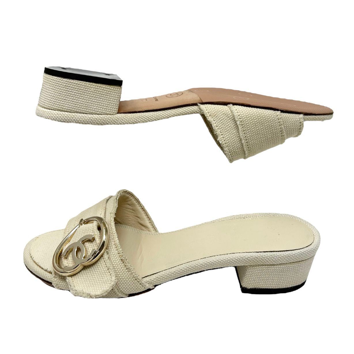 Chanel Beige Heart Logo Kitten Heels