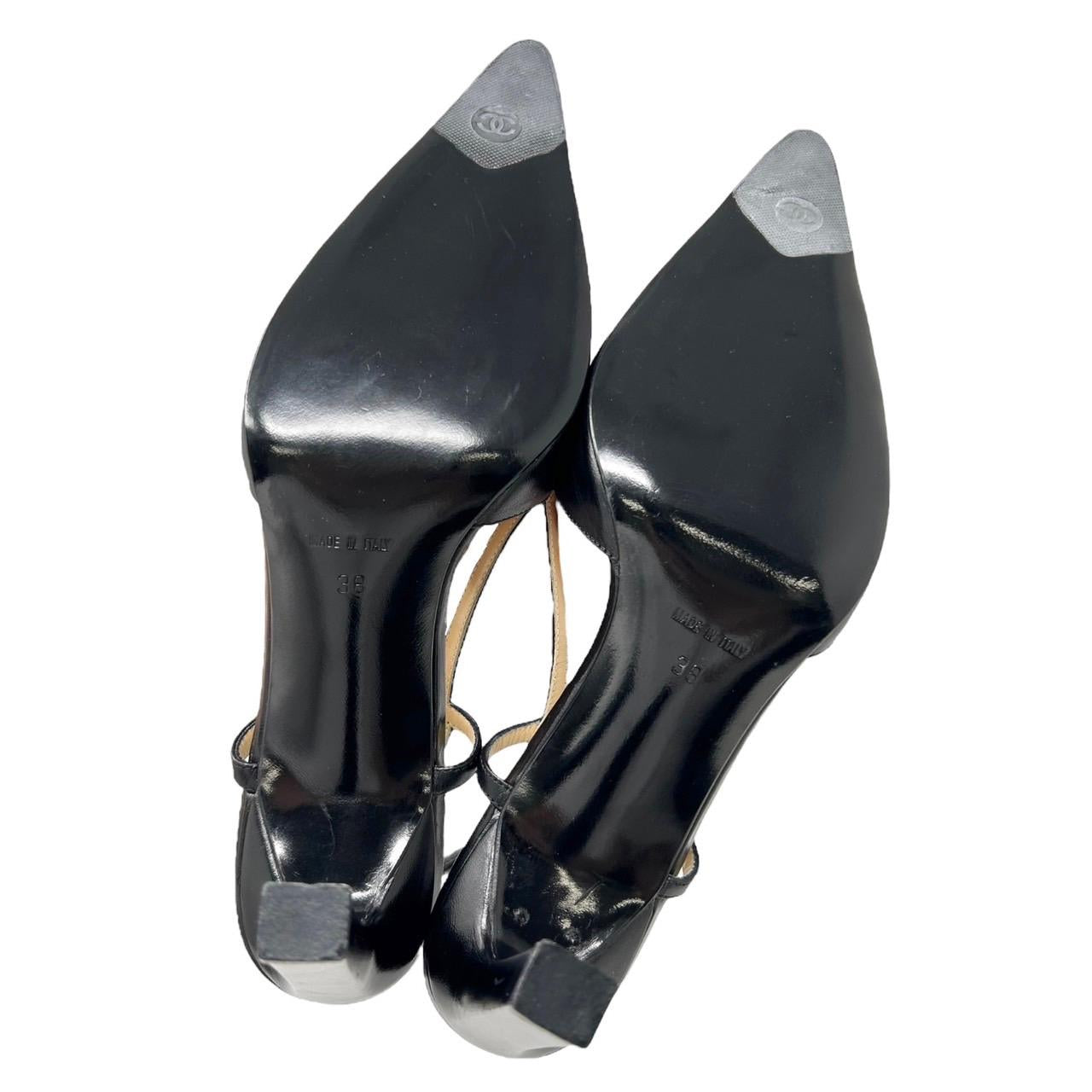 Chanel Black Logo Slingback Heels