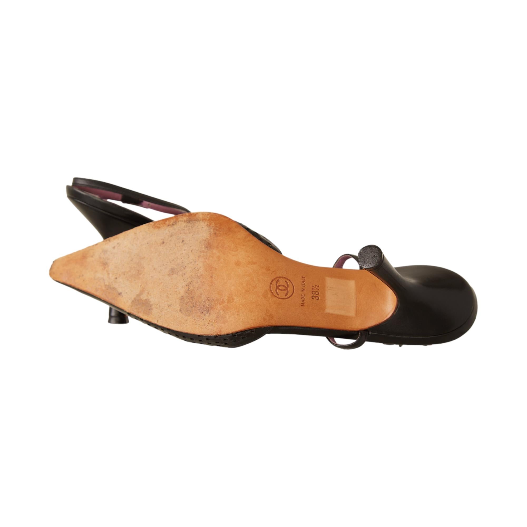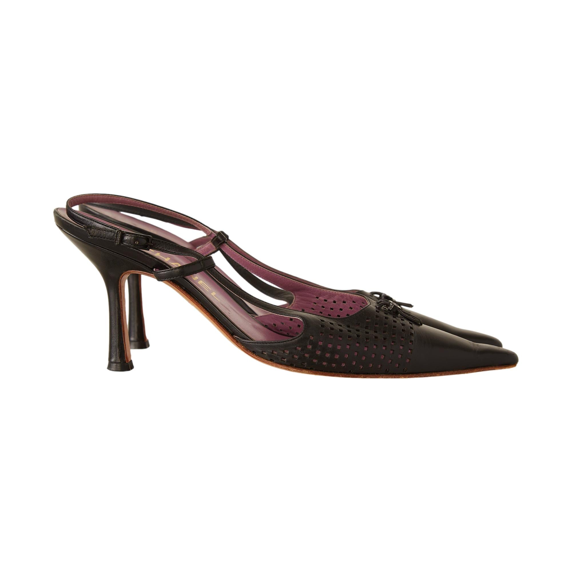 Chanel Black Perforated Sling Back Heels