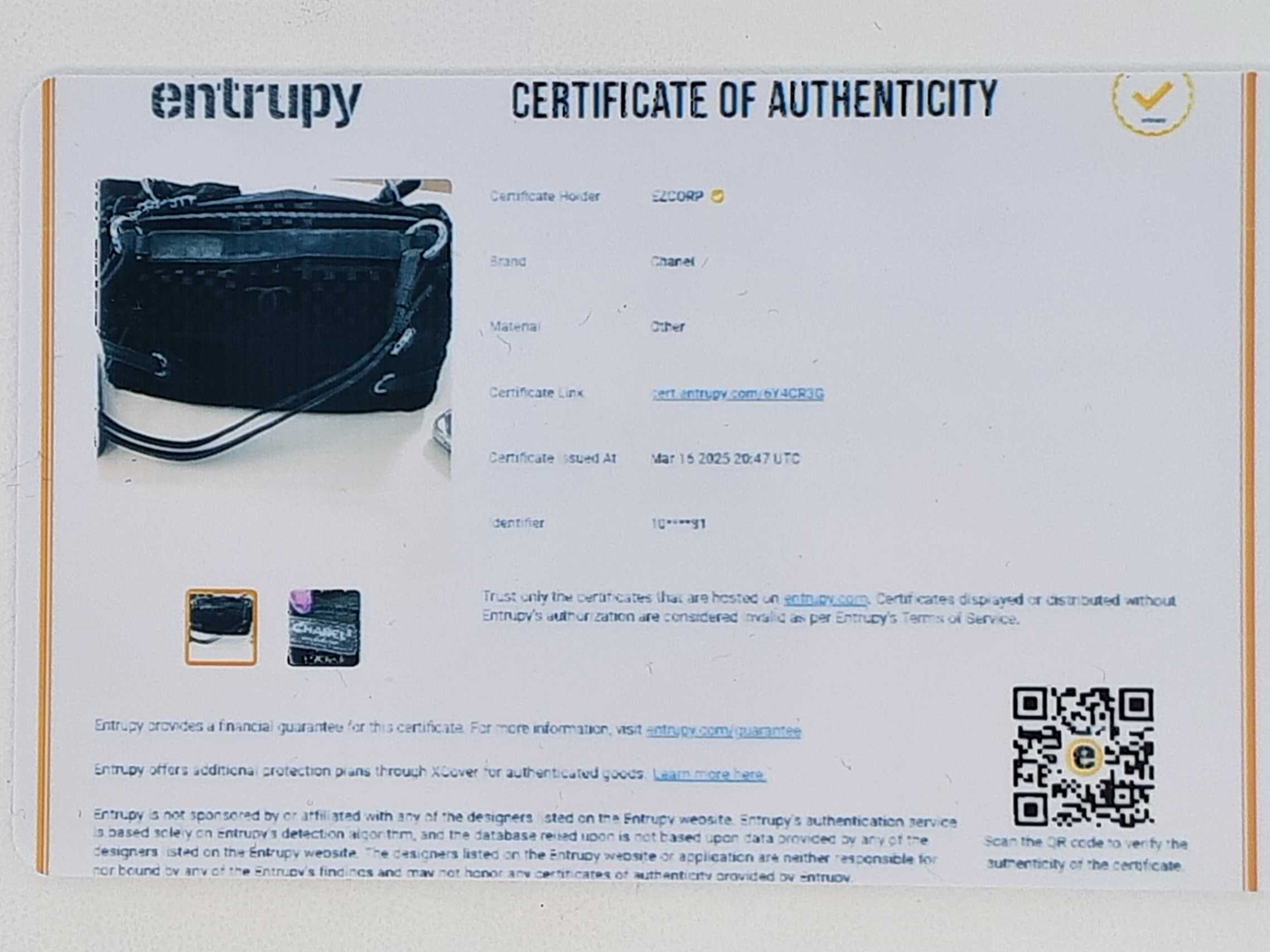 Entrupy Certificate Card