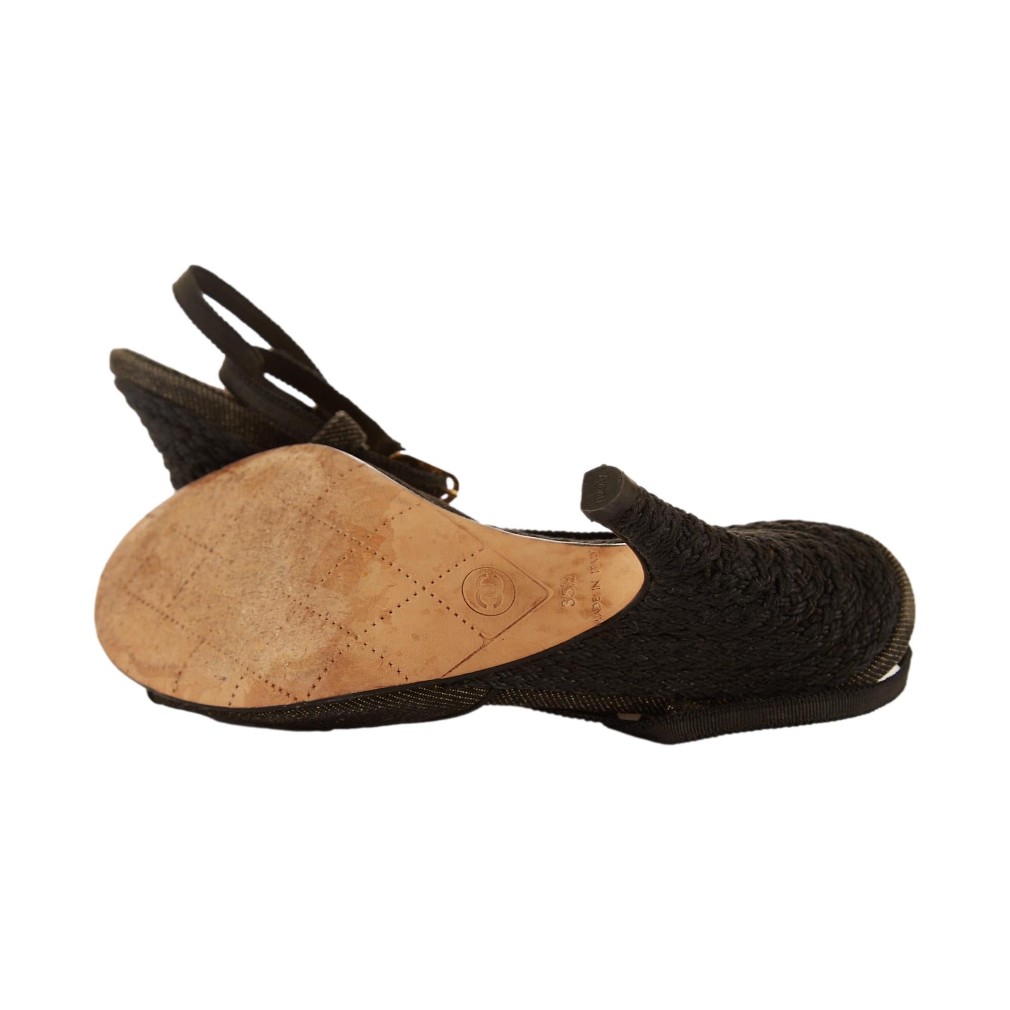 Chanel Grey Denim Logo Wrap Heels