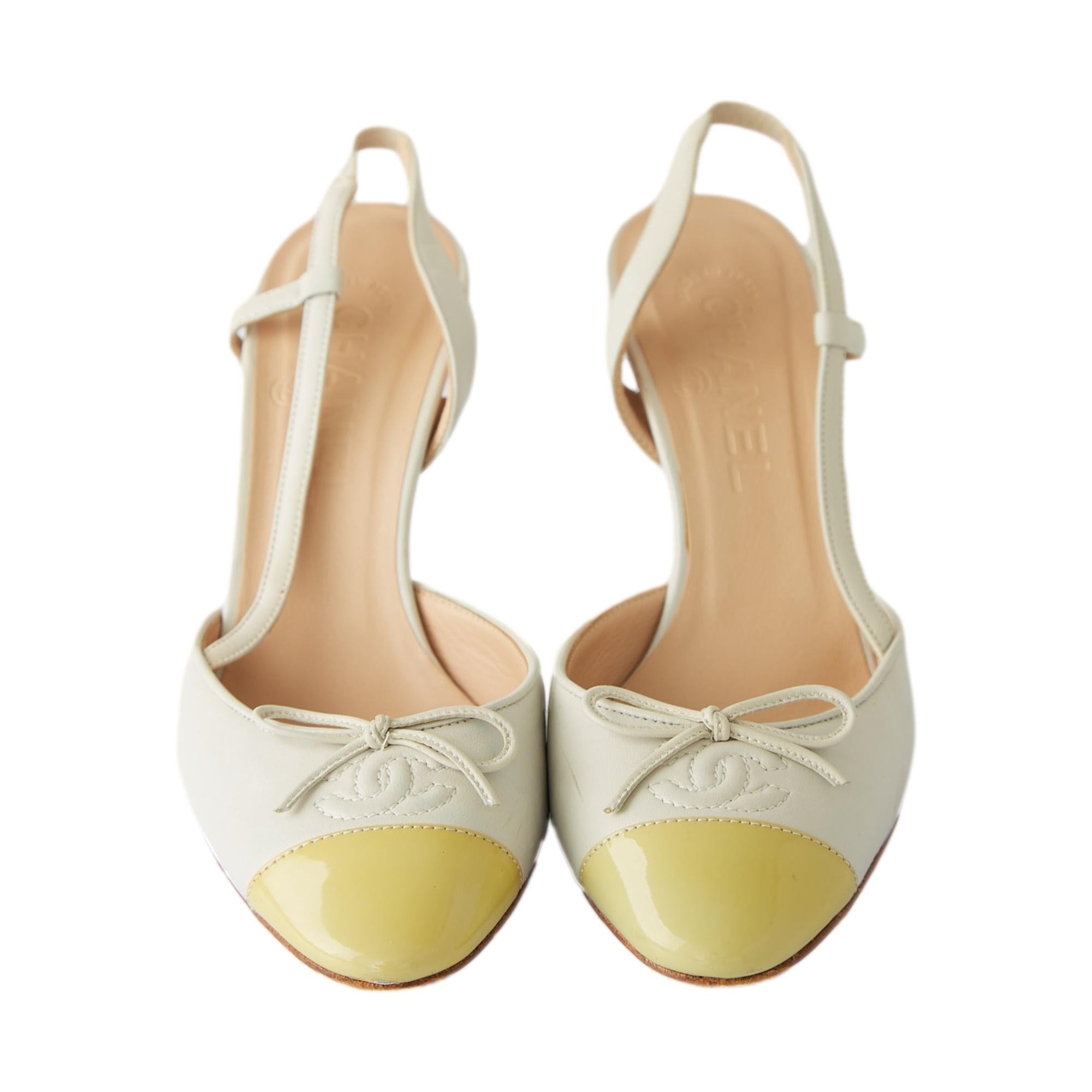 Chanel Ivory + Green Leather Bow Heels