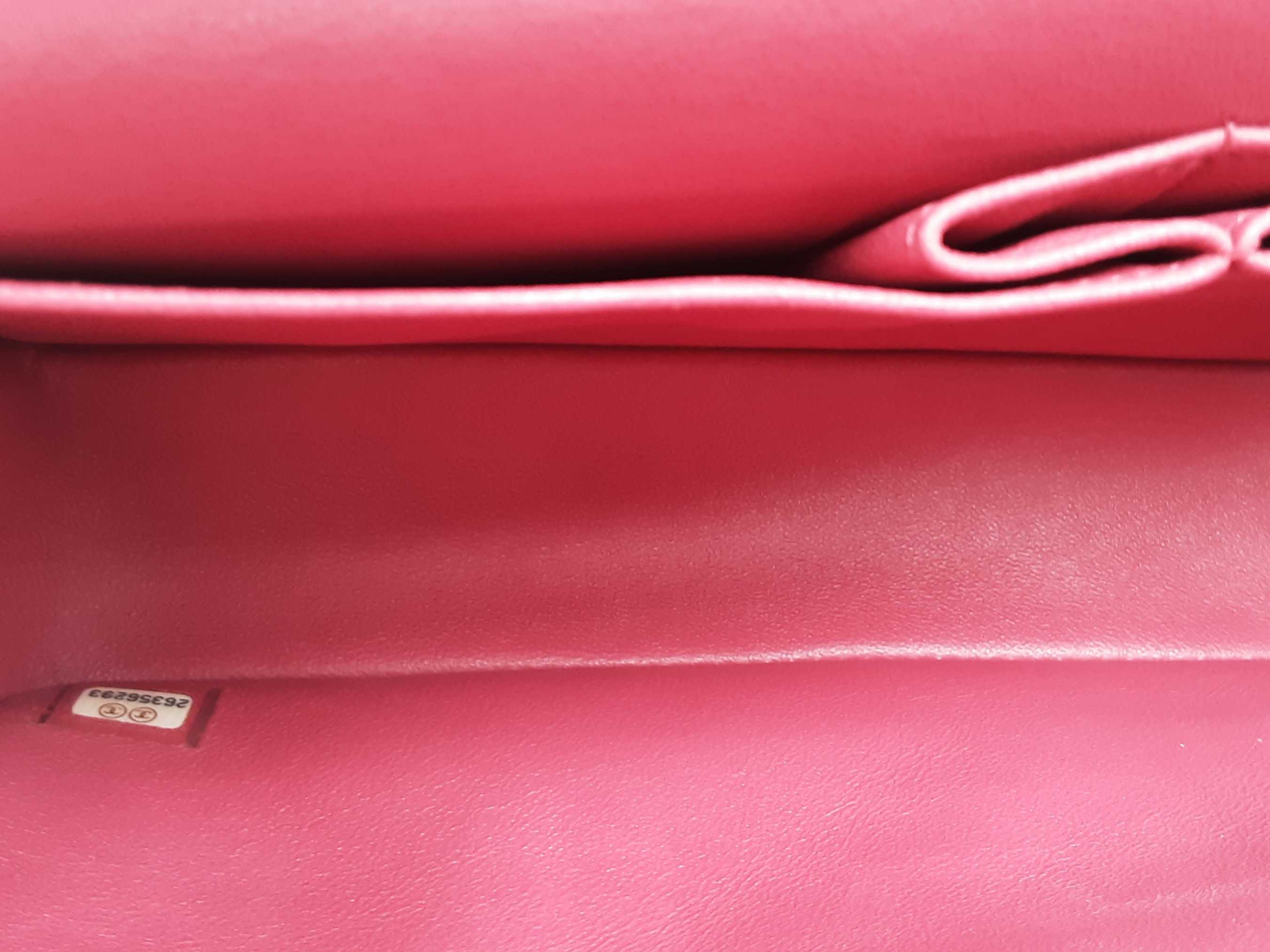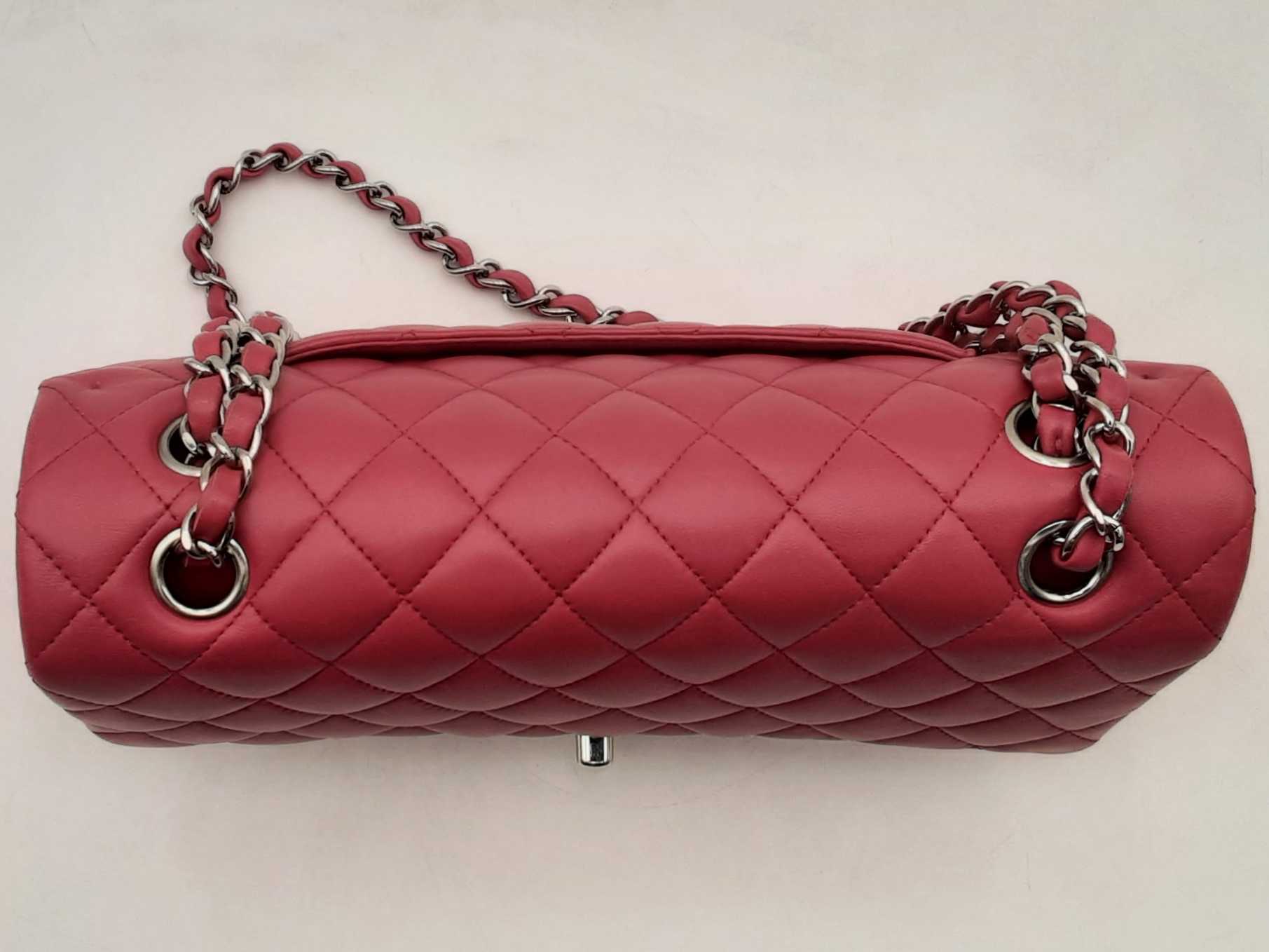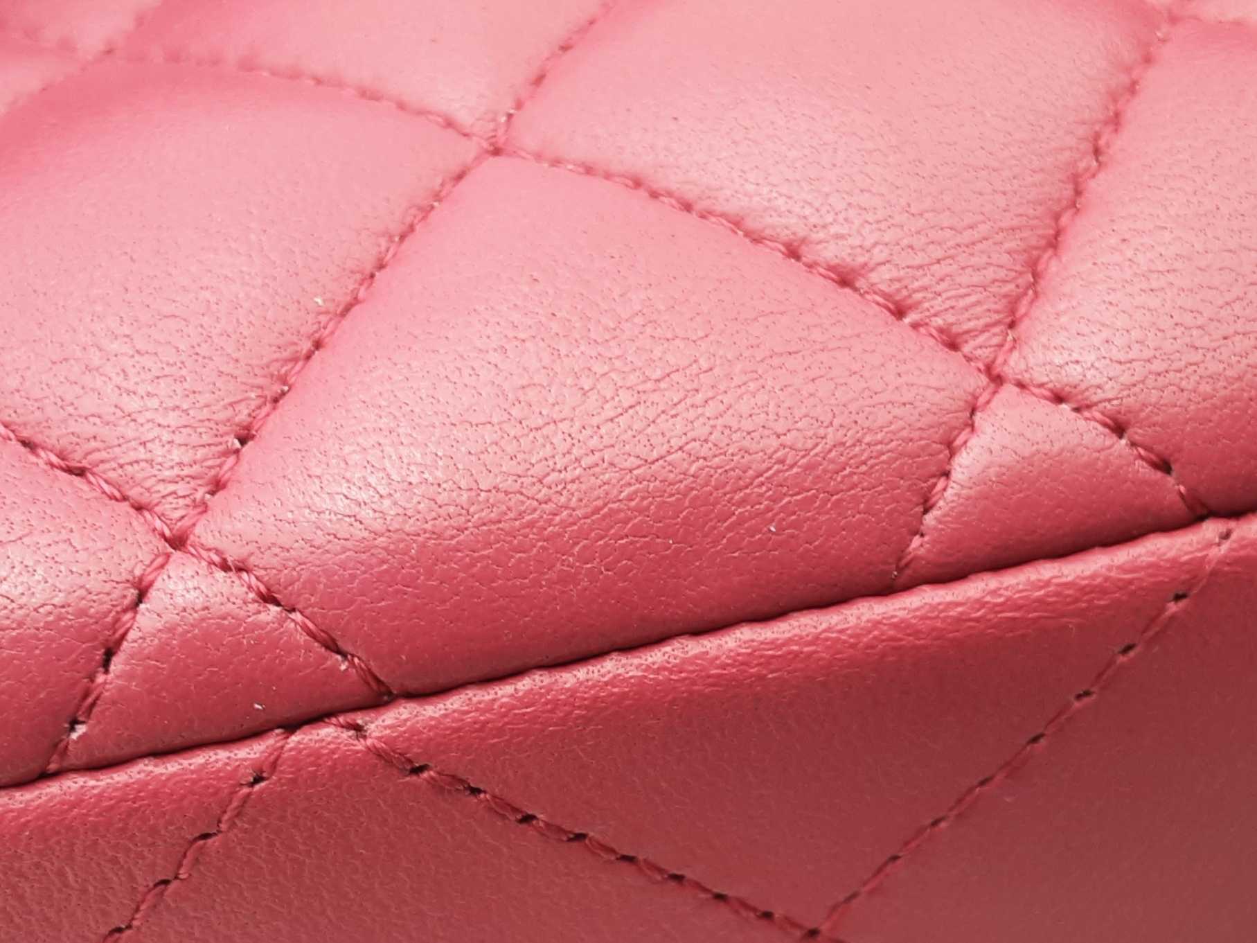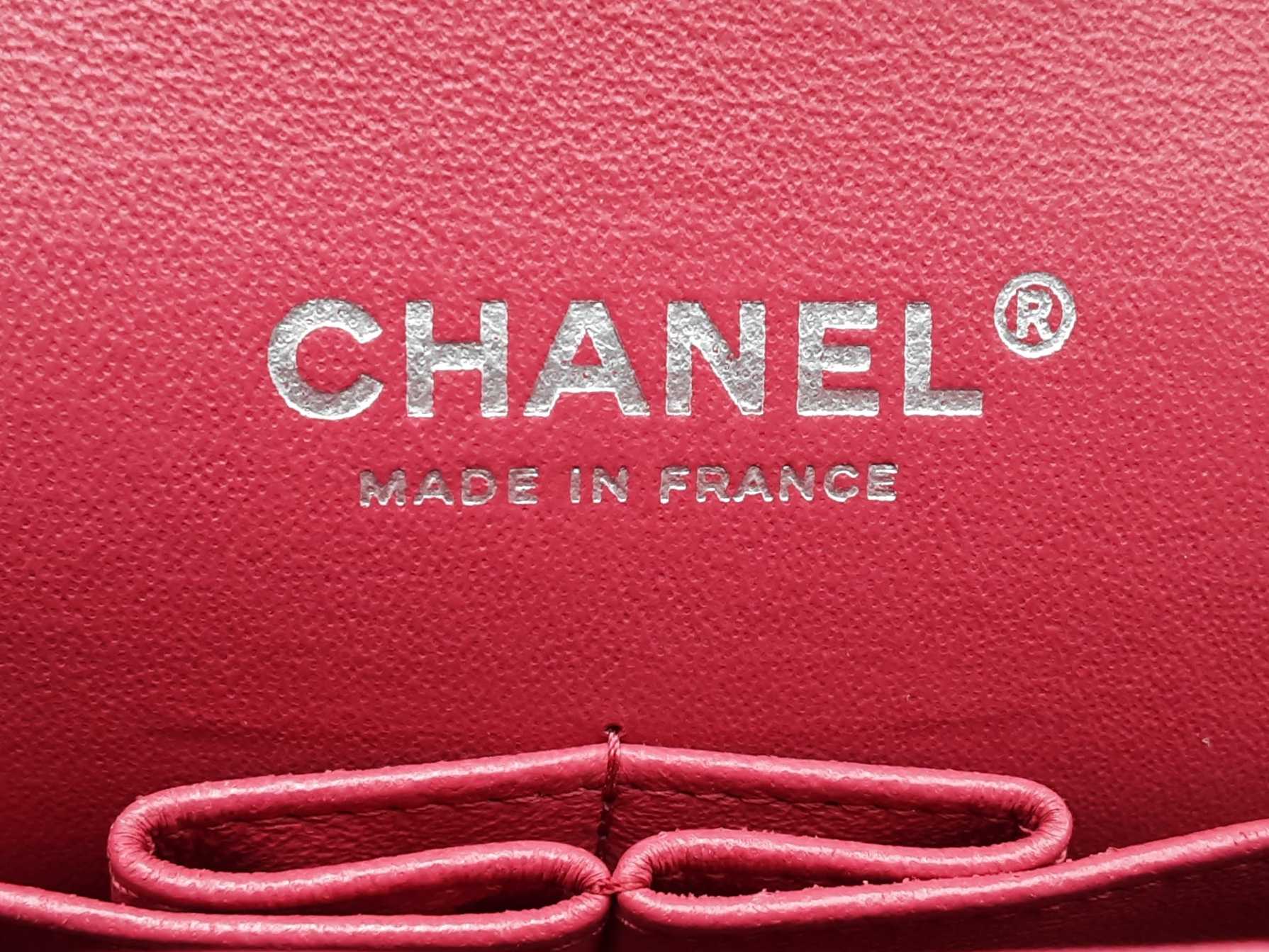 144010059548 Chanel Medium Double Flap Pink Lambskin Handbag. Approximate measurements Height 6.5 IN X Length 10 IN X Width 3 IN. Drop 17 IN. Silver-Tone Hardware. Great Pre-Owned Condition. Scratches on hardware and exterior of the bag. Marks on inner flap caused by the strap as shown in the photo. Entrupy Certificate # 2TB7WHT