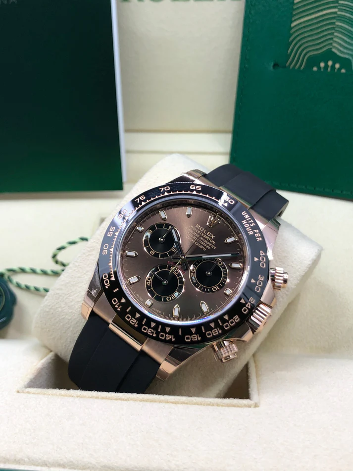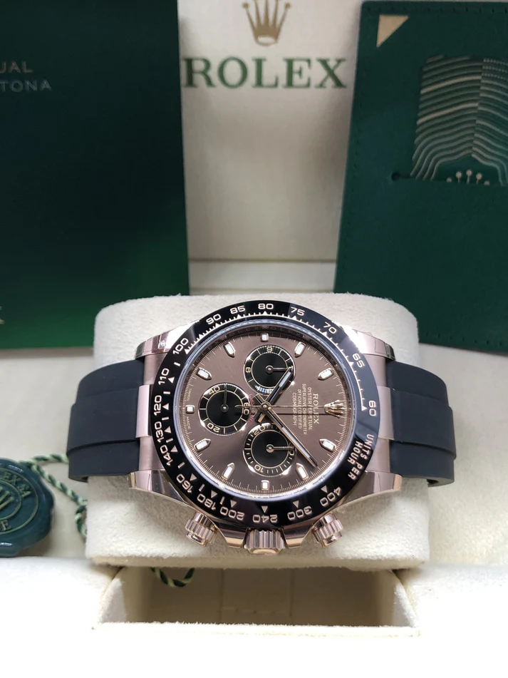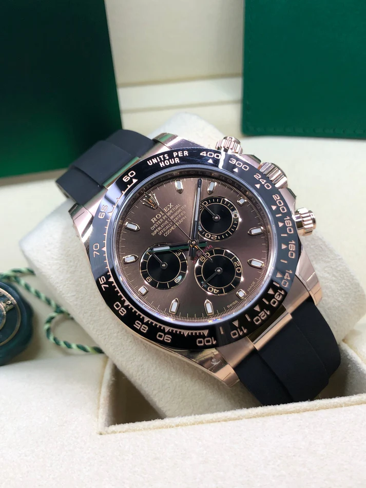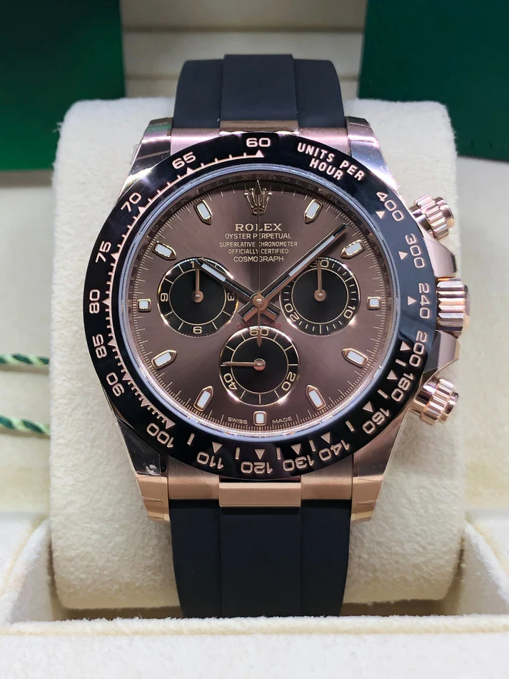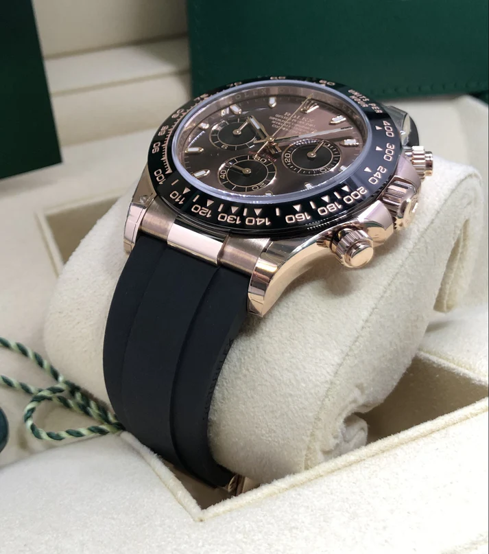 Fitted to the 'best in class' waterproof rubber Oysterflex bracelet, this immensely sought-after precious metal Daytona is brand new.