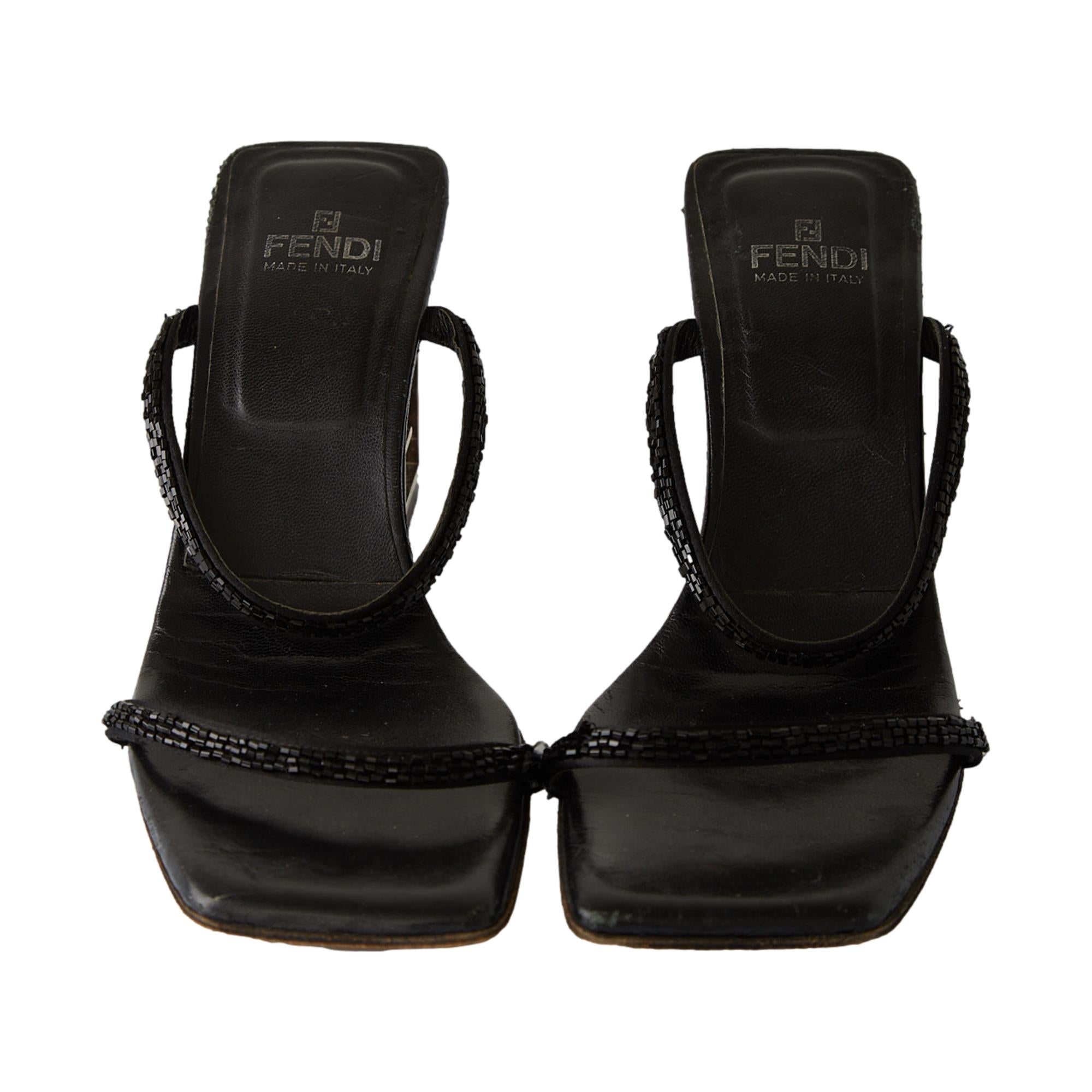 Fendi Black Beaded Logo Heels