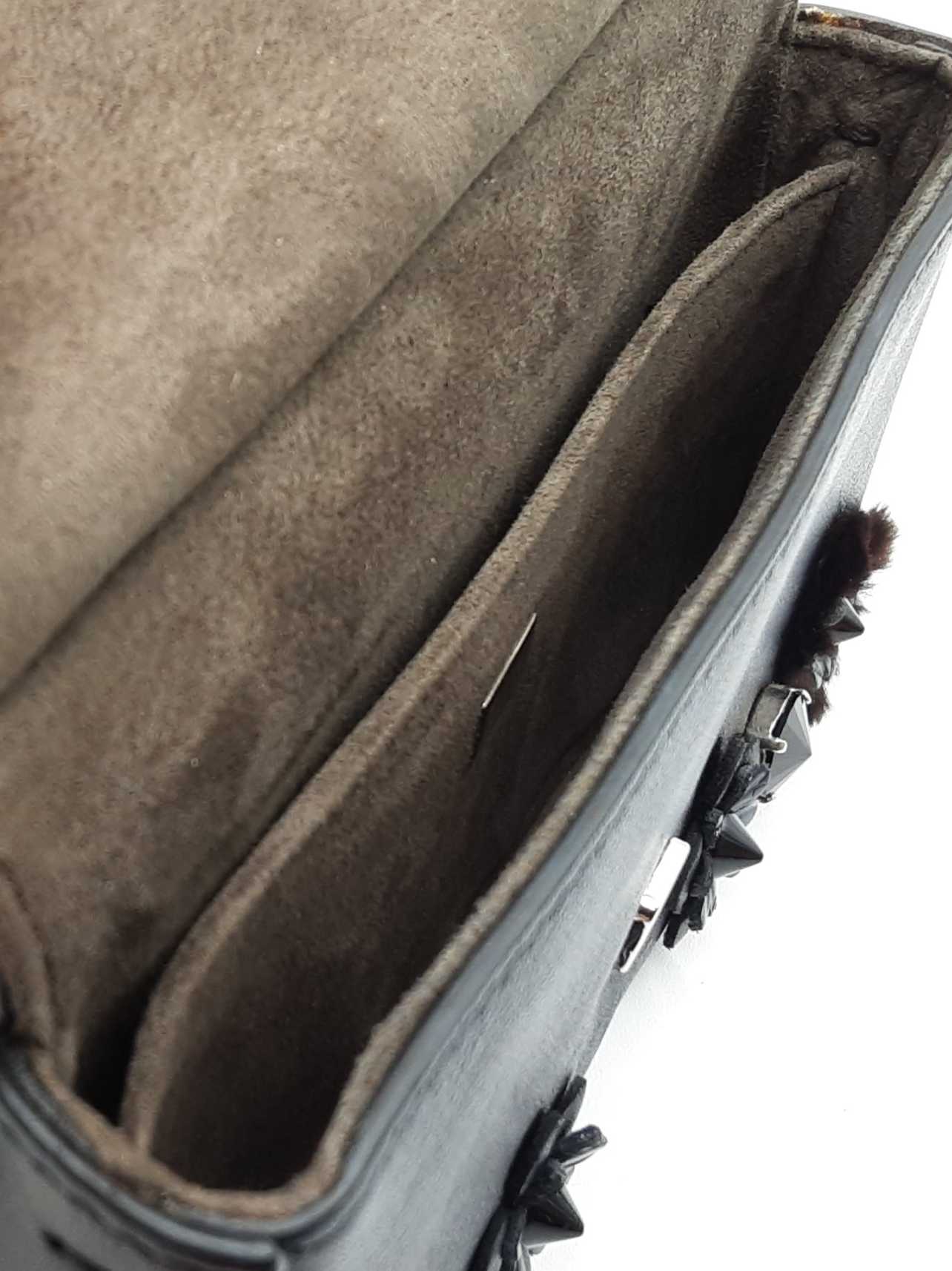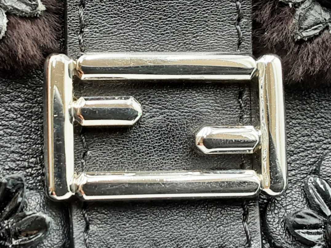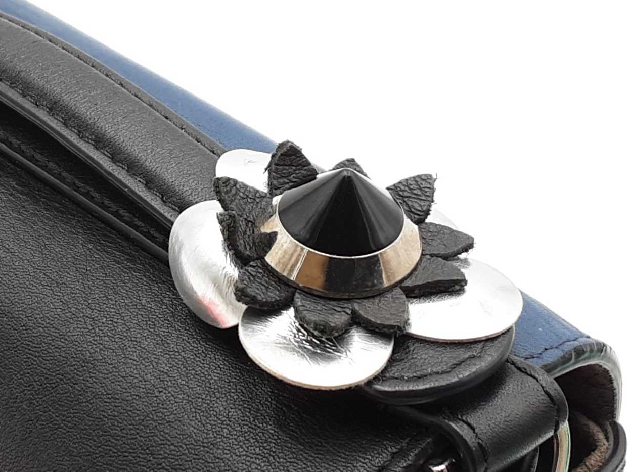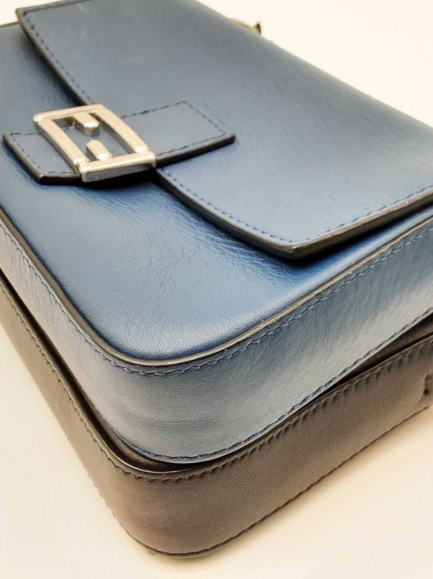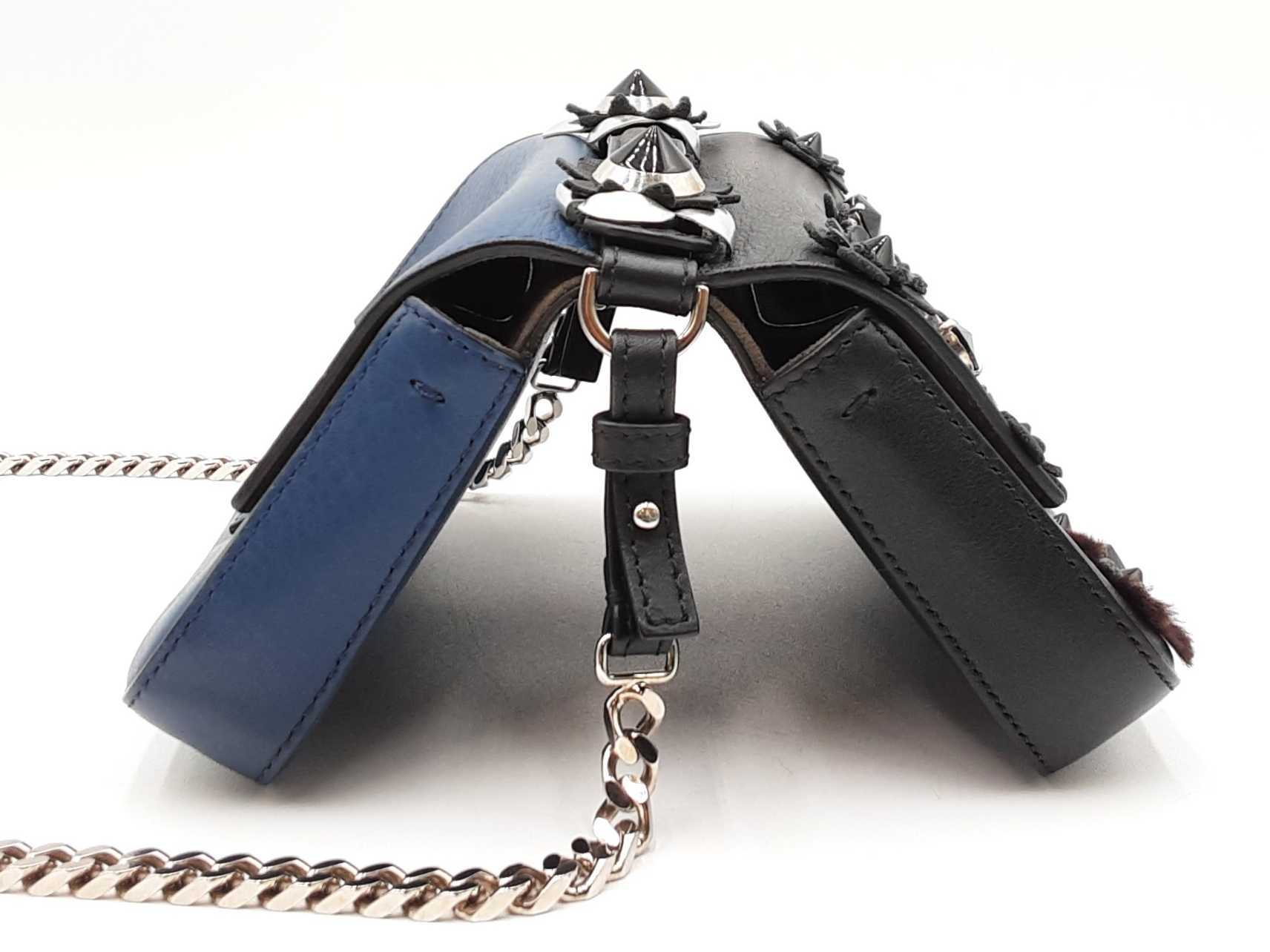144030019684Fendi Flowerland Micro Double Baguette In Bicolor Vitello Dolce Leather. Silver-Tone Hardware. Height 4.5 X Length 7 X Width 2.5 (1.25 each compartment) X Handle Drop 1.5 X Shoulder Drop 22.5 inches, approximately. Great Pre-Owned Condition. Scratches on hardware. Creasing and light scuffs throughout leather. Creasing and wear on floral embellishments and studs. Small discoloration in interior of one compartment. Entrupy Certificate # M4BB47X