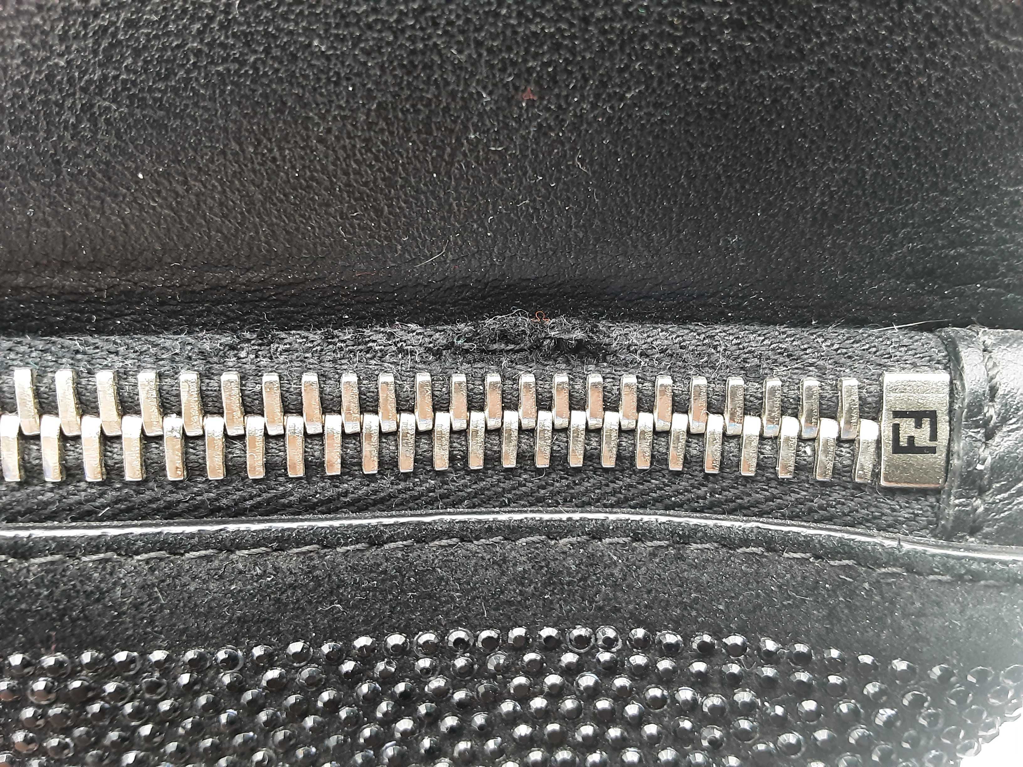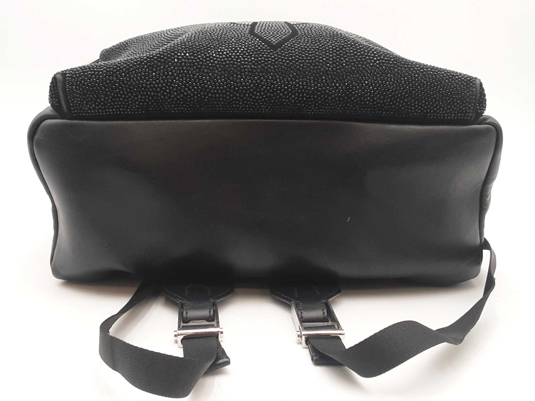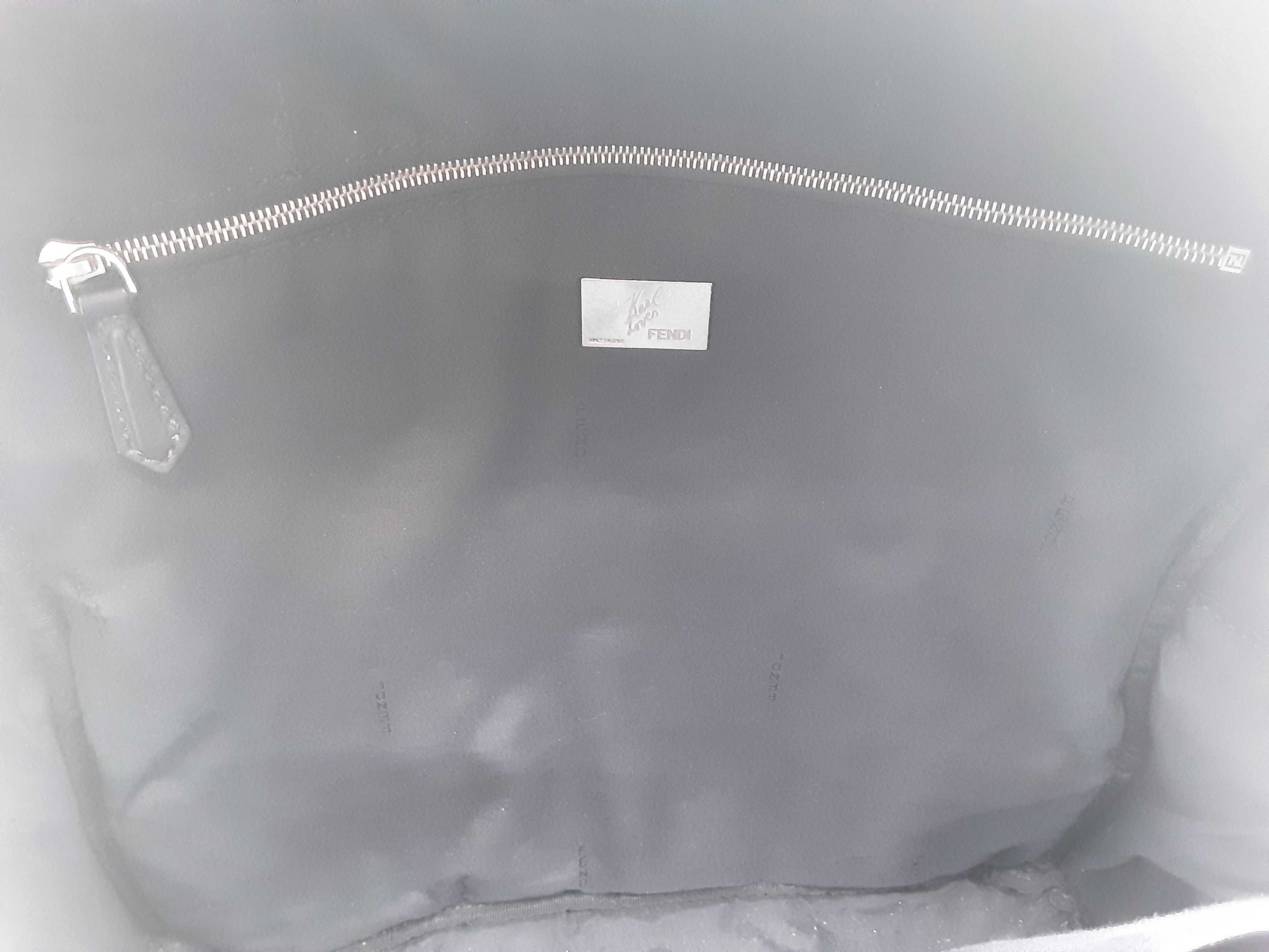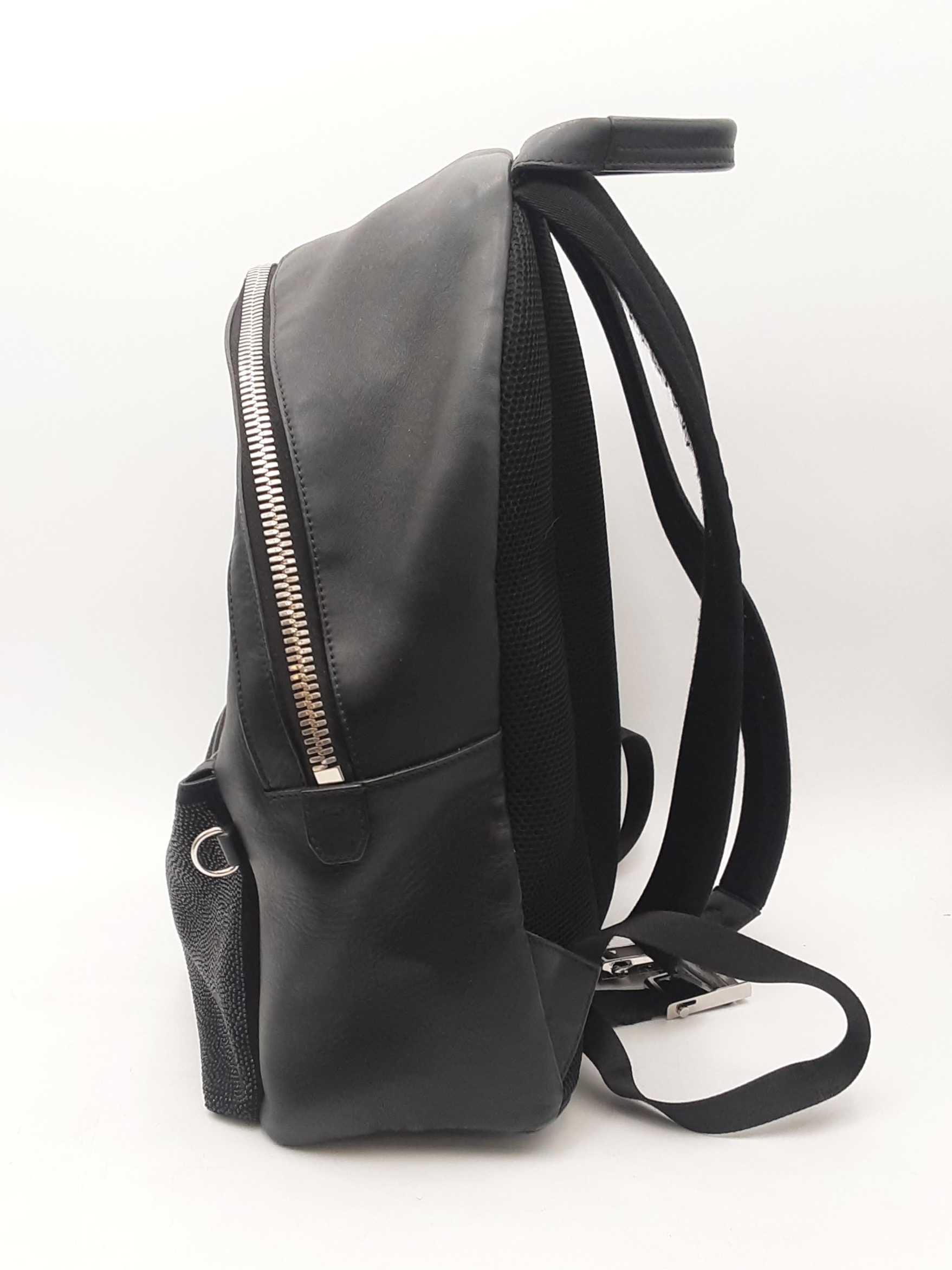 144010047627Fendi Karlito Karl Lagerfeld Black Leather Backpack. Stainless Steel Hardware. Approximate measurements Height 16 IN X Length 13 IN X Width 7 IN. Great Pre-Owned Condition. Scratches on hardware. One bead is missing on exterior. Part of fabric appears that it was caught in zipper and tore. Interior has light dust and debris. Entrupy Certificate Card #6KTDW37