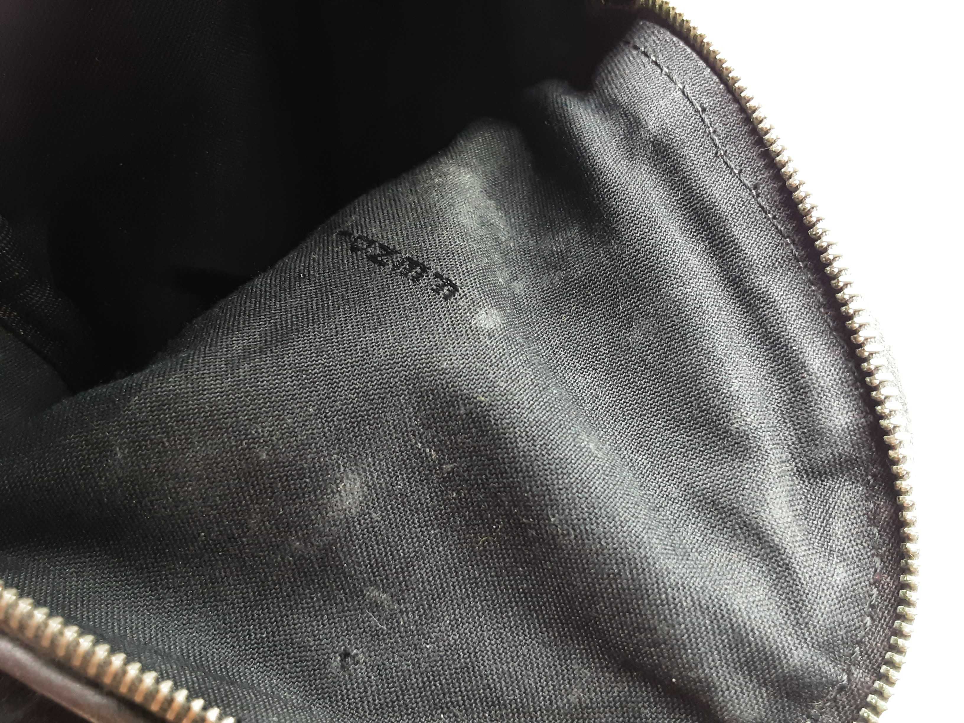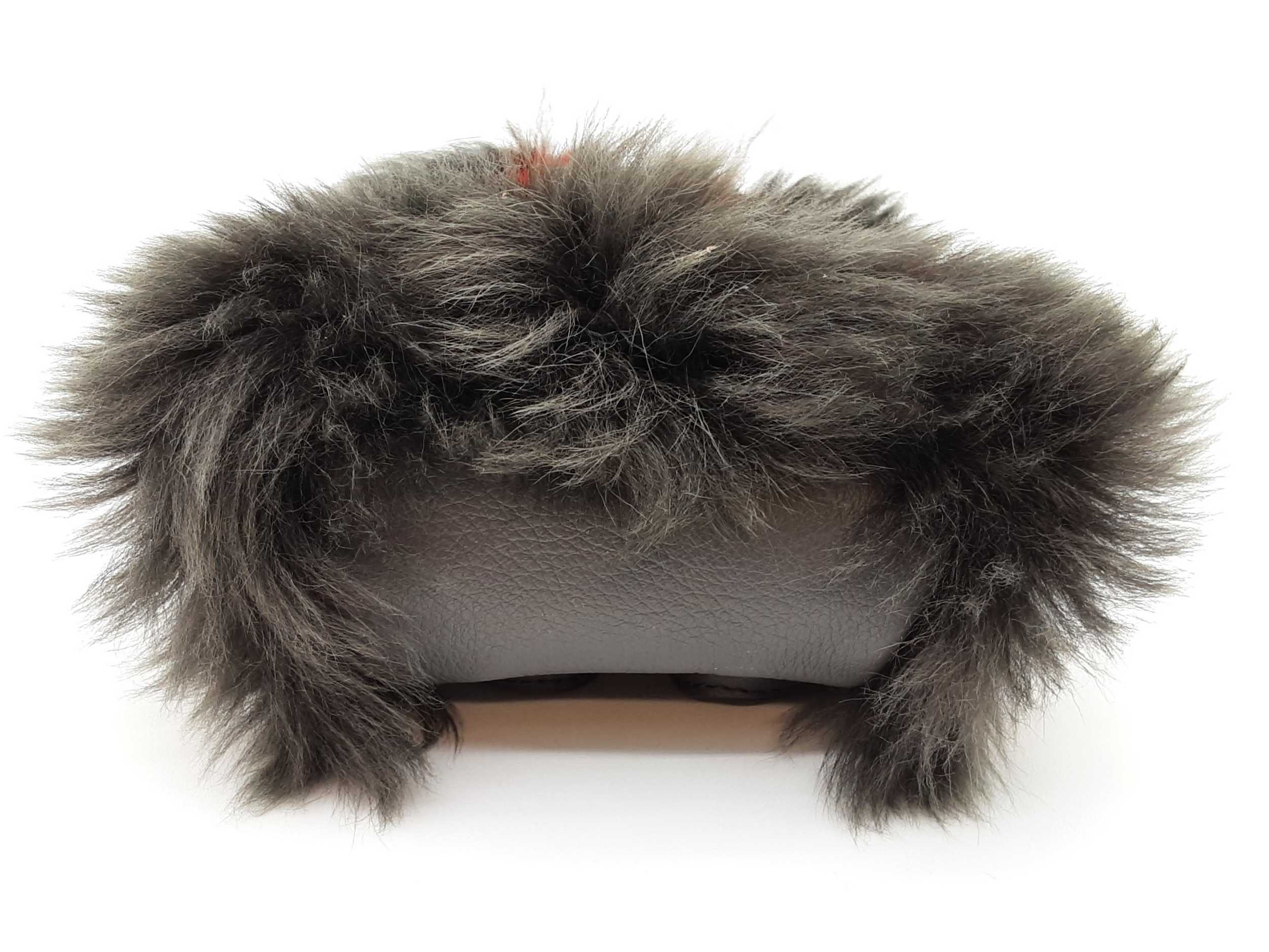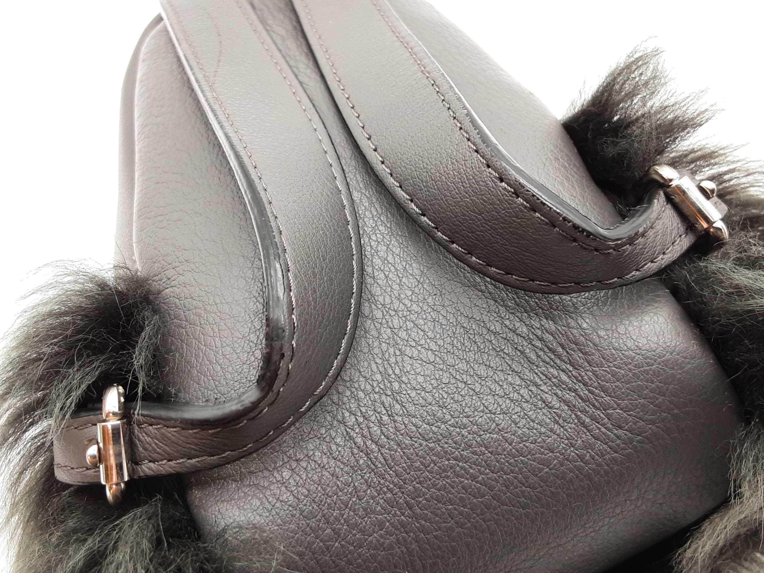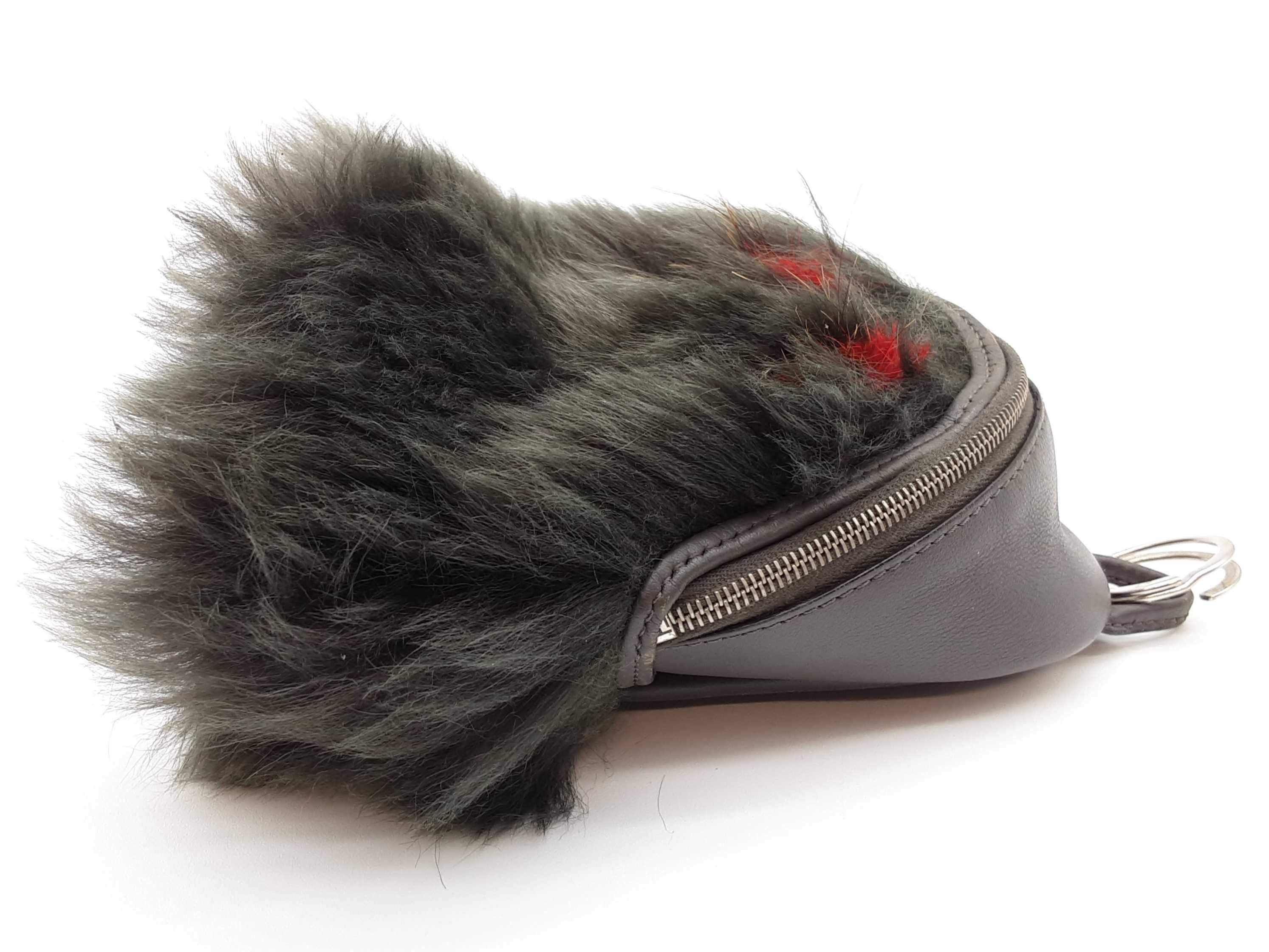 144020037360Fendi Monster Gray Leather Faux Fur Mini Backpack Pouch Bag Charm. Length 4 IN X Height 6.5 IN X Width 2 IN. Pre-Owned - Good Condition with keyring stretched, creases, wear on edges, scratch and cracking on one strap, and marks on interior.
