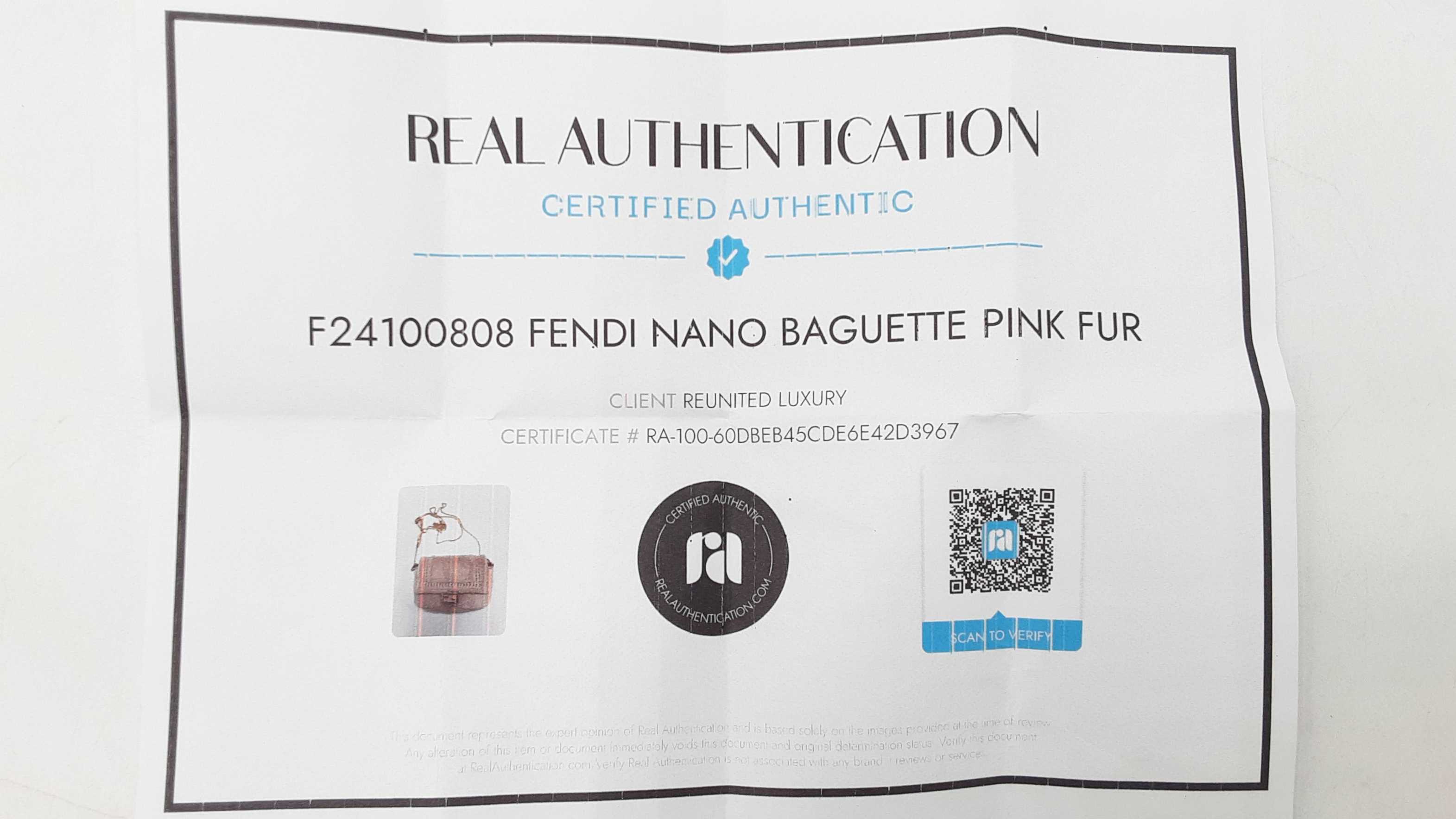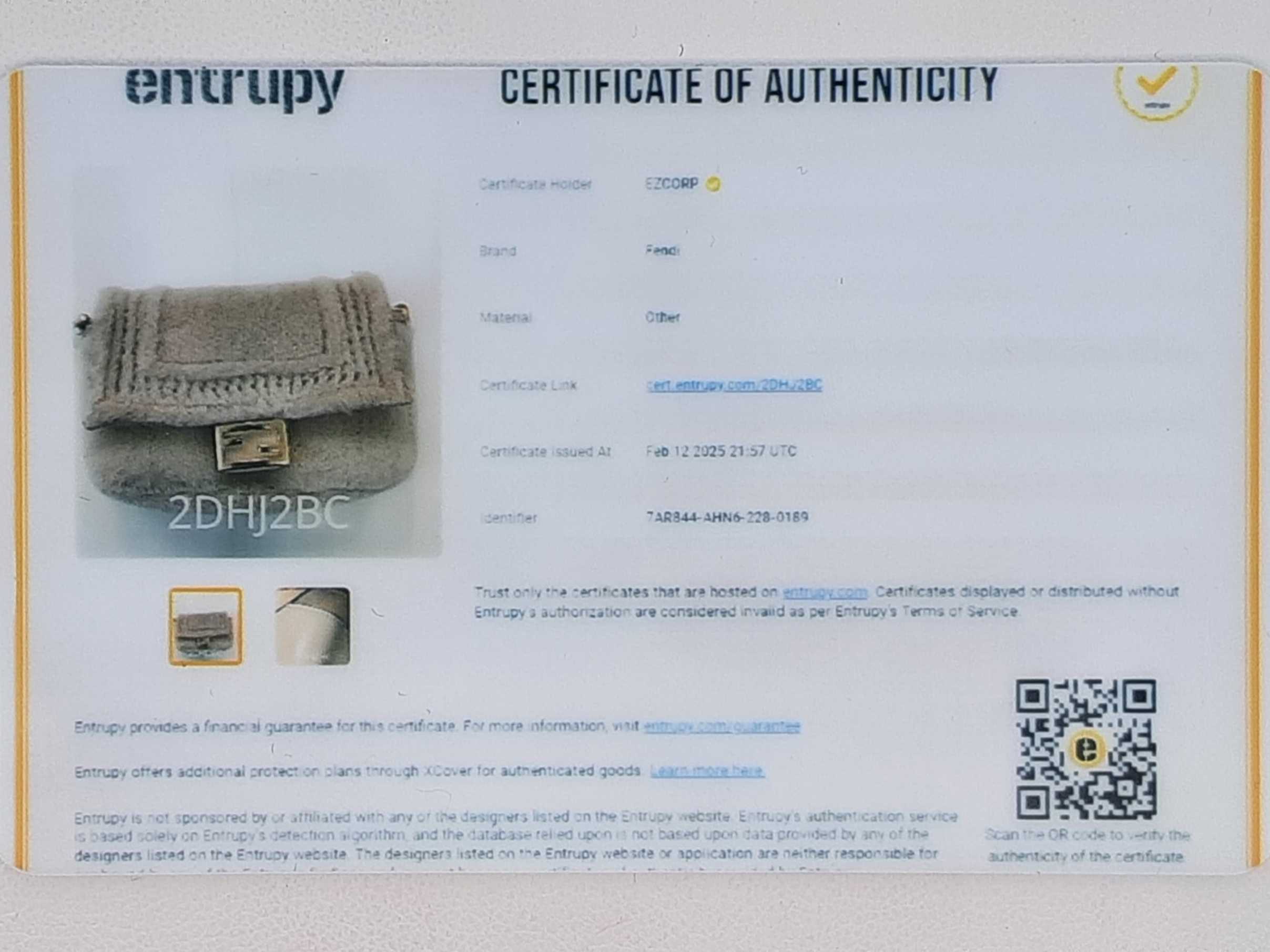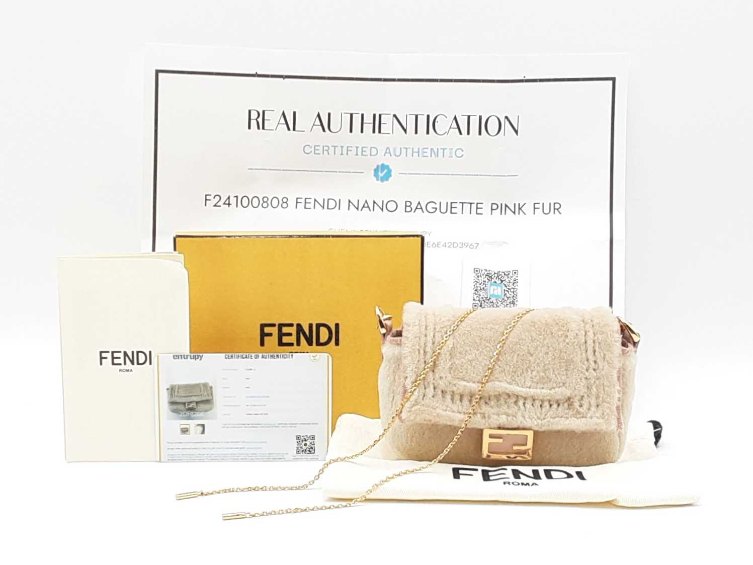 Entrupy Certificate Card, Removable Adjustable Chain Crossbody Strap, Box, Dust Bag, Original Fendi Product Inserts