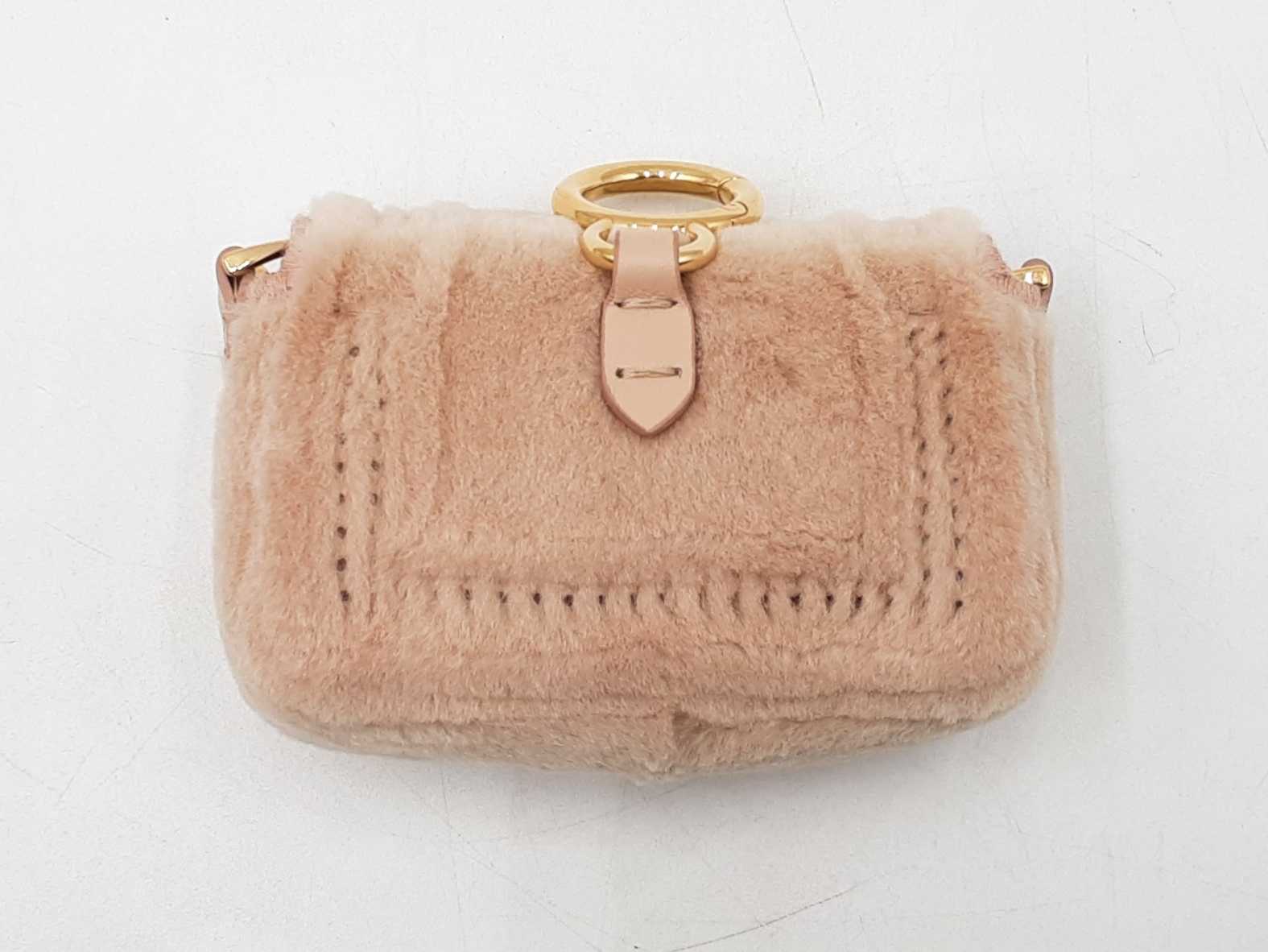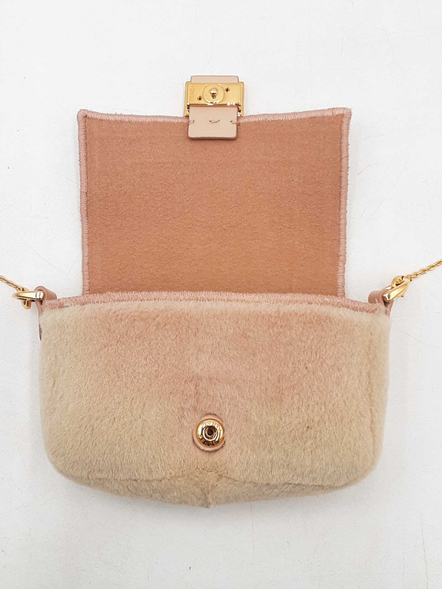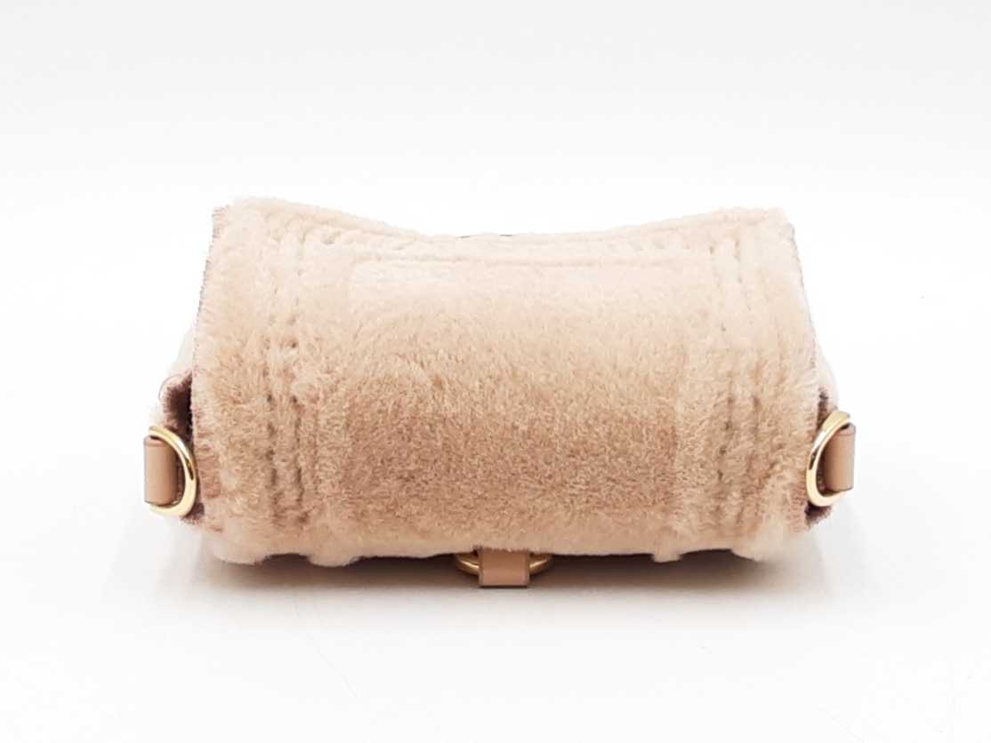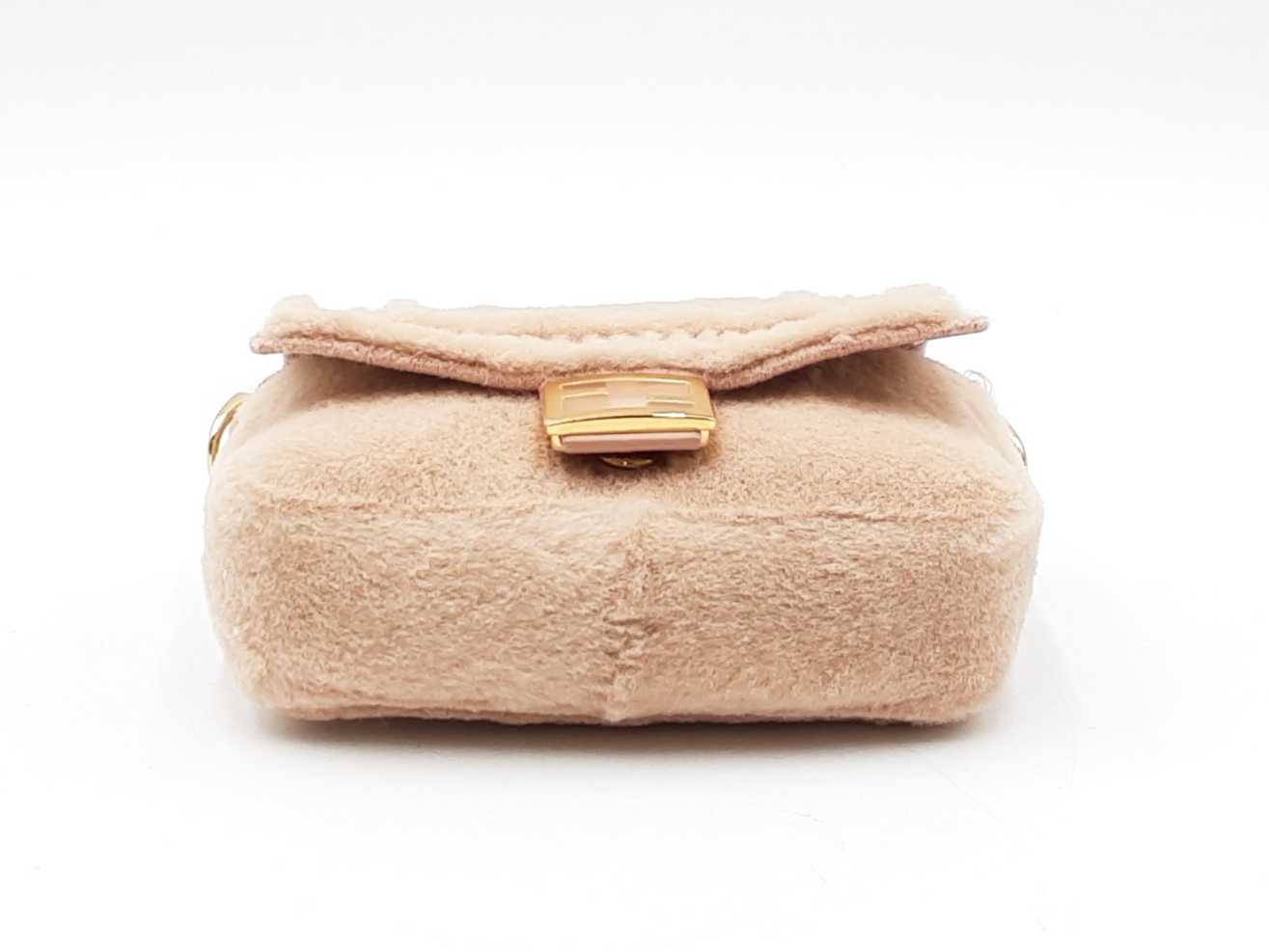 144030019717Fendi Nano Baguette Mink Crossbody Bag & Charm. Gold-Tone Hardware. Height 3 x Length 4.25 x Width 1.25 x Chain Drop 23 (with adjustable slider) inches, approximately. Good Pre-Owned Condition. Scratches on hardware. Fur on front and sides of bag is faded, and is more beige than rosy. Entrupy Certificate # 2DHJ2BC