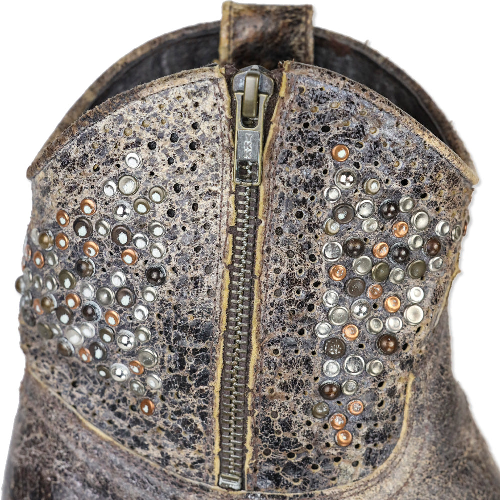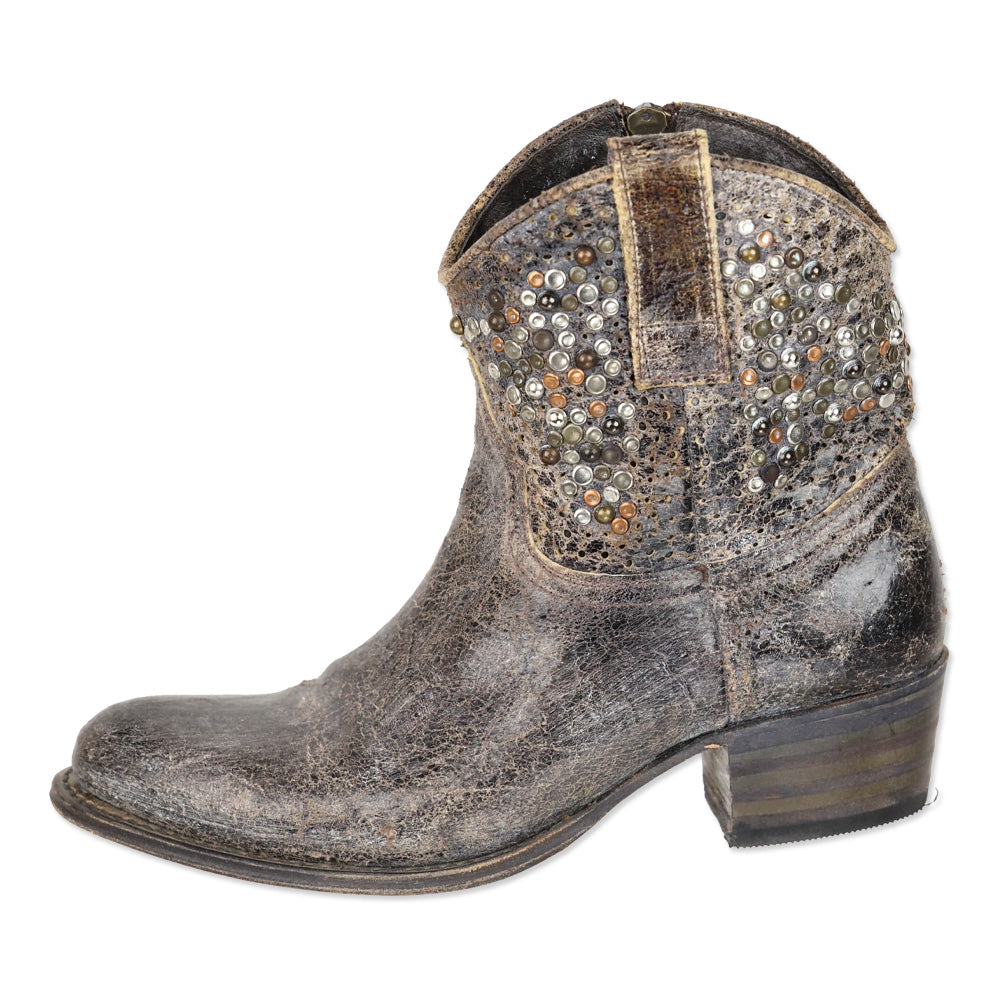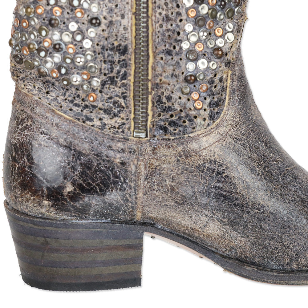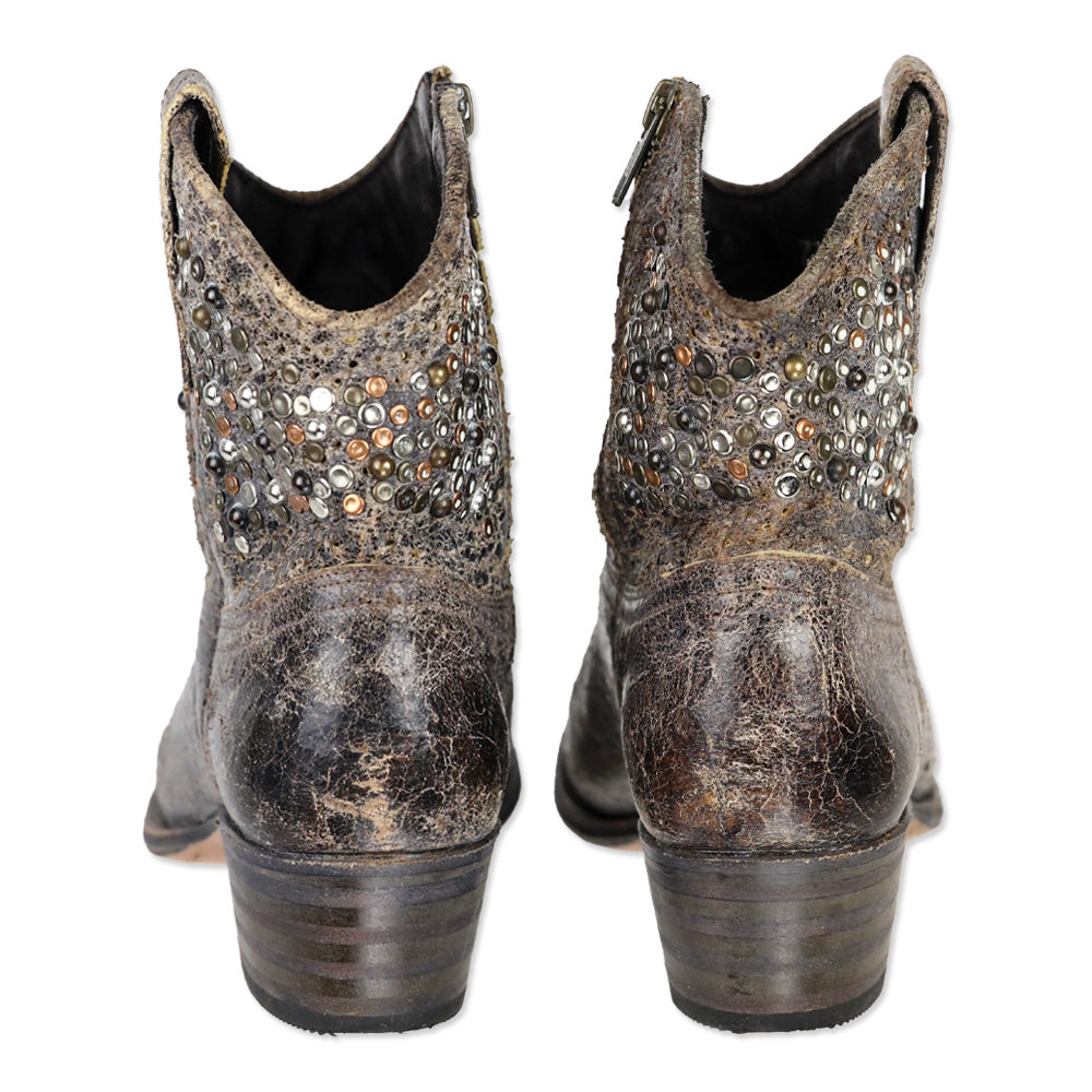 - Details: Perforated vamp, tri-color studs, side zipper, western silhouette