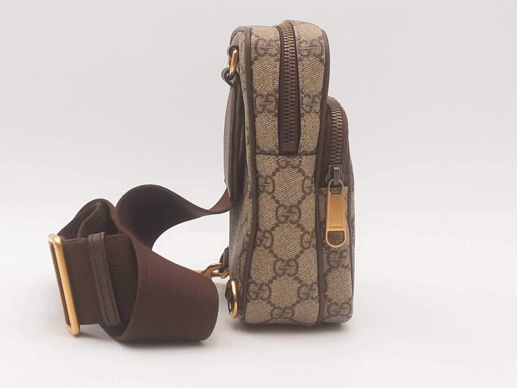 144010061912Gucci Ophidia Gg Canvas Cross Body Brown. Gold-Tone Hardware. Approximate measurements Height 7.5 IN X Length 5 IN X Width 2 IN. Good Pre-Owned Condition. Scratches on the hardware. No box or dust bag.