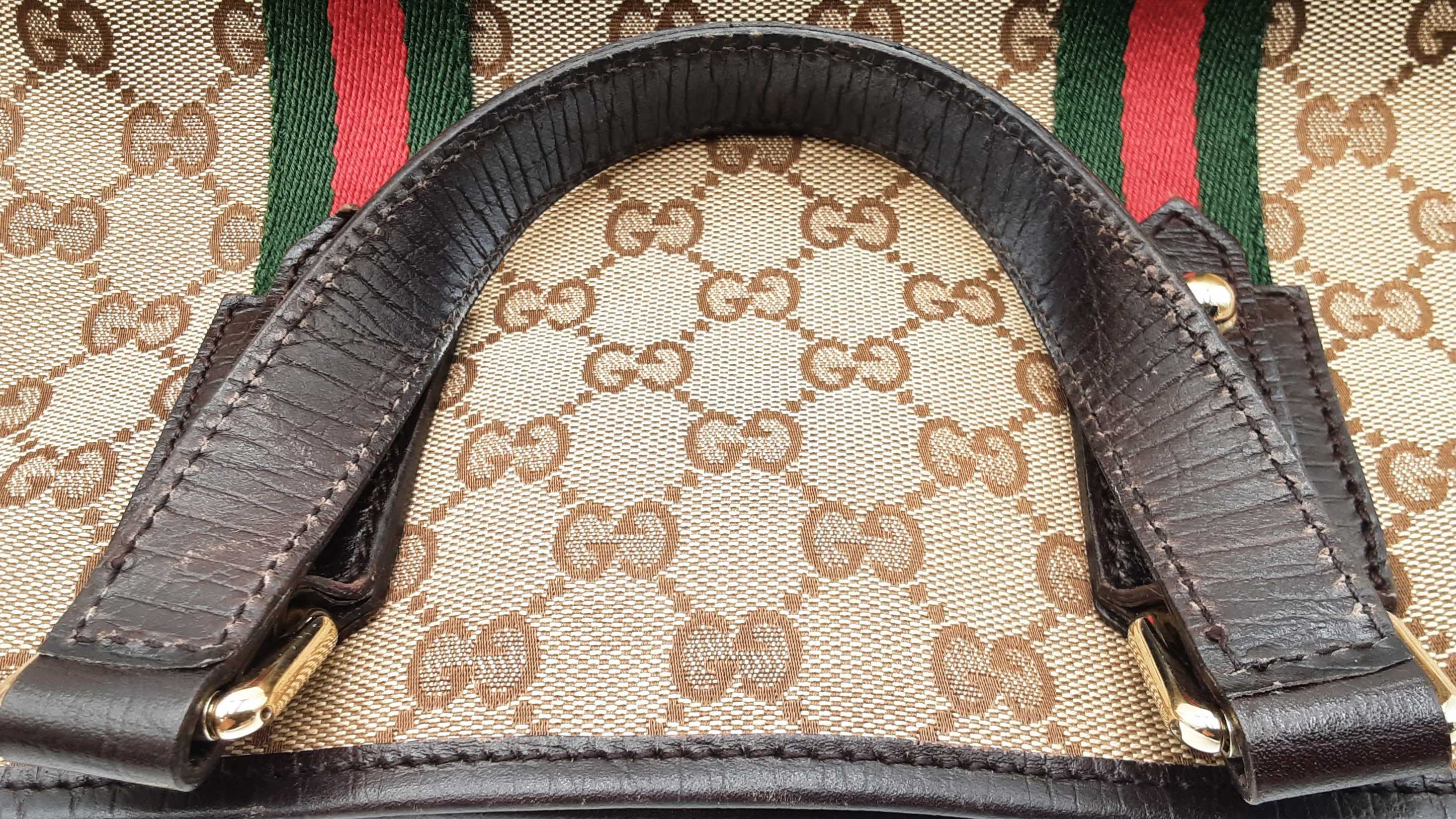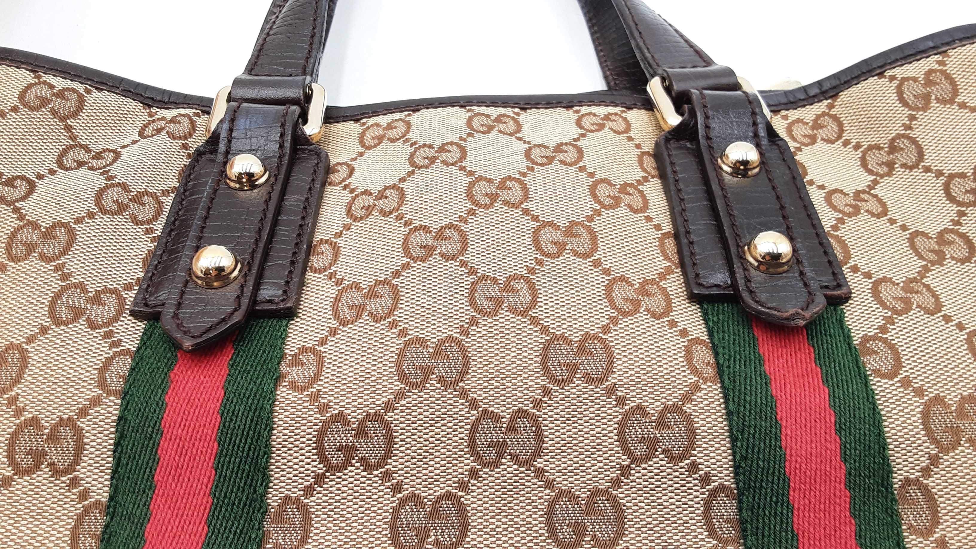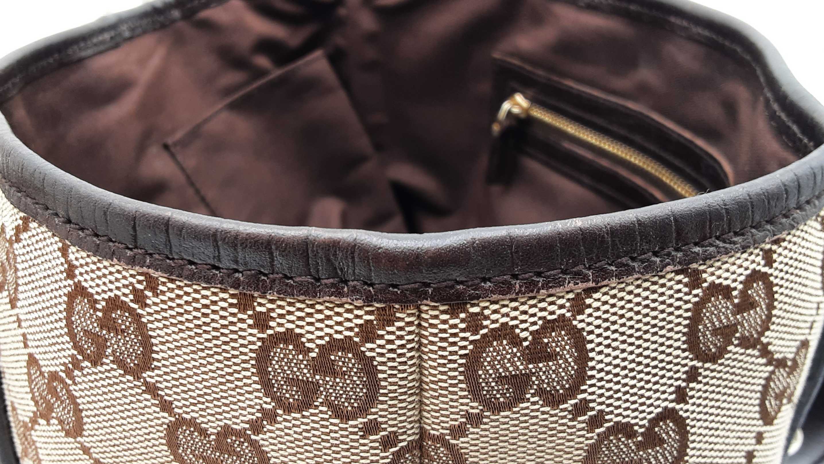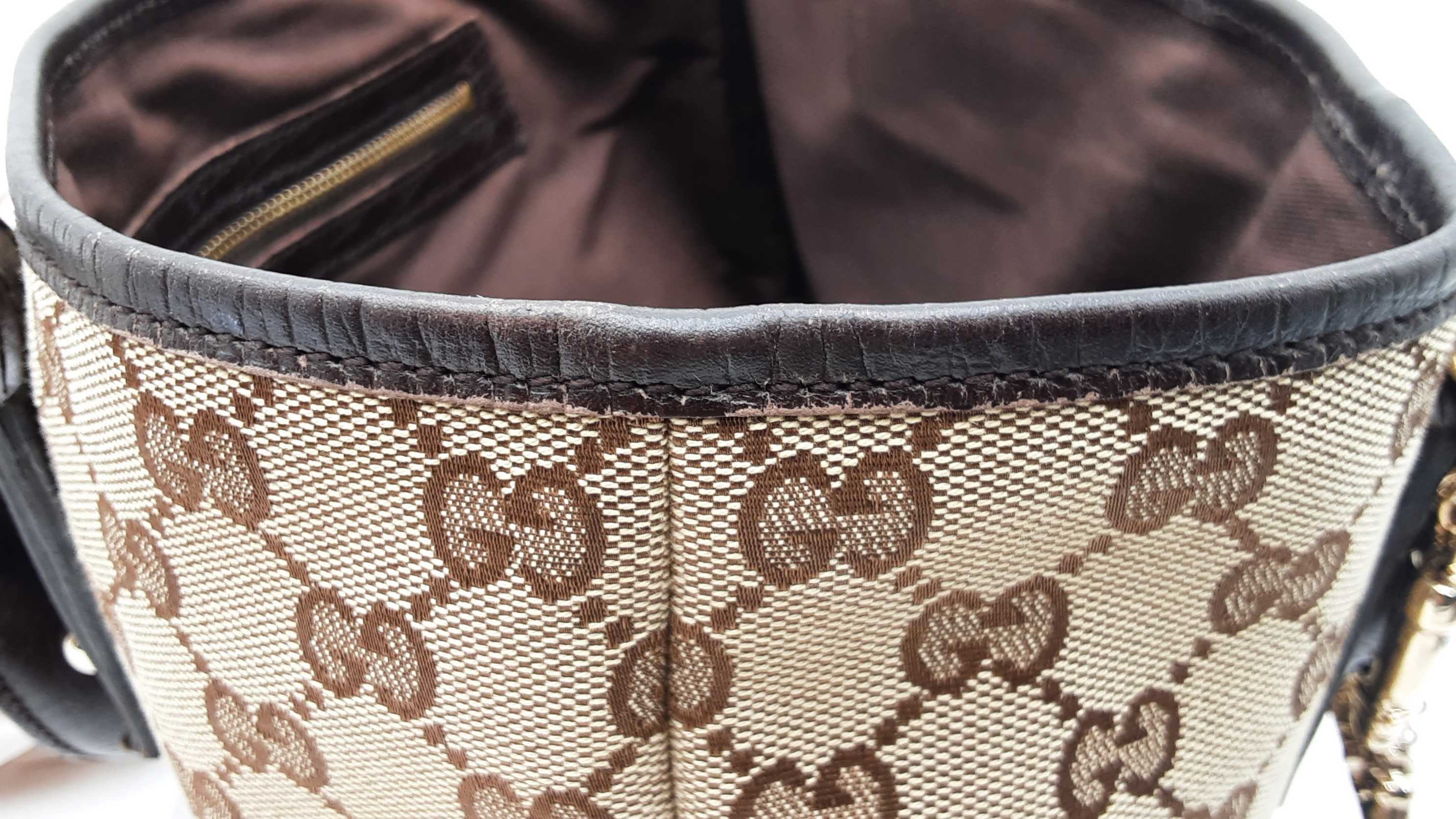 144030027297Gucci Small Jolicouer Tote In GG Monogram Canvas Fabric. Gold-Tone Hardware. Base Length 8.5 IN X Height 6.75 IN X Width 4.25 IN X Handle Drop 4 IN, approximately. Good Pre-Owned Condition. Wear and creasing on leather details, including straps. Entrupy Certificate # 2YK2C38