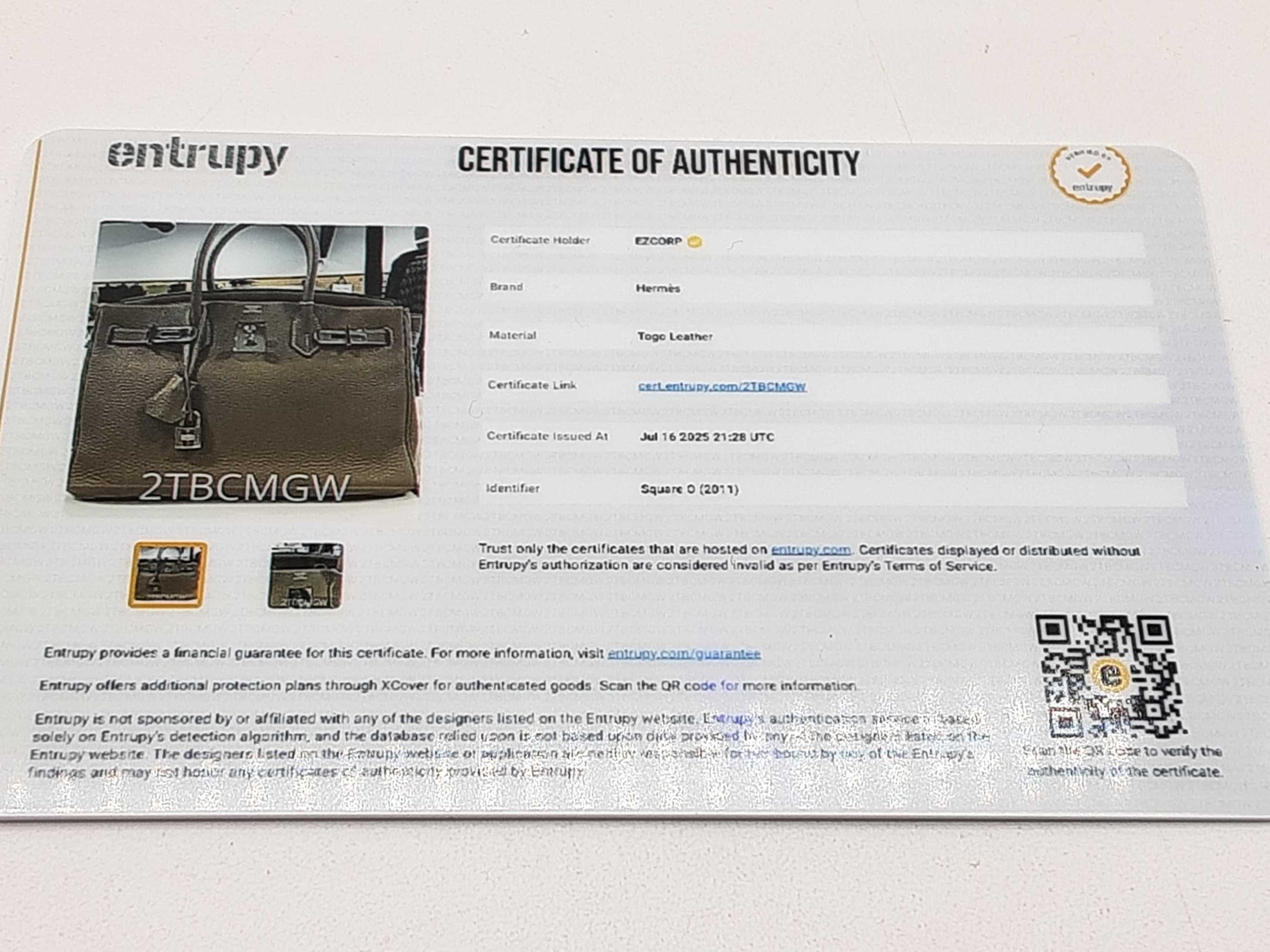 Entrupy Certificate Card, Dust Bag, Clochette, 2 Keys, Lock